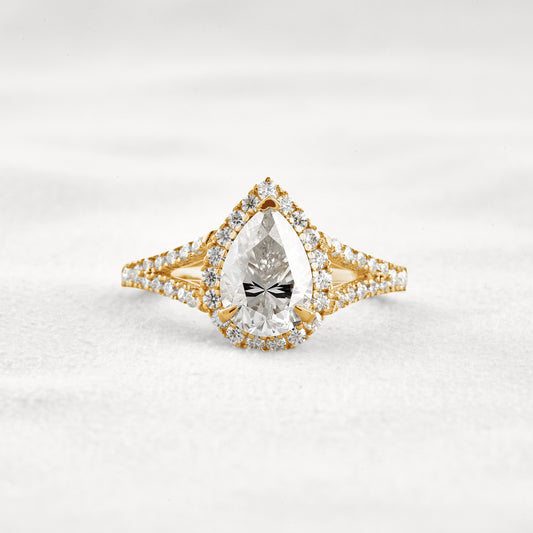 3.1 CT Pear Cut Halo & Pave Moissanite Diamond Engagement Ring