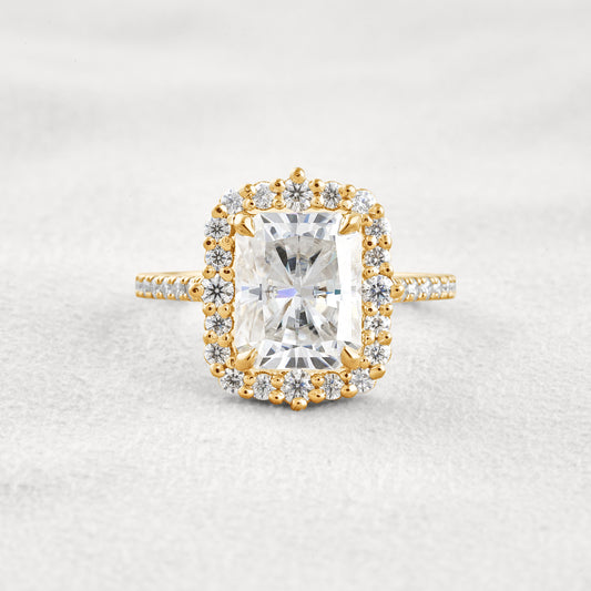 3.24 CT Radiant Cut Halo & Pave Moissanite Diamond Engagement Ring