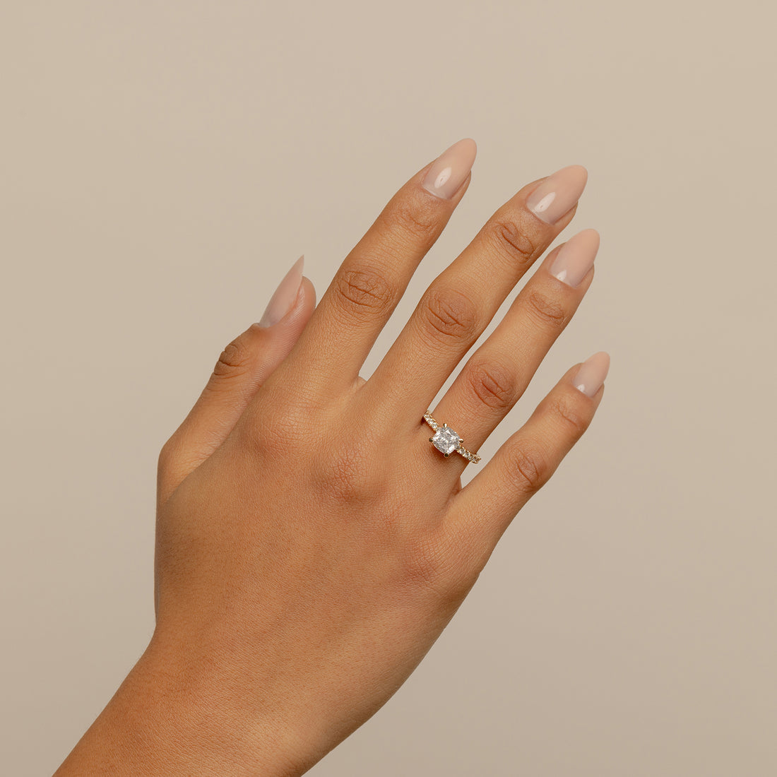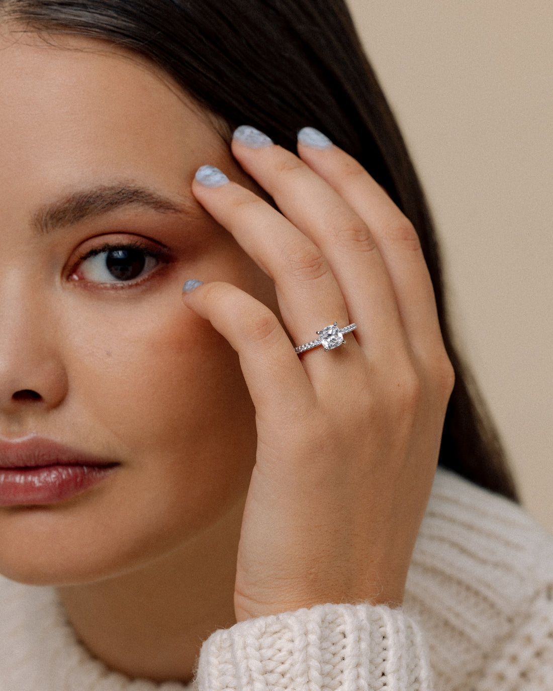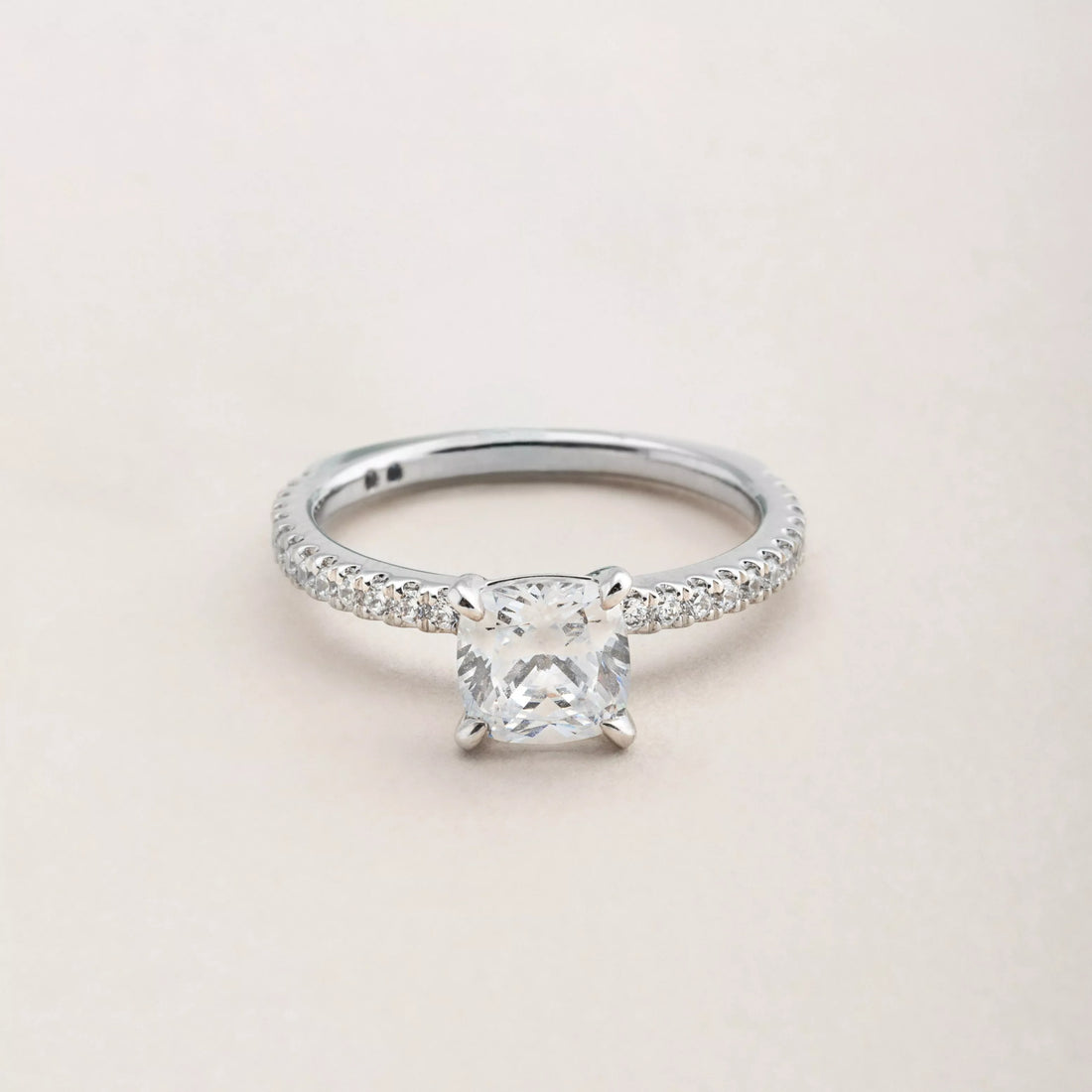 1.0 CT Cushion Cut Pave Moissanite Engagement Ring