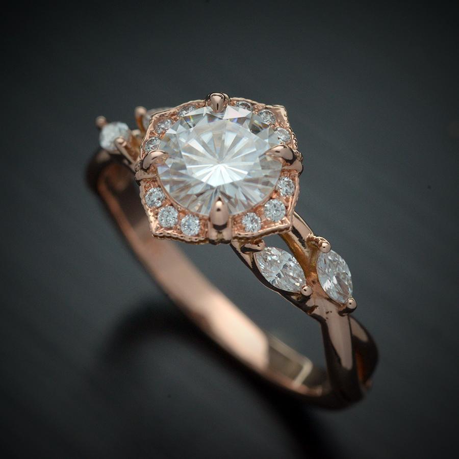 1.0 CT Round Moissanite Diamond Vintage Engagement Ring