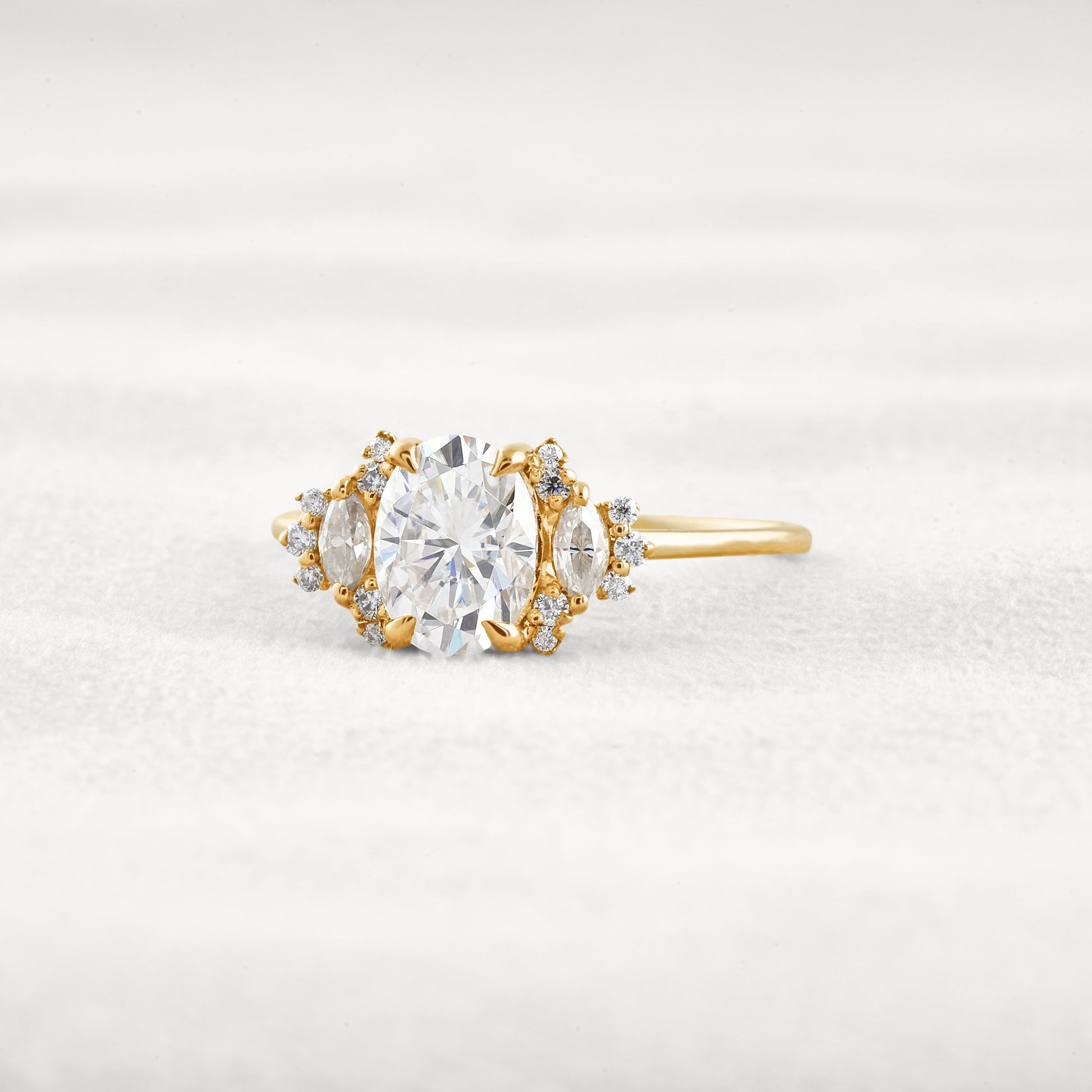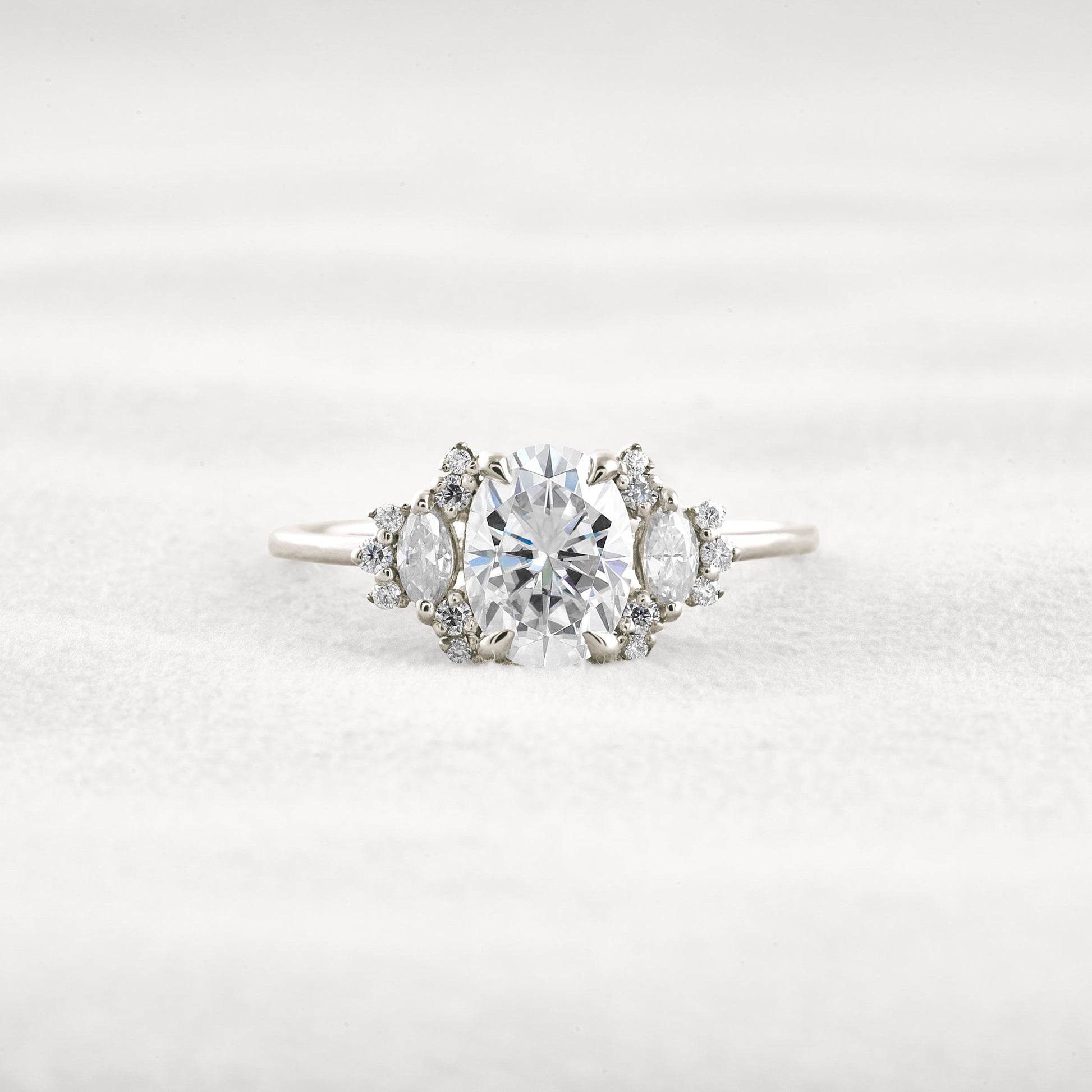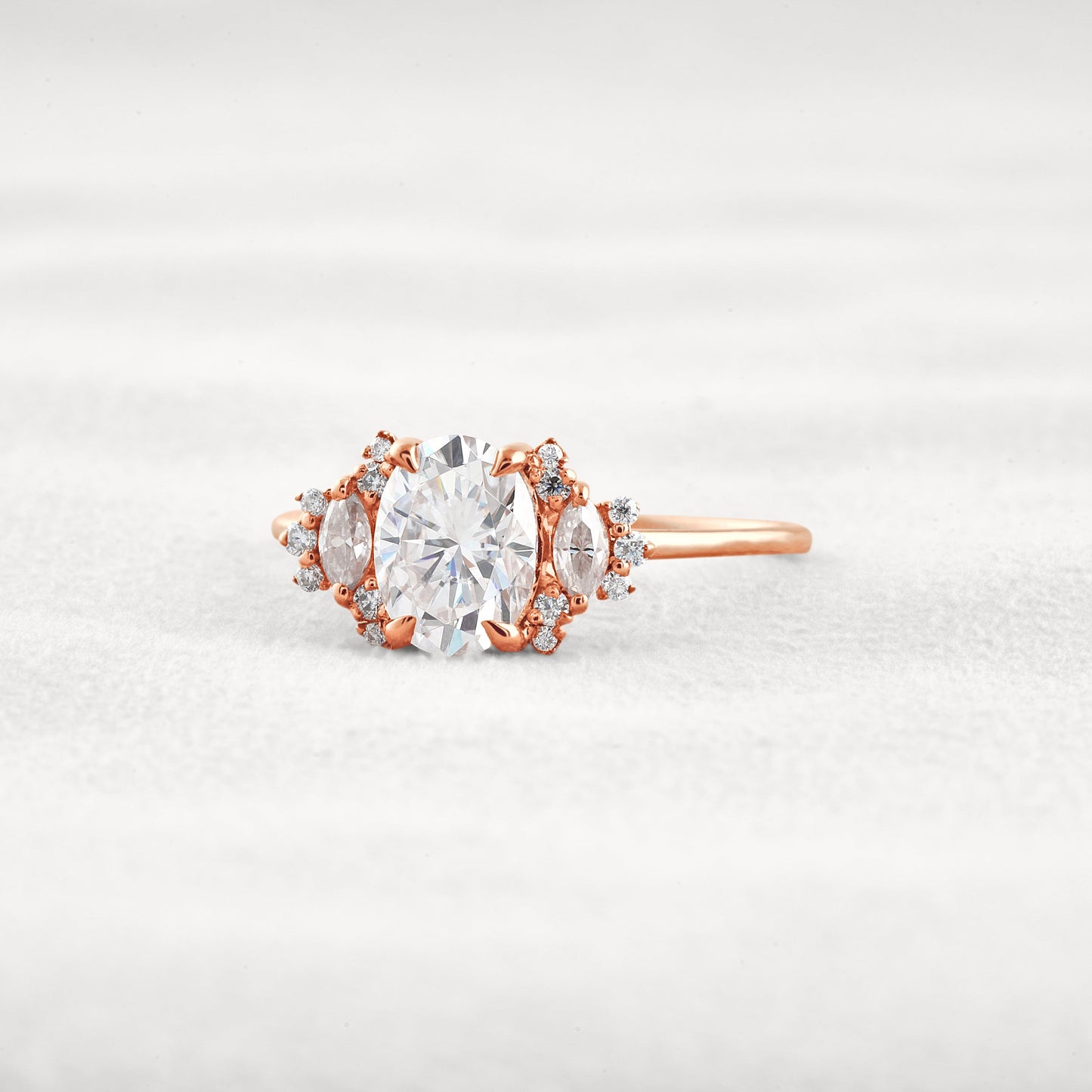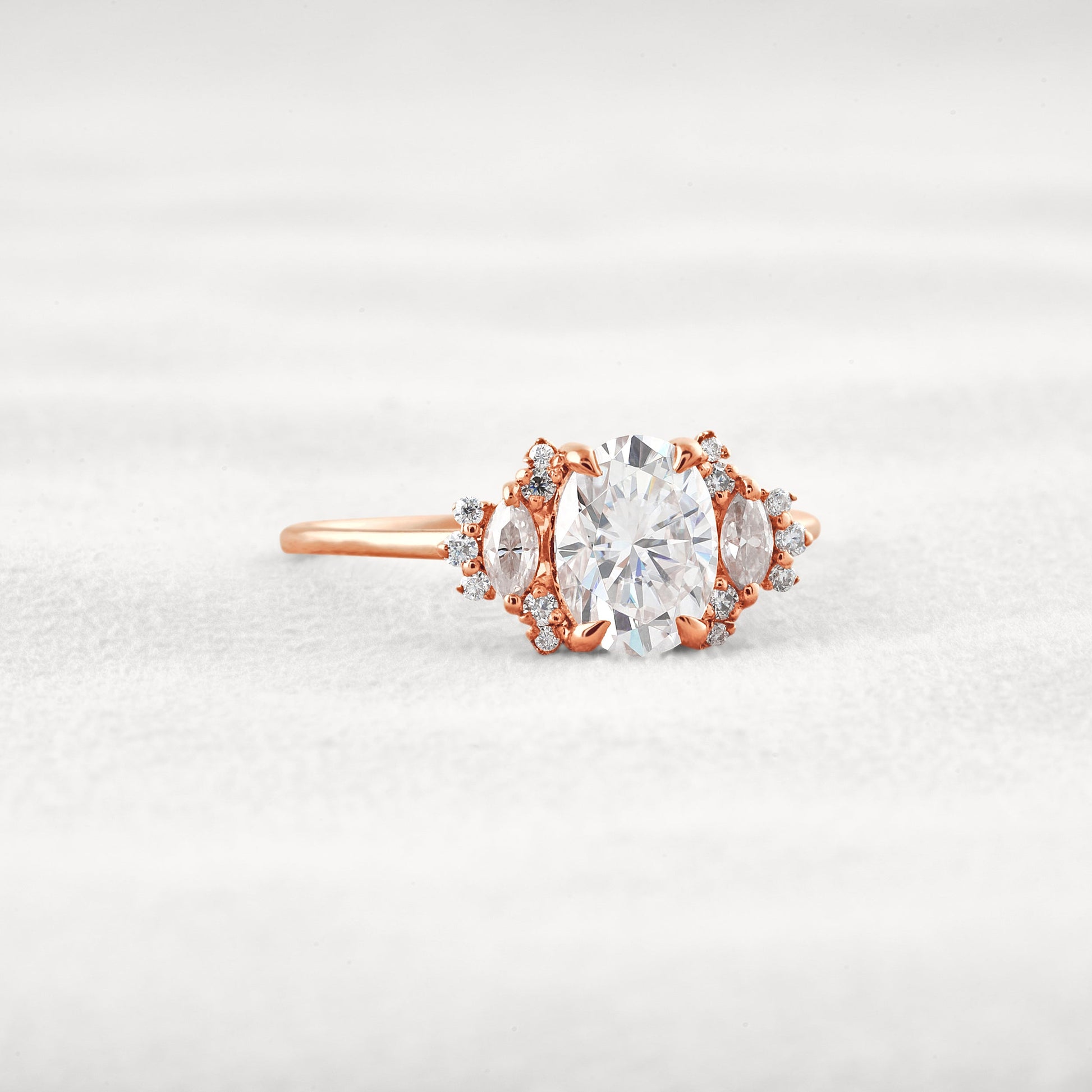 1.33 CT Oval Cut Cluster Moissanite Diamond Engagement Ring In Rose Gold