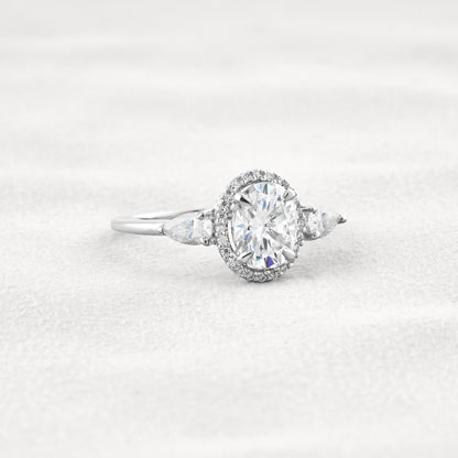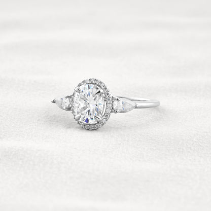 1.33 CT Oval Cut Halo Moissanite Diamond Engagement Ring