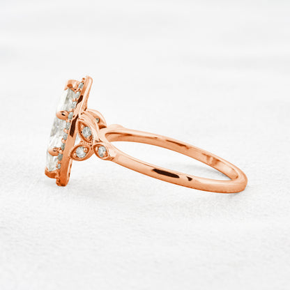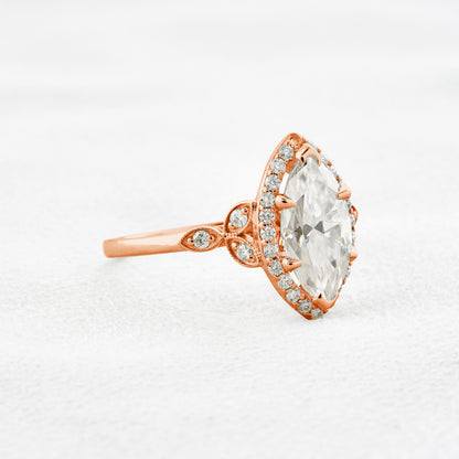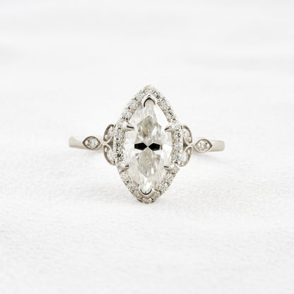 1.6 CT Marquise Cut Halo Moissanite Engagement Ring
