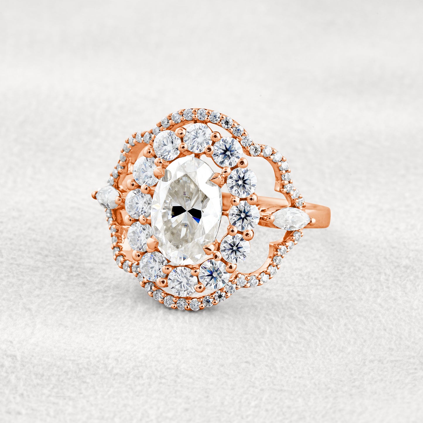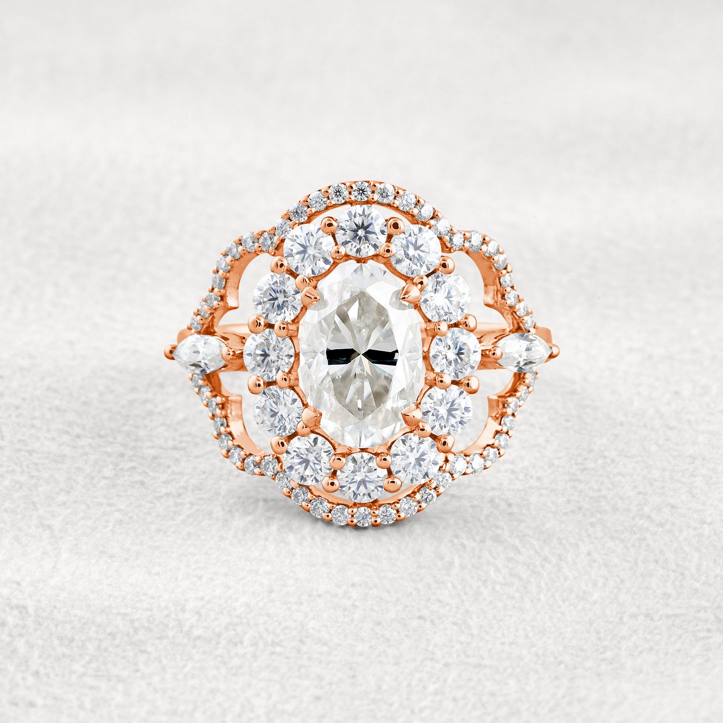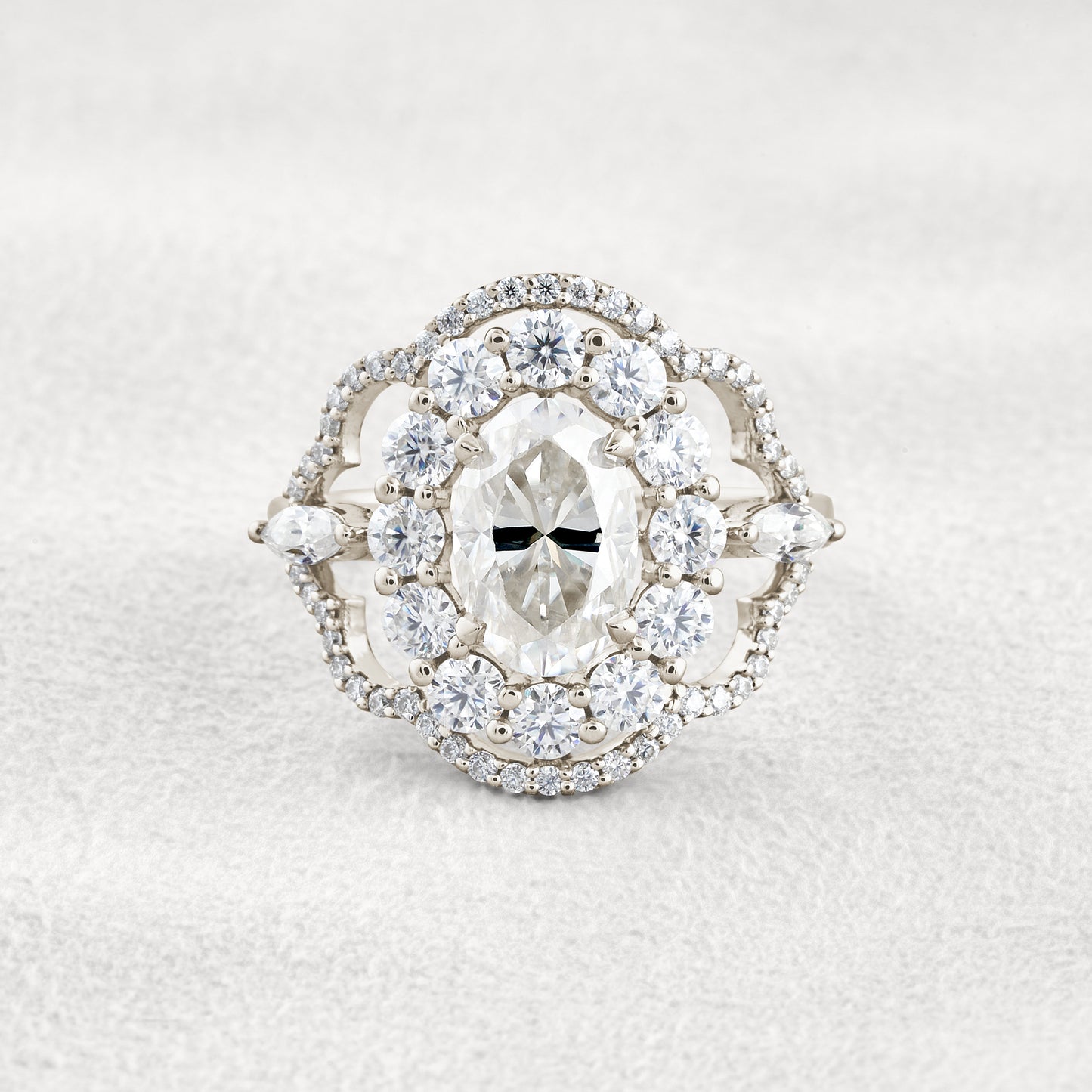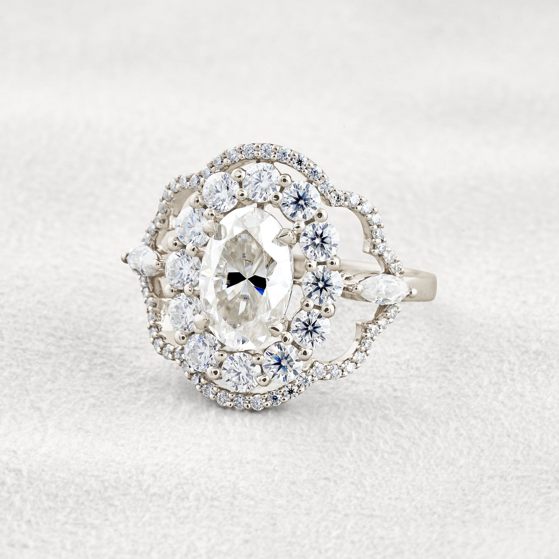 1.85 CT Vintage Oval Cut Halo Moissanite Engagement Ring