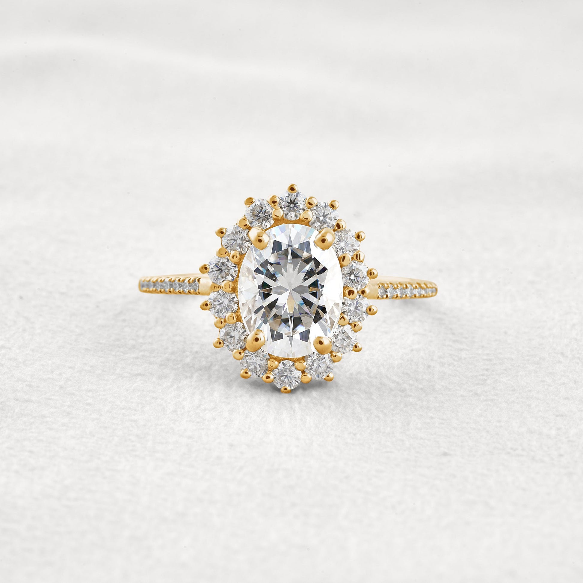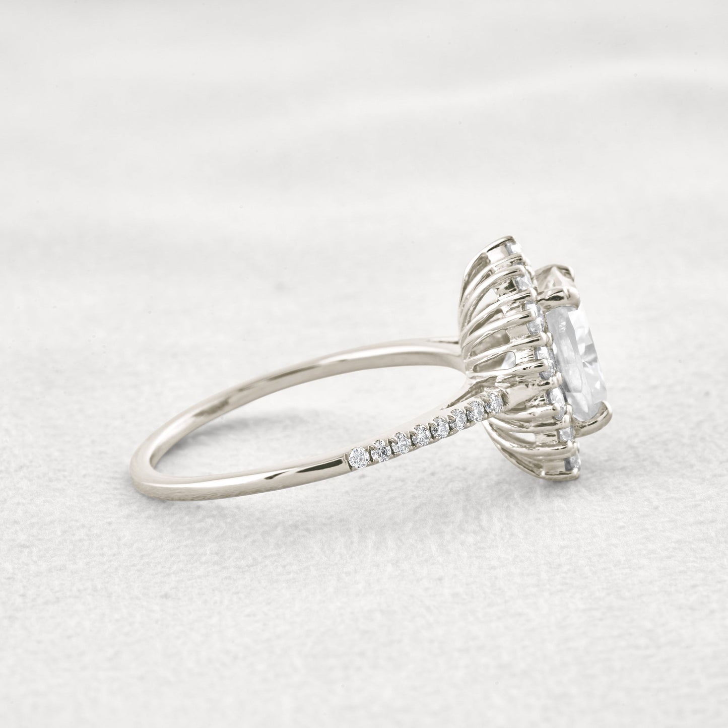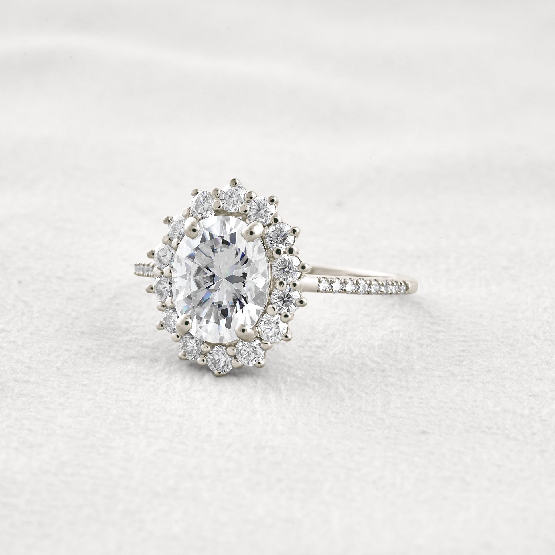 1.91 CT Oval Cut Halo & Pave Moissanite Diamond Engagement Ring In White Gold