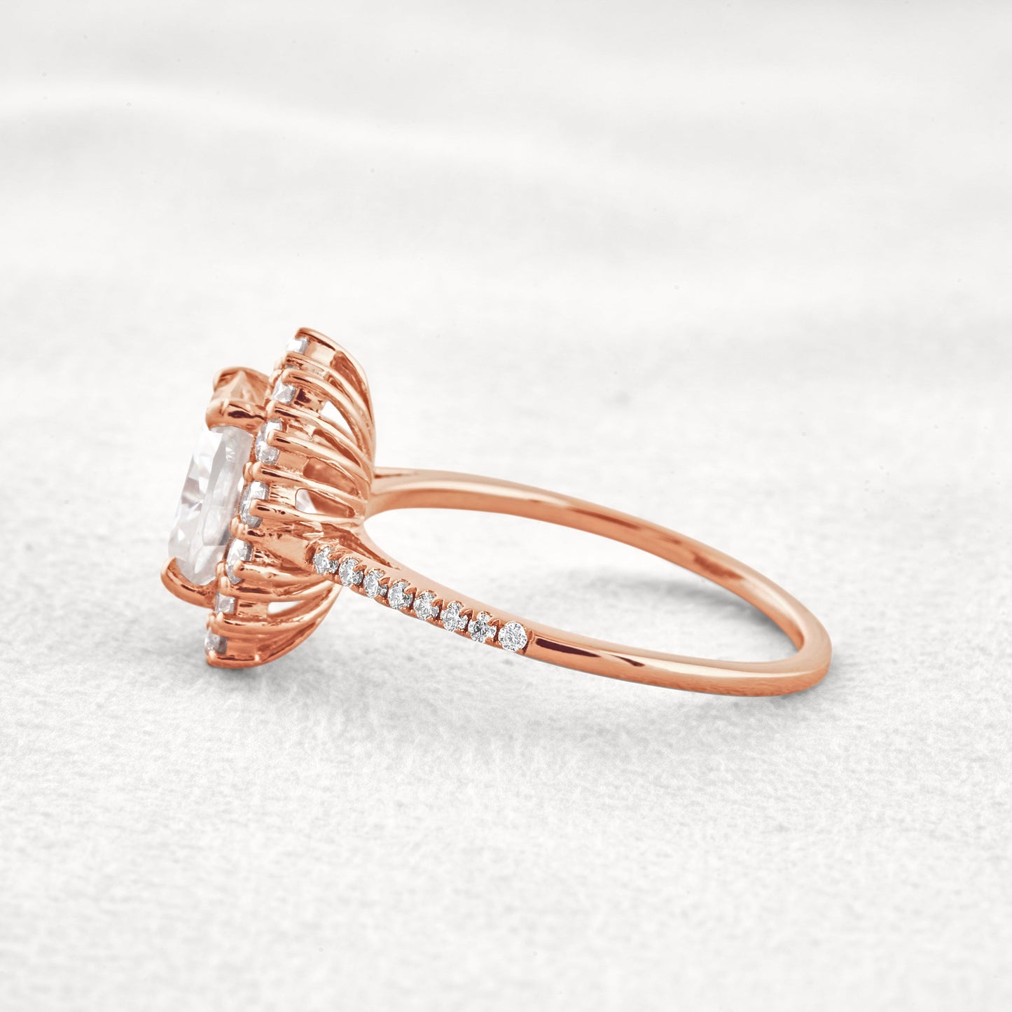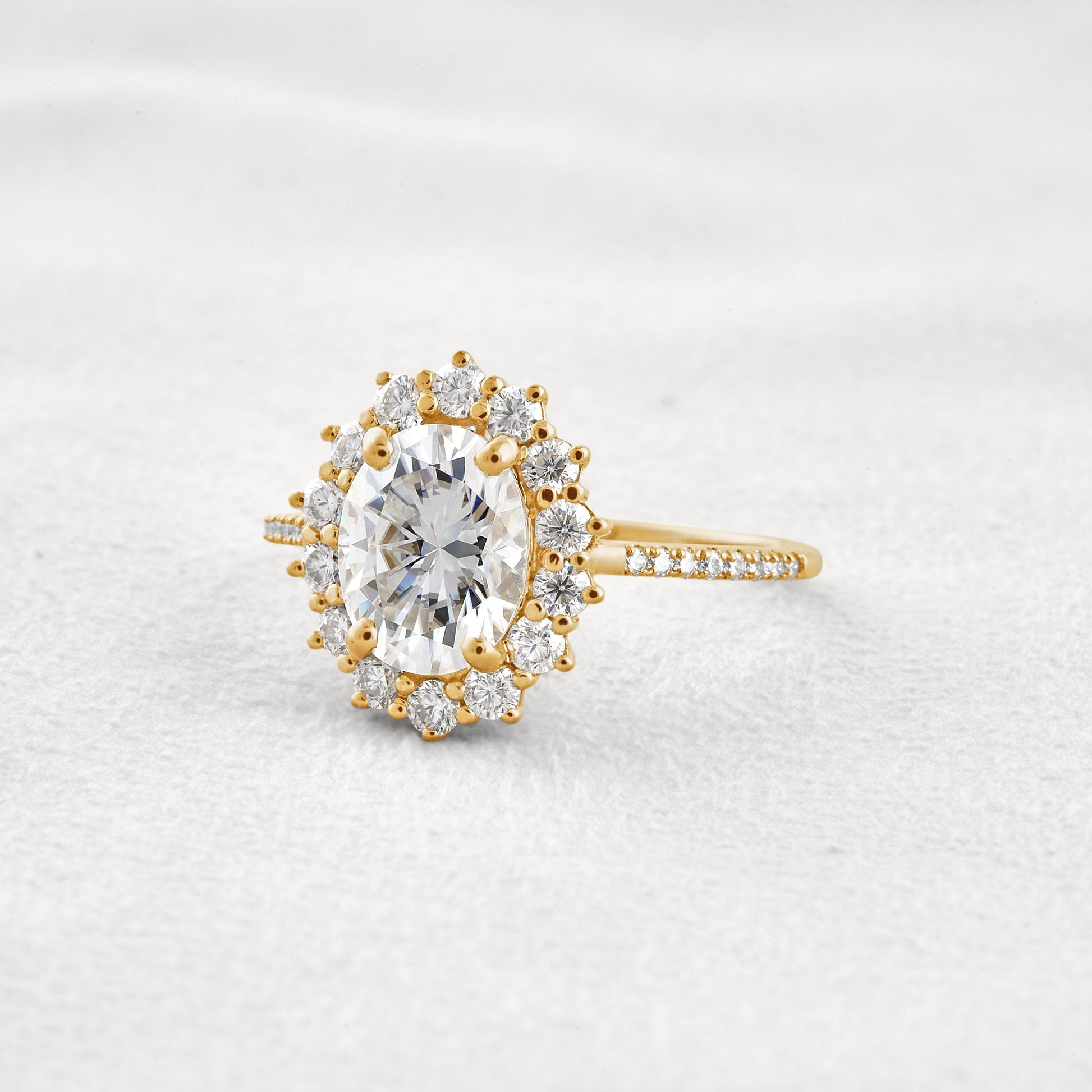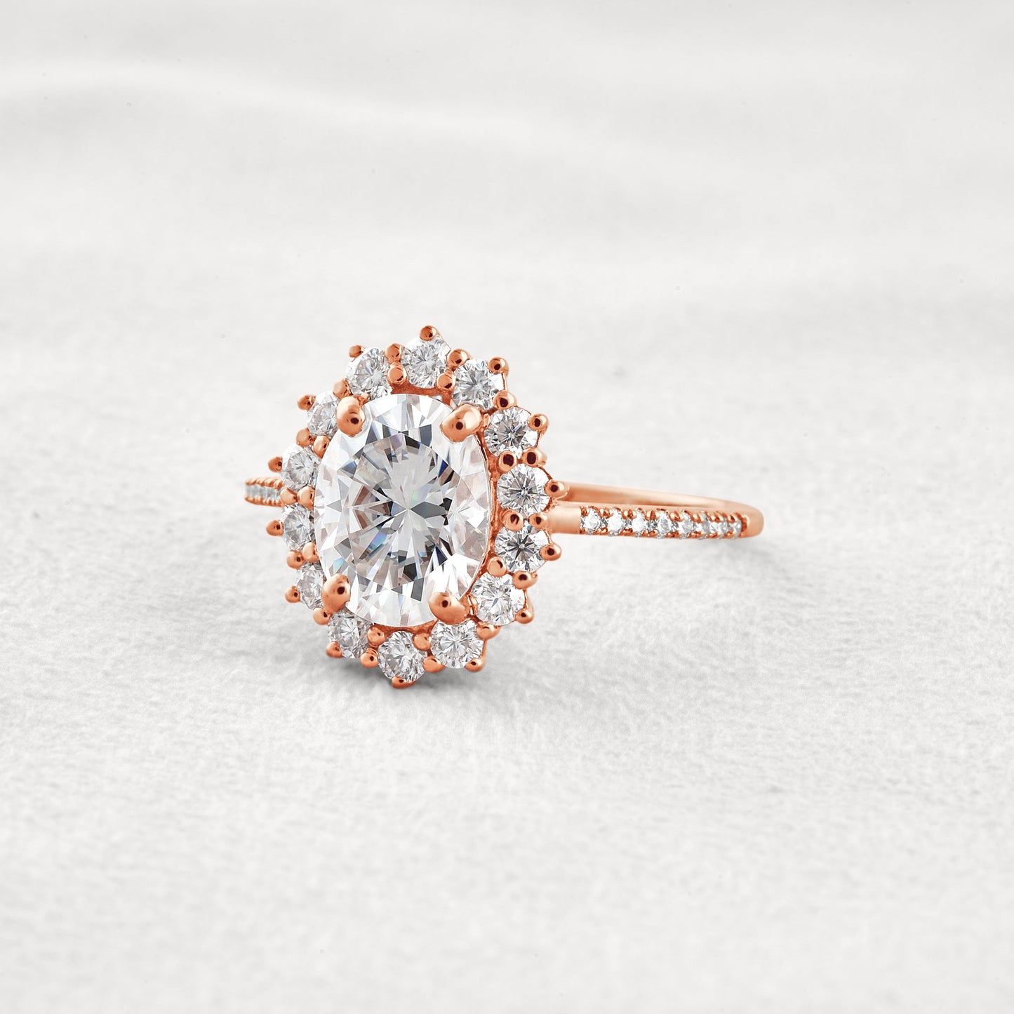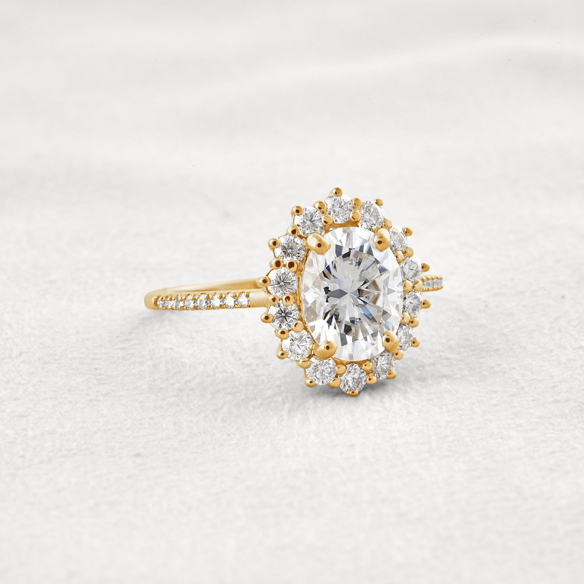 1.91 CT Oval Cut Halo & Pave Moissanite Diamond Engagement Ring In White Gold