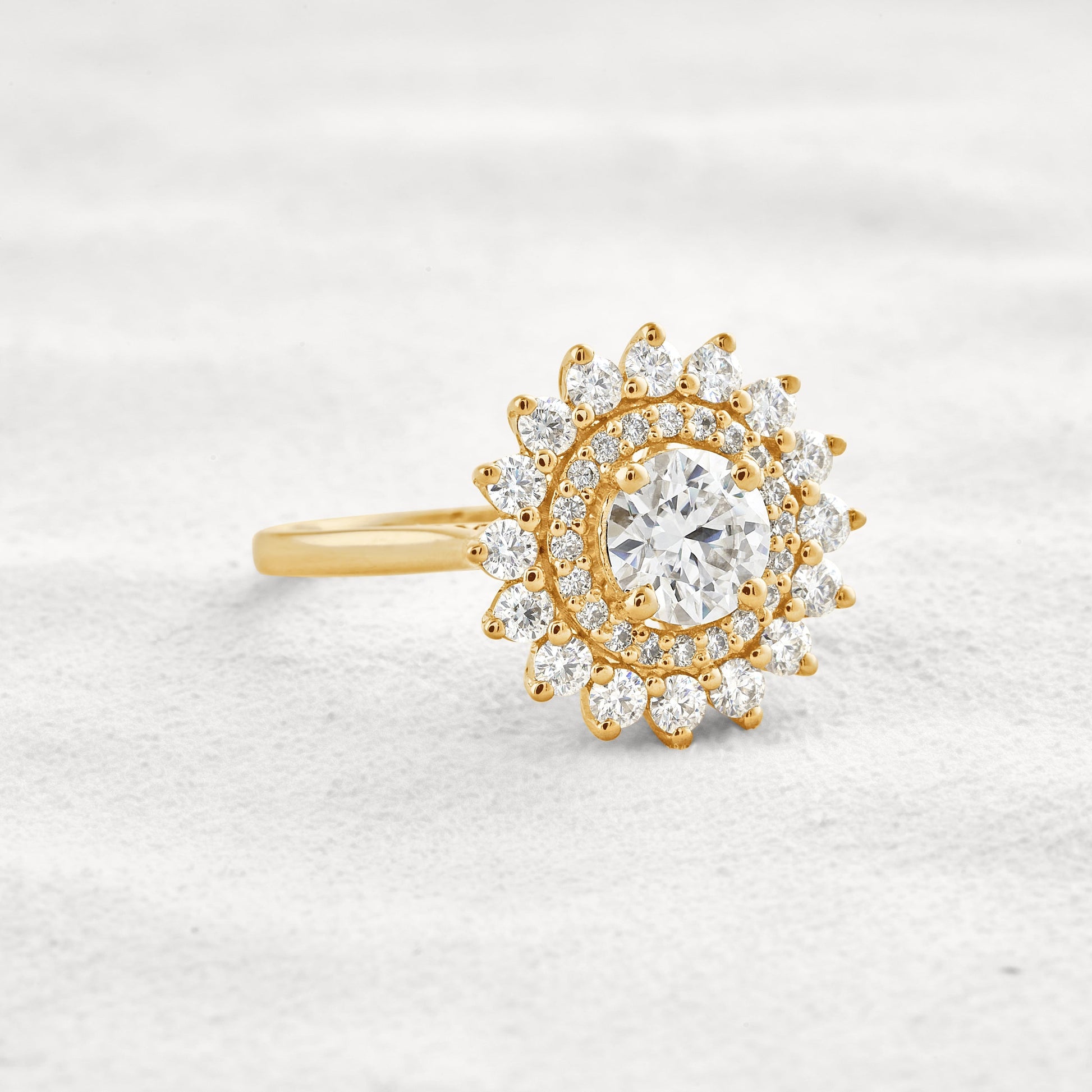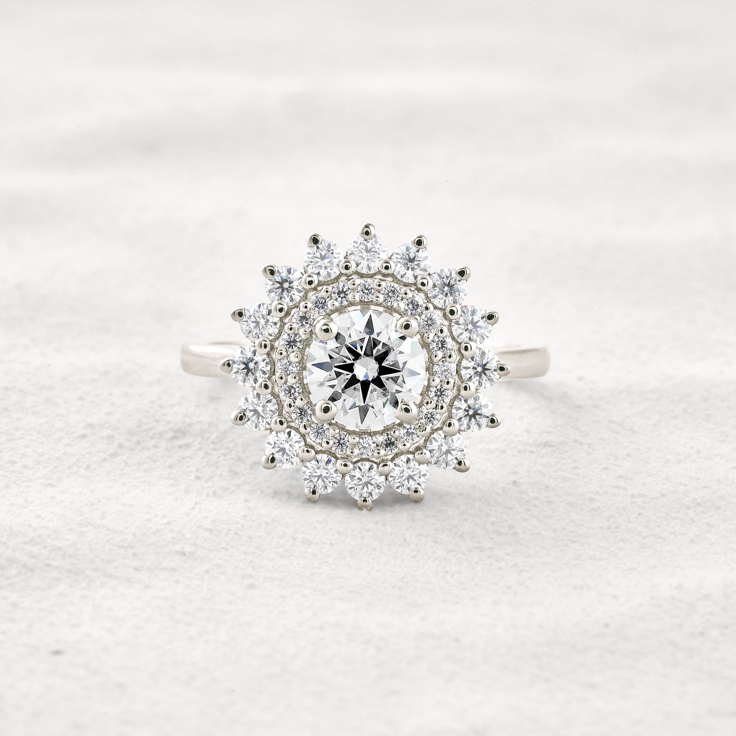 0.5 CT Round Cut Double Halo Moissanite Diamond Engagement Ring