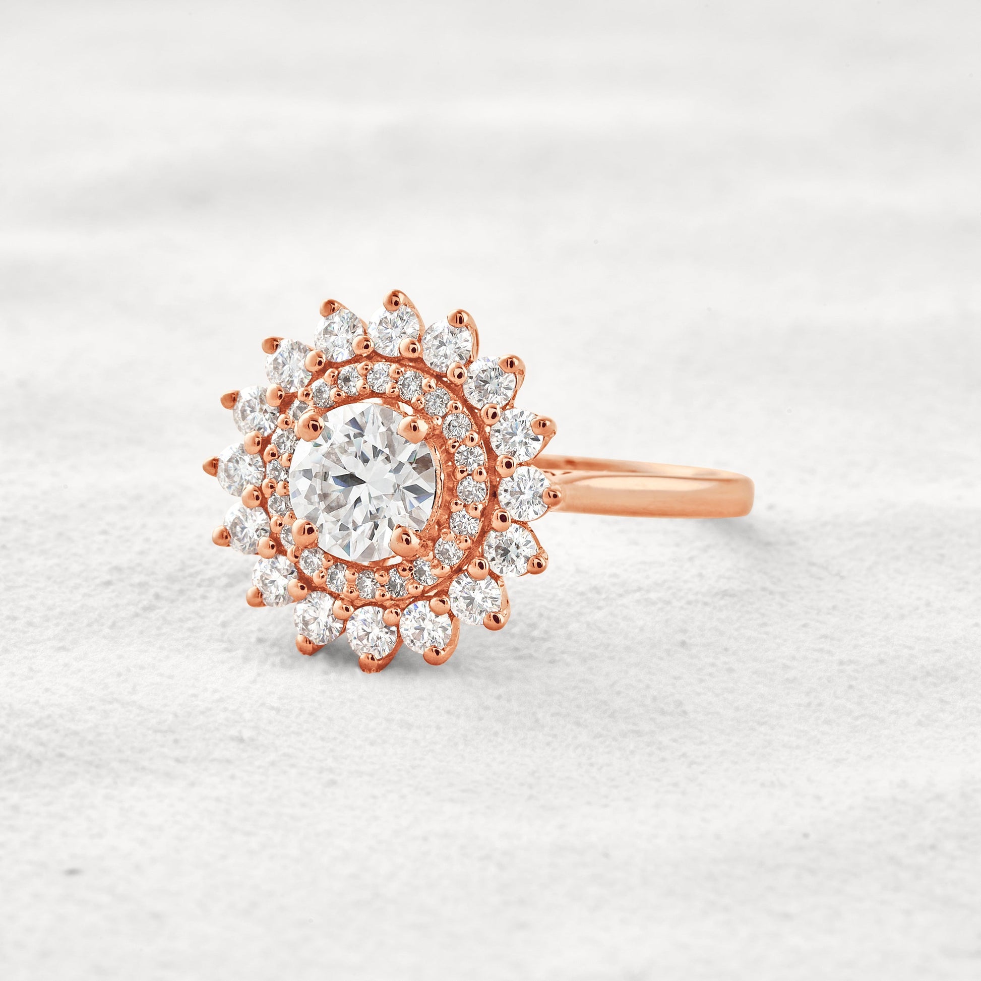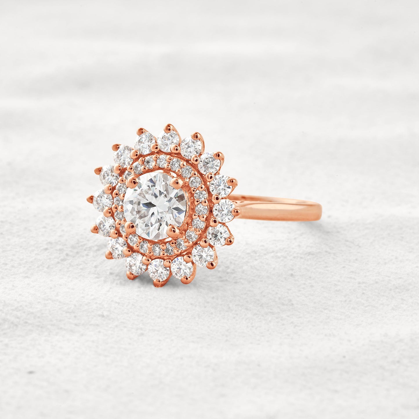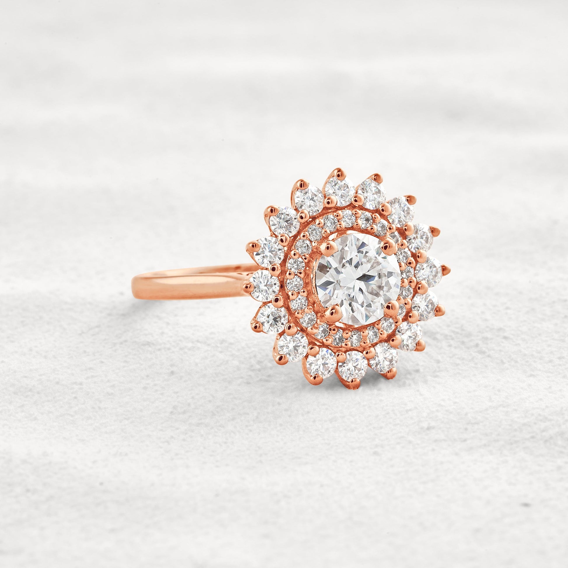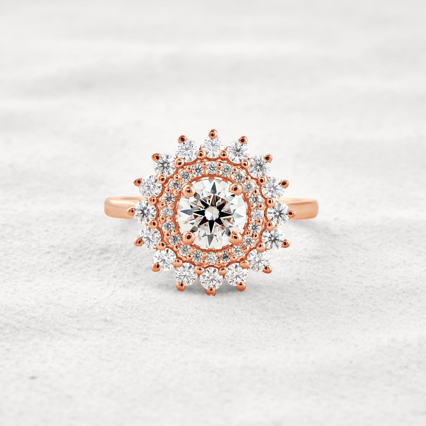 1 CT Round Cut Double Halo Moissanite Diamond Engagement Ring In Rose Gold