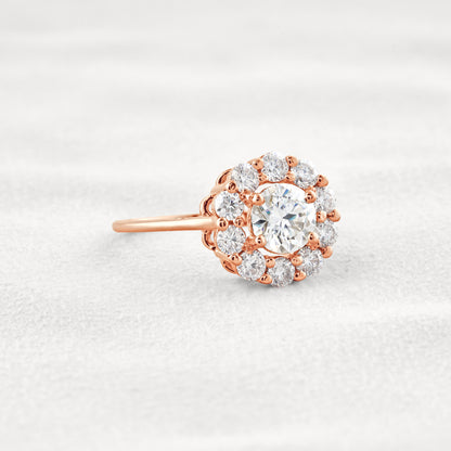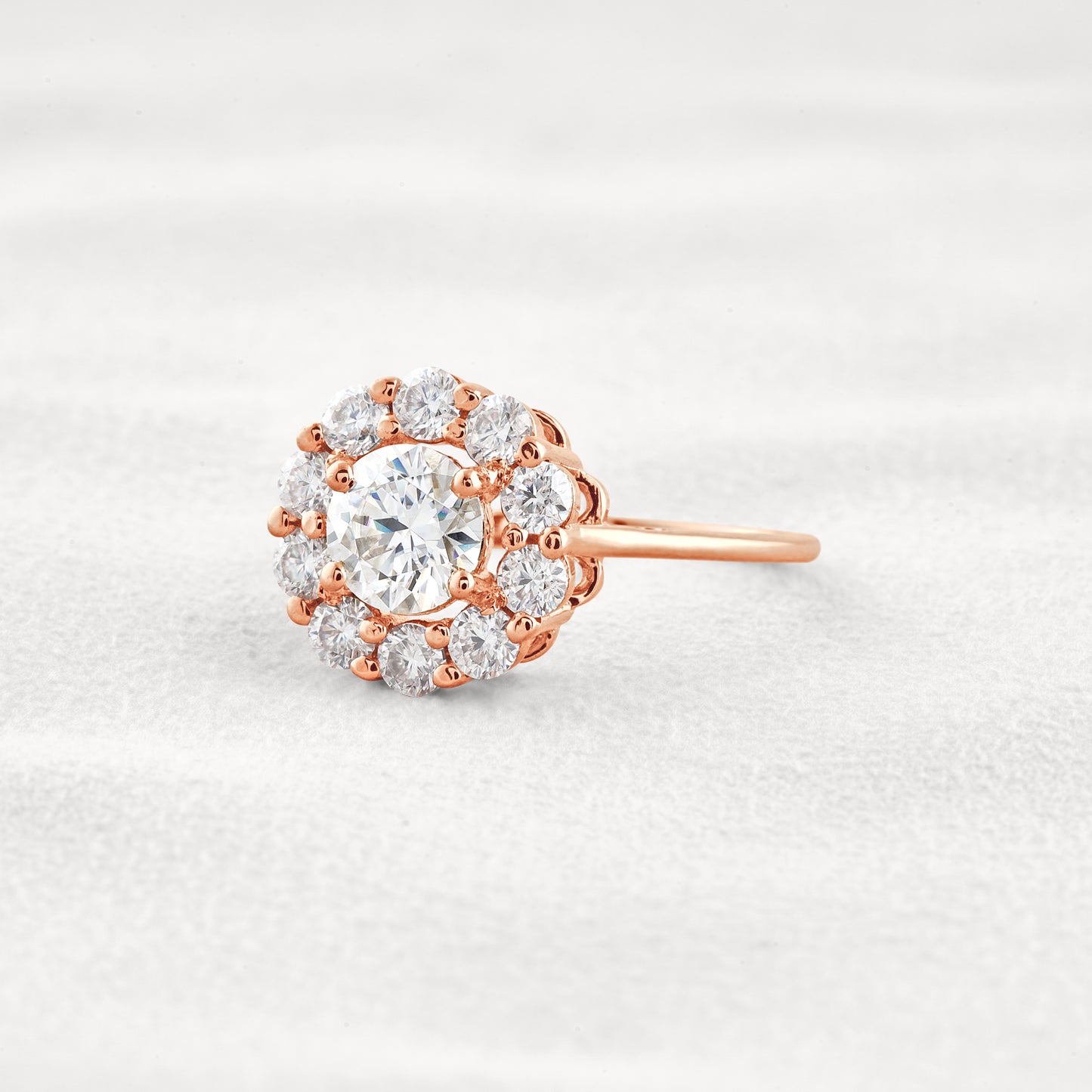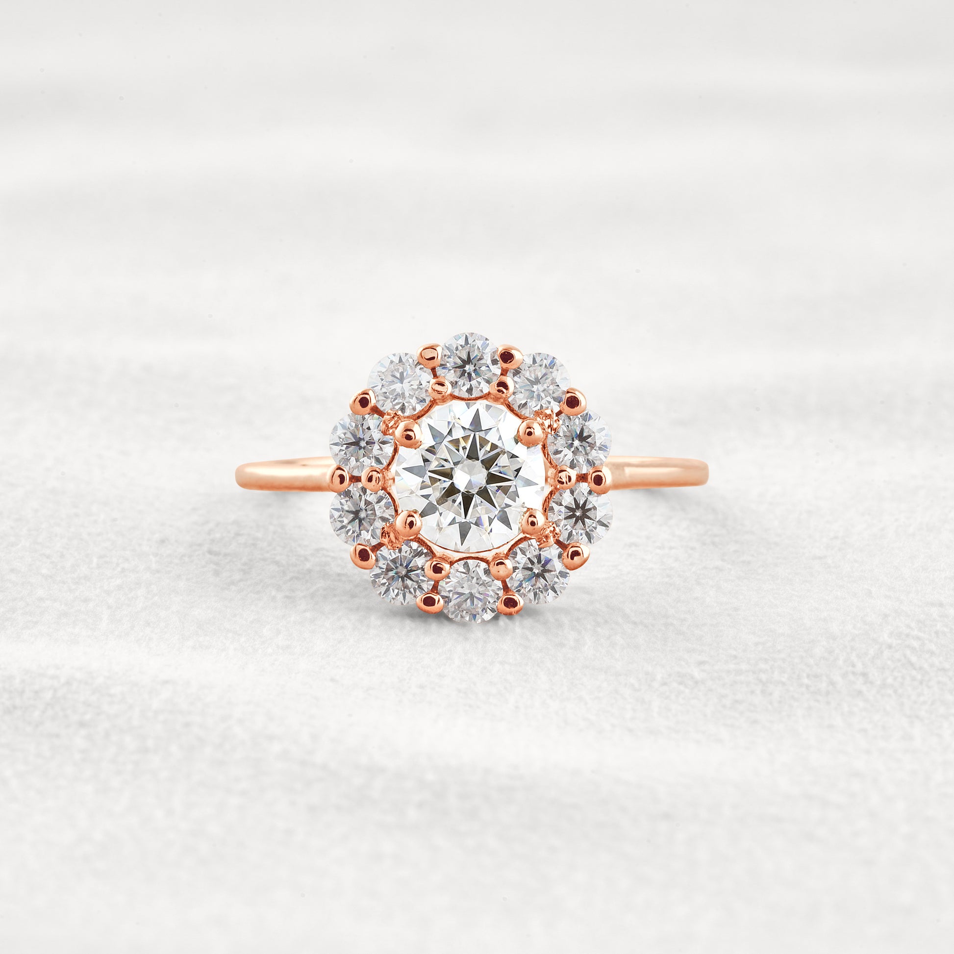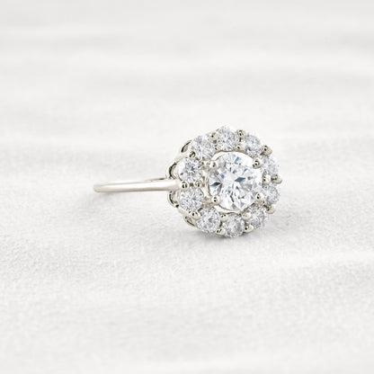 1 CT Round Cut Halo Moissanite Diamond Engagement Ring