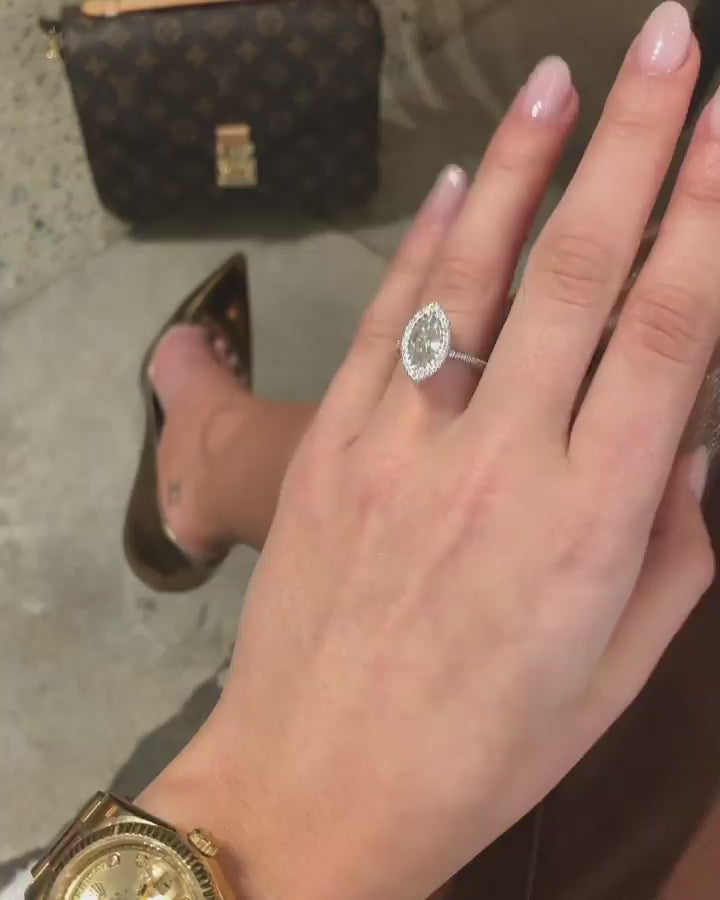 2.0ct Marquise Moissanite Double Halo Setting Pave Band Engagement Ring