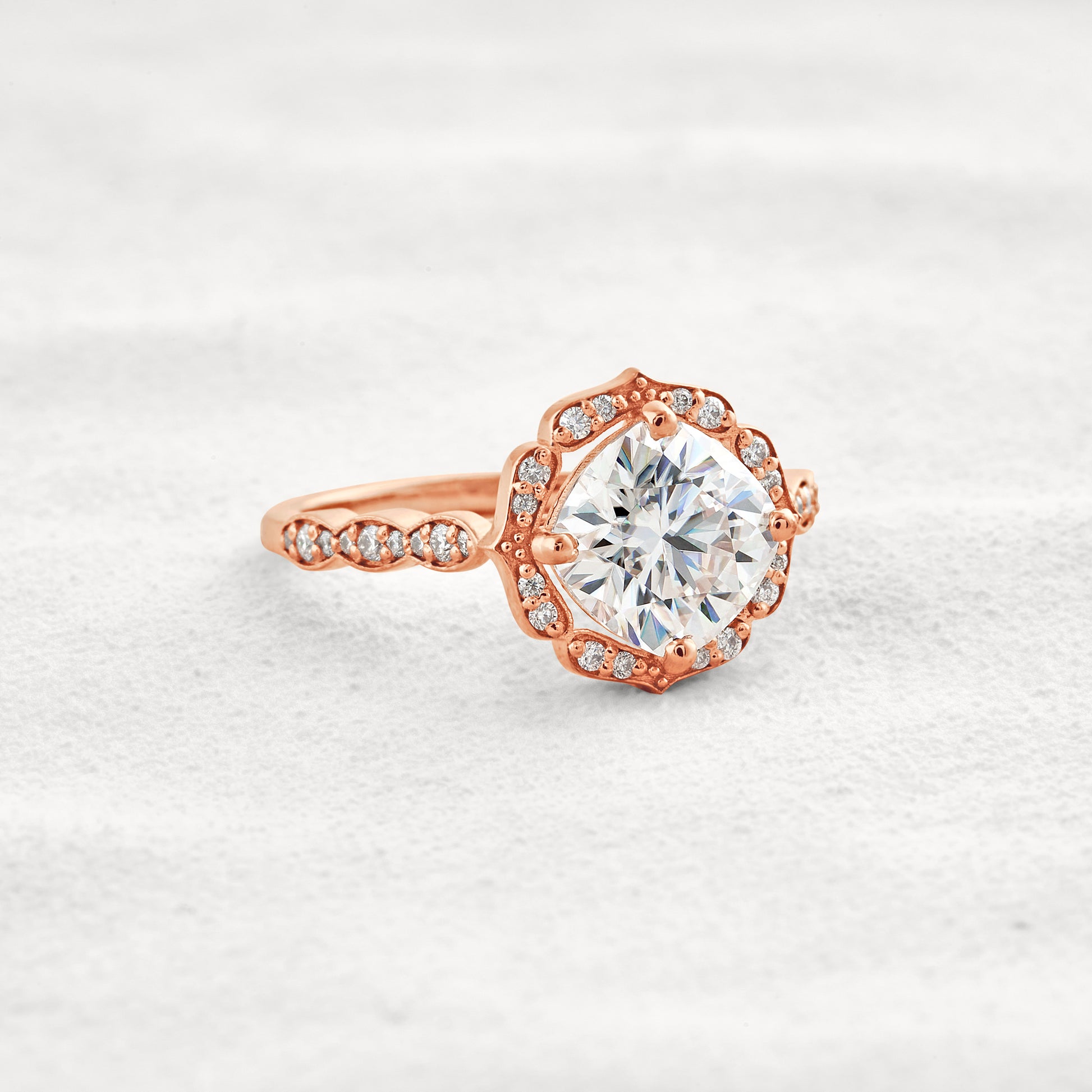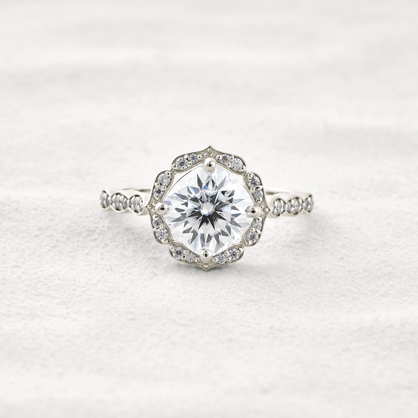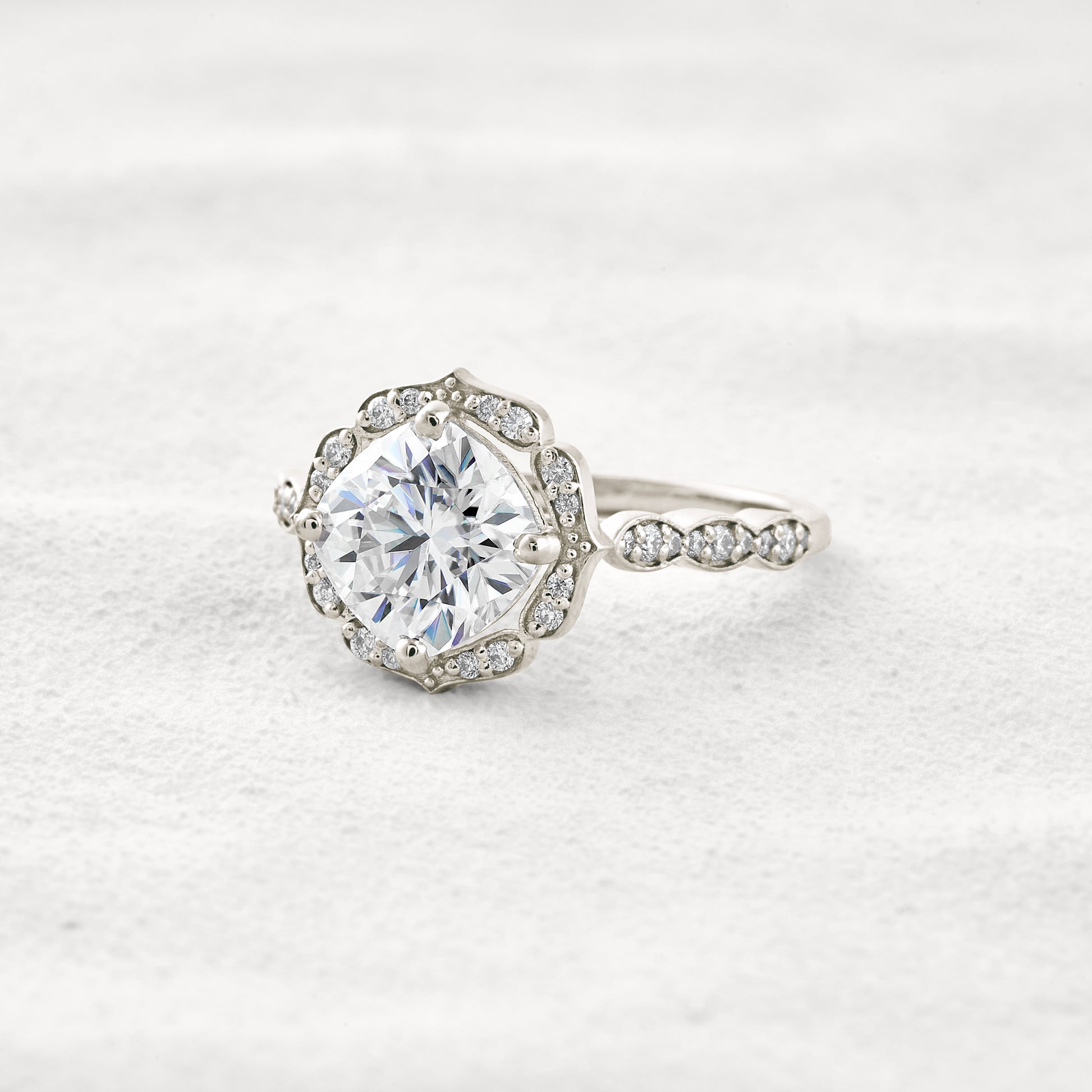 2.1 CT Cushion Cut Halo & Pave Moissanite Diamond Engagement Ring