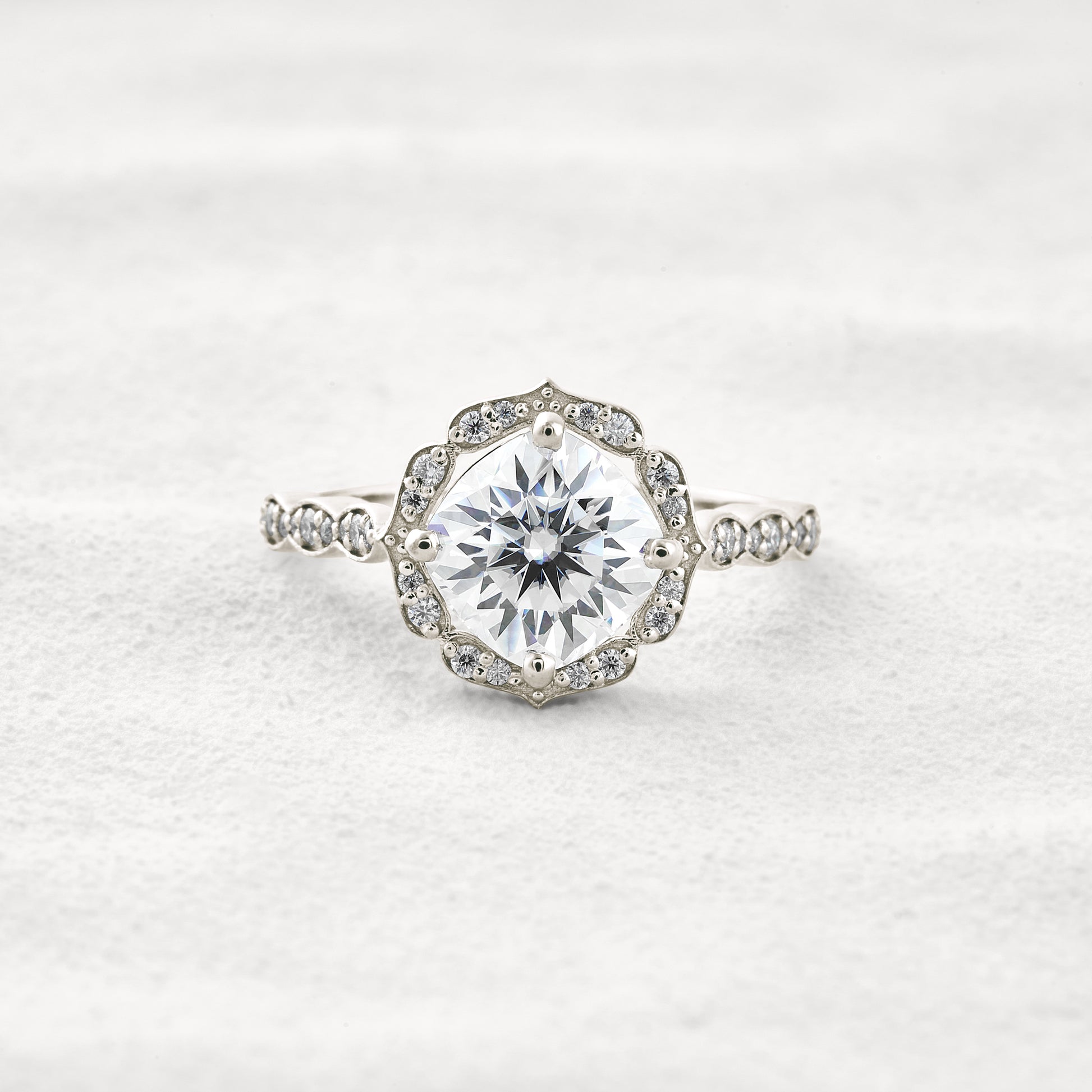 0.5 CT Round Cut Double Halo Moissanite Diamond Engagement Ring