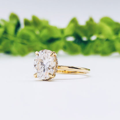 2.72 CT Oval Moissanite Diamond Hidden Halo Engagement Ring