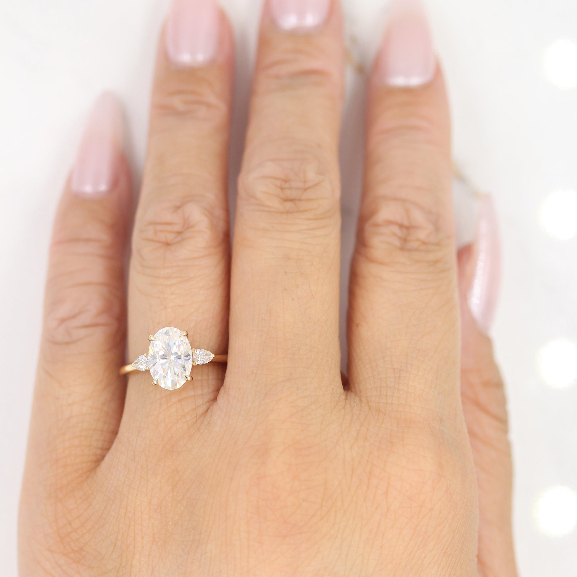 3.75 CT Oval Moissanite Diamond Three Stones Engagement Ring