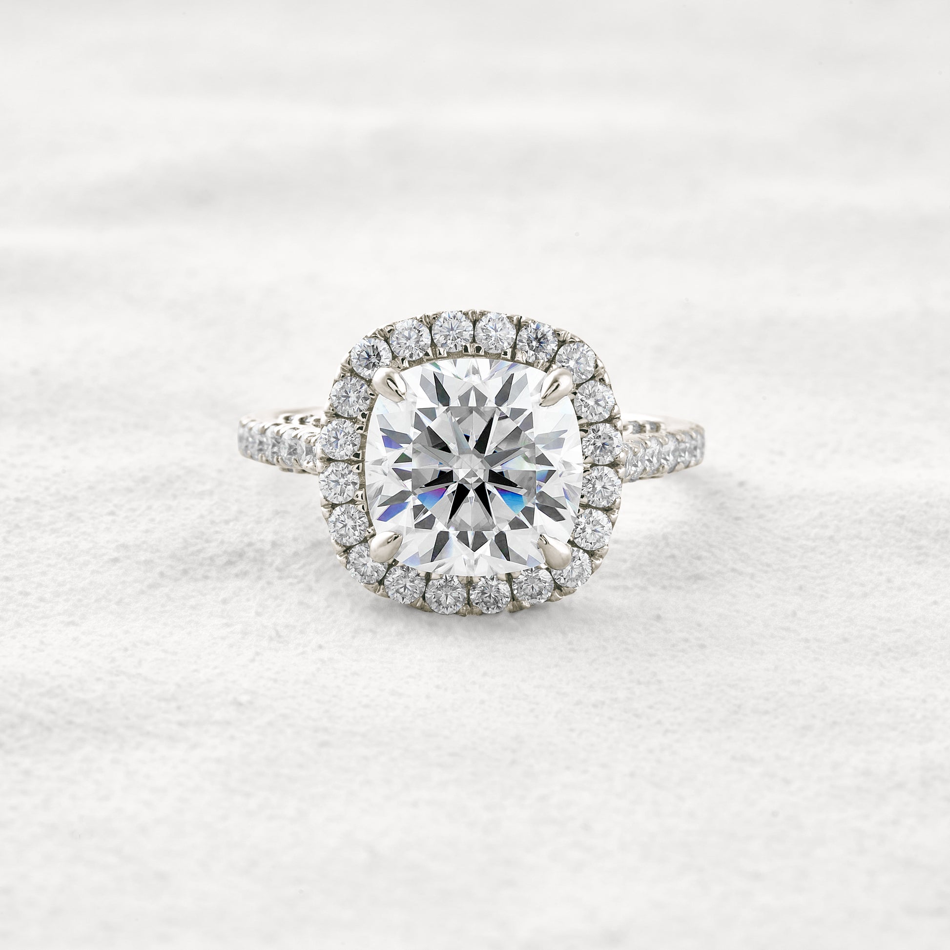 4 CT Cushion Cut Halo & Pave Moissanite Diamond Engagement Ring
