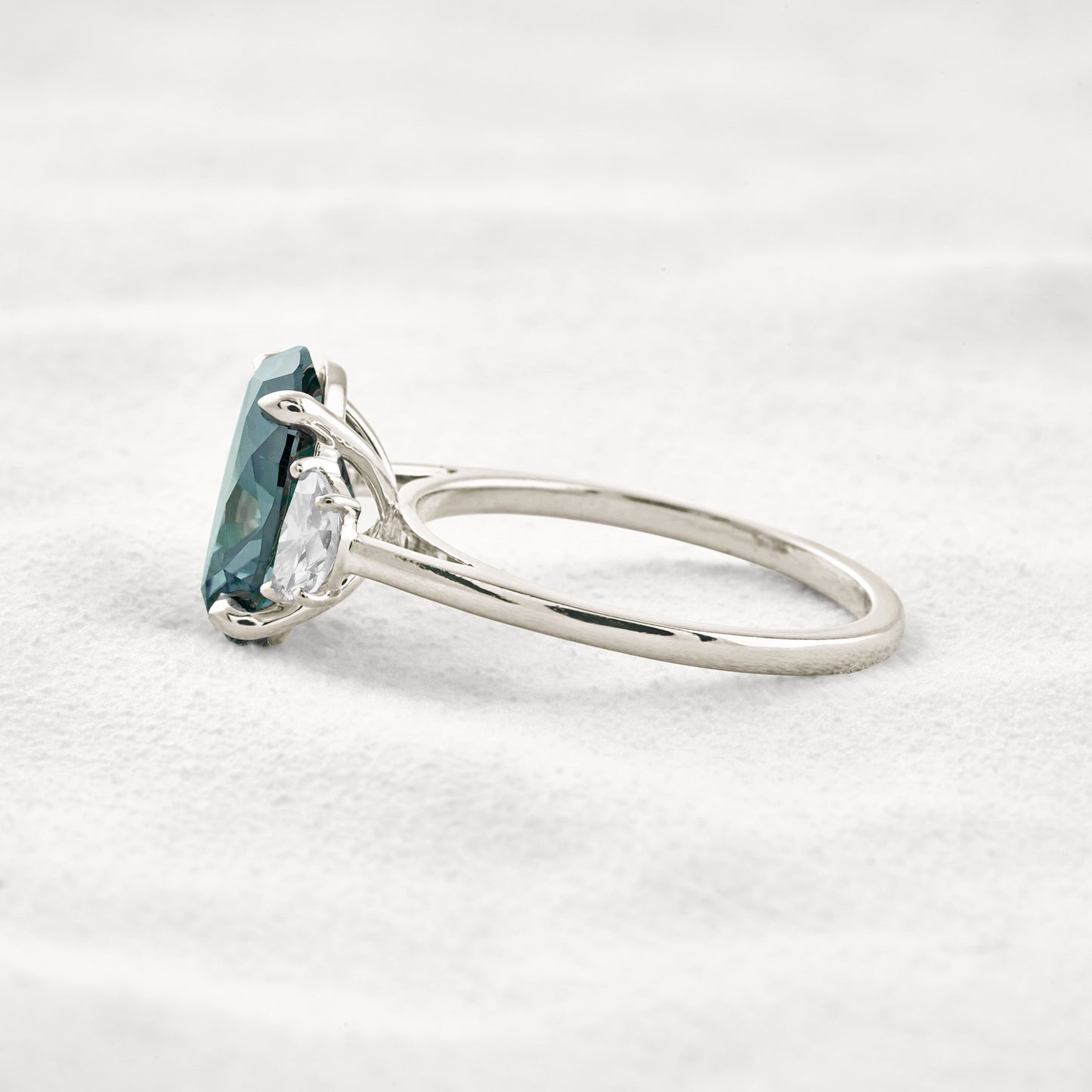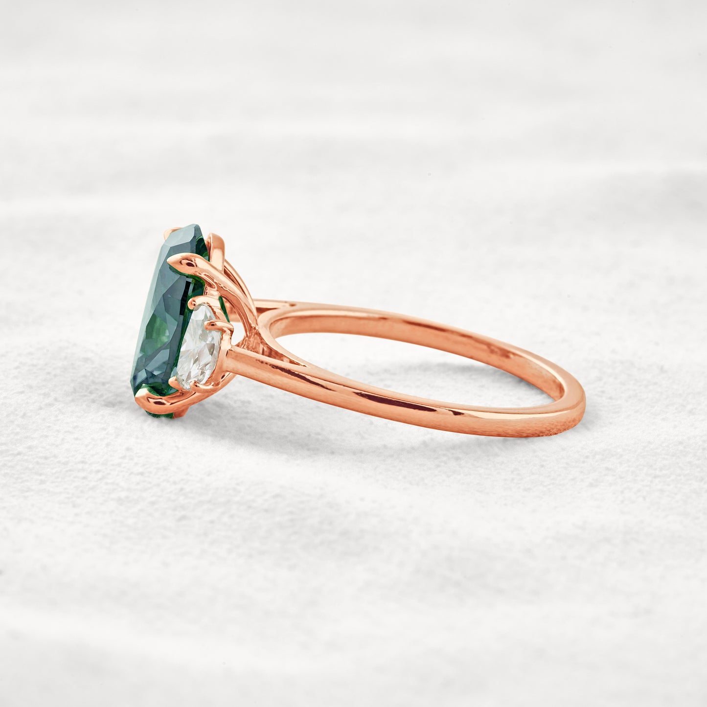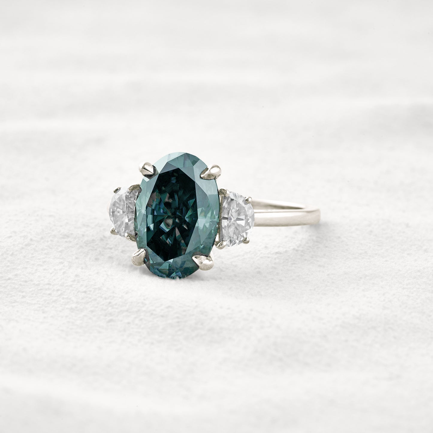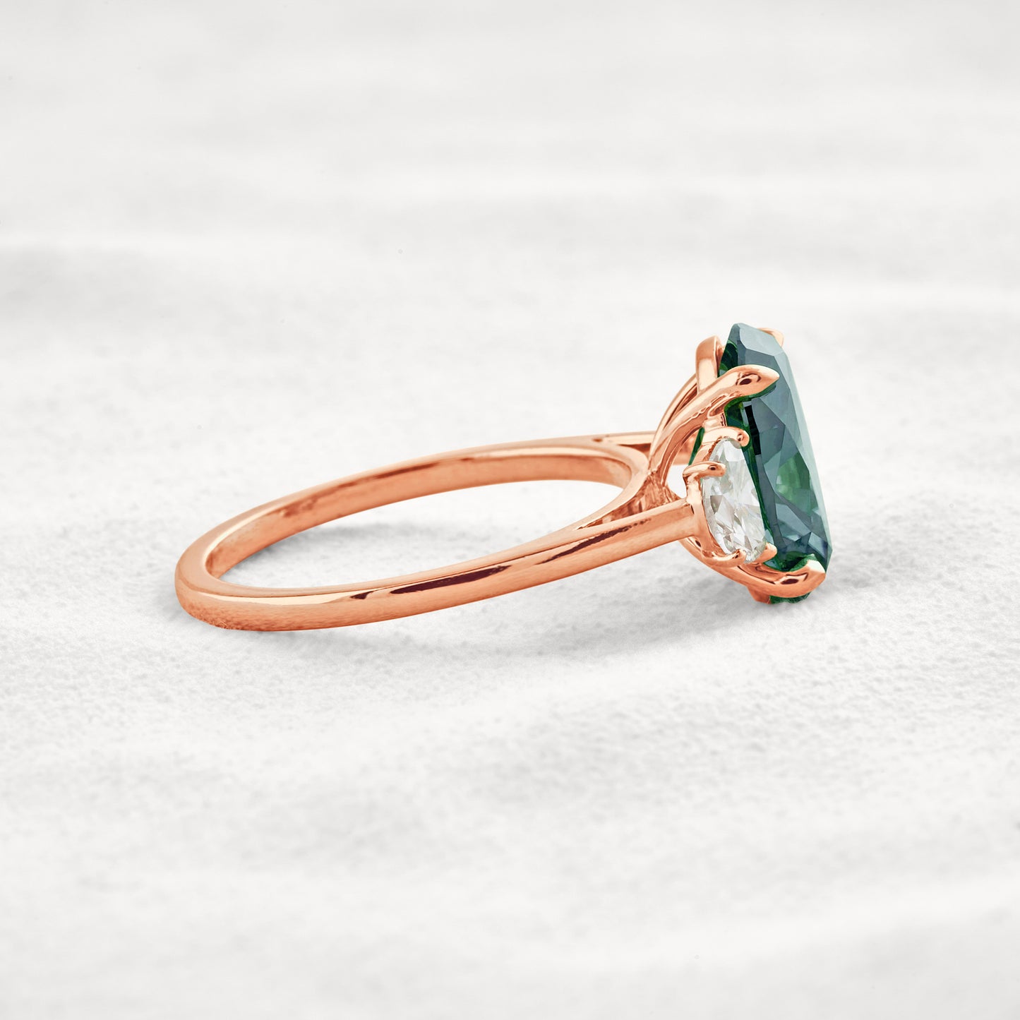 4 CT Dark Green Oval 3 Stones Cut Moissanite Diamond Engagement Ring