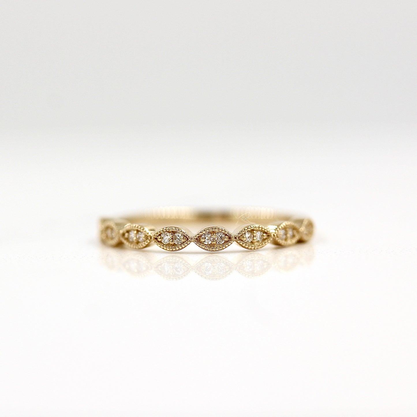 0.10 CT Round Moissanite Diamond Milgrain Wedding Band