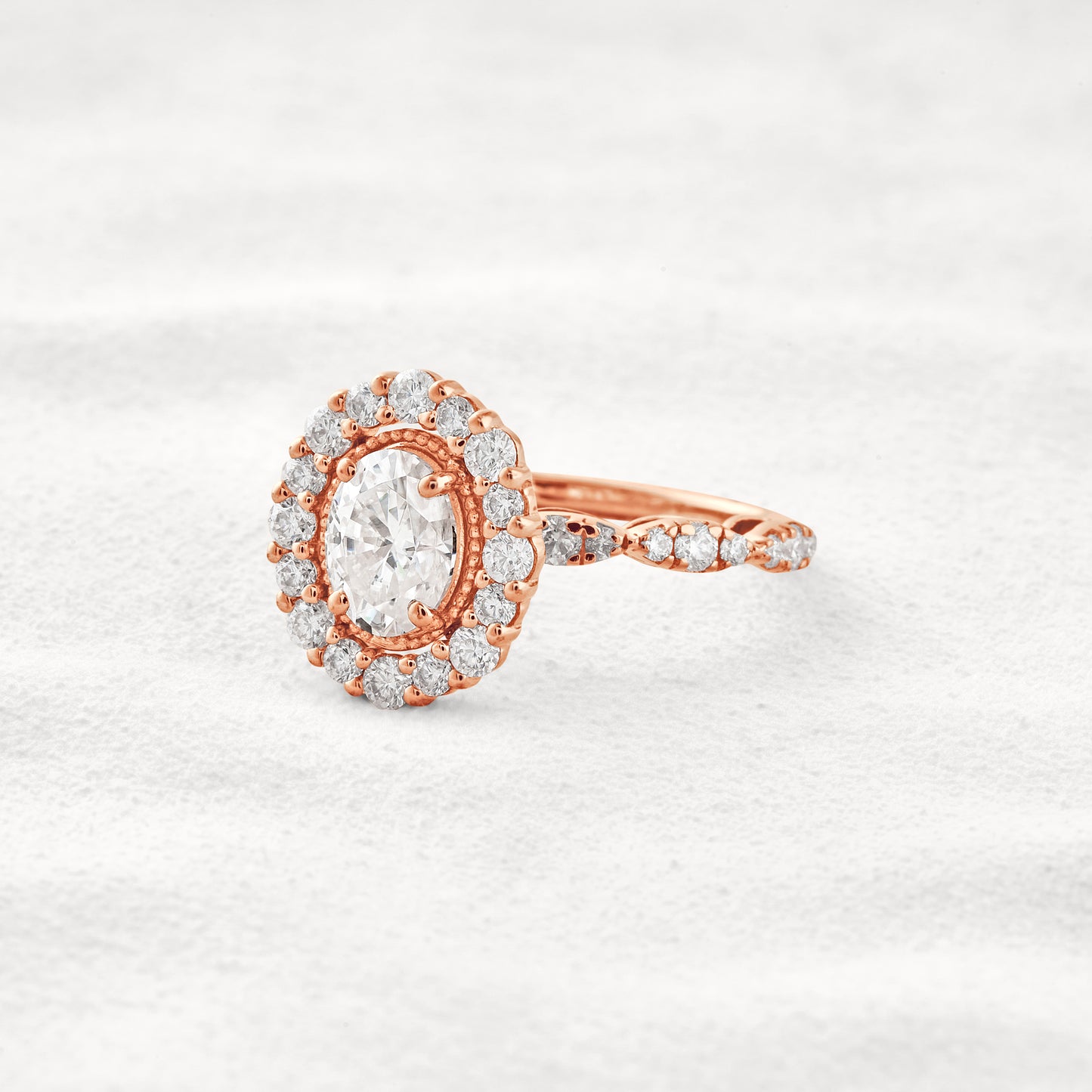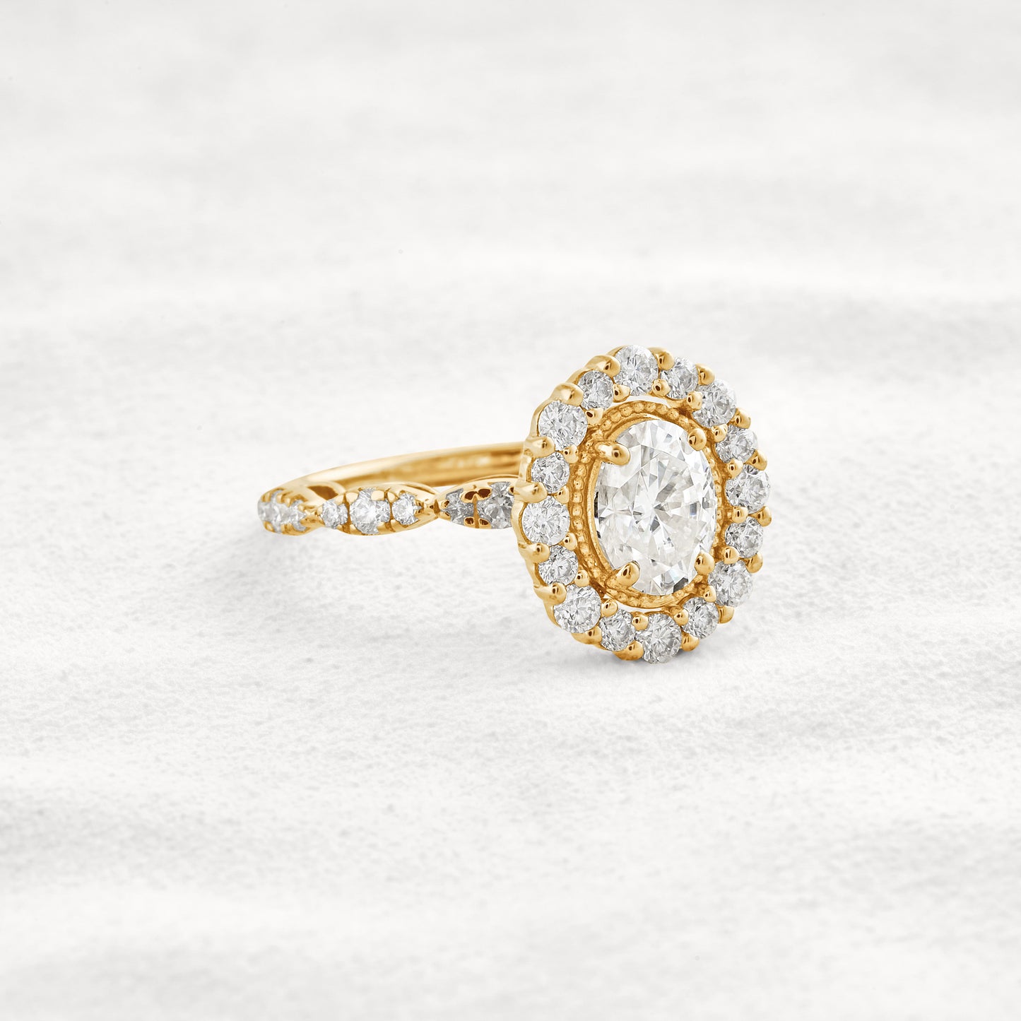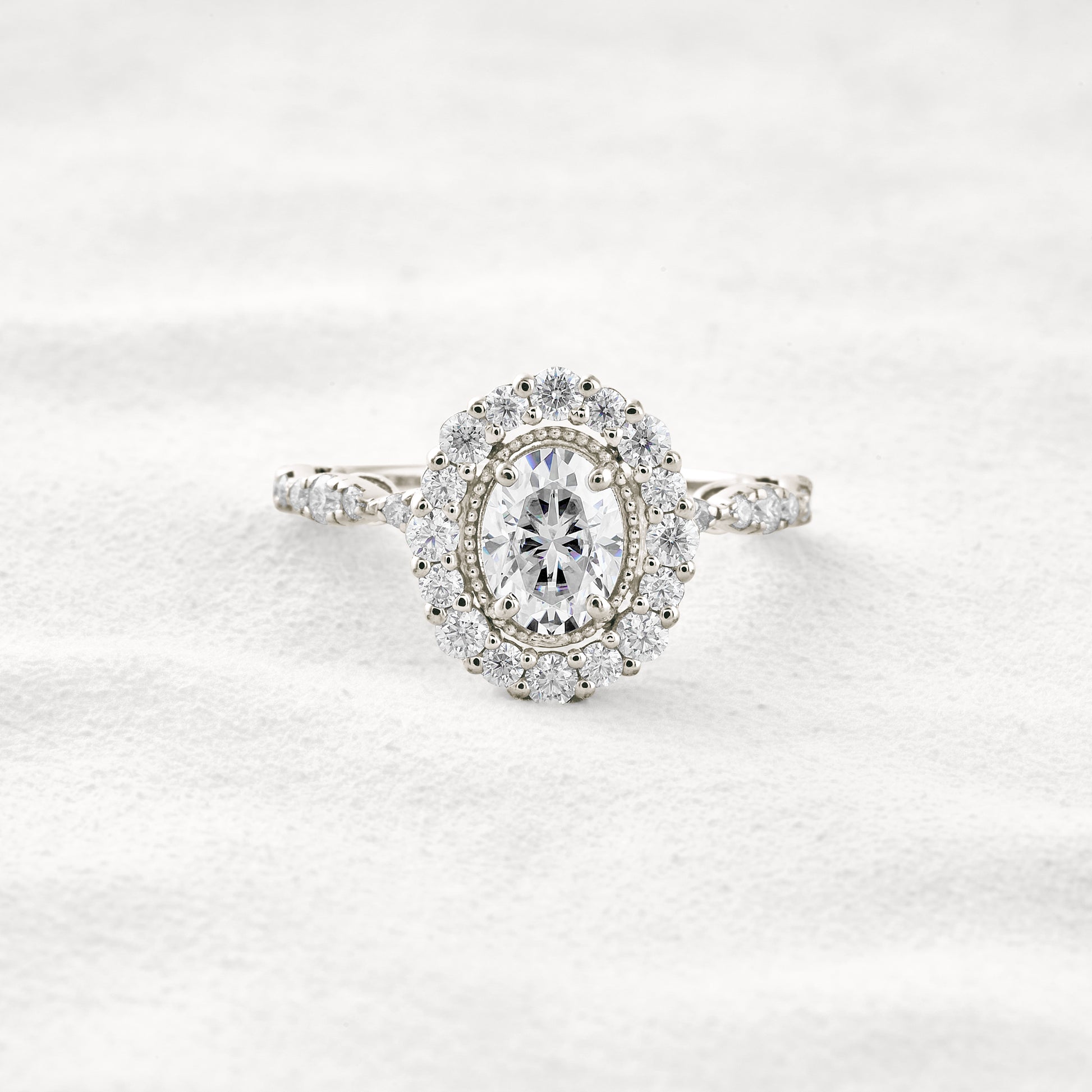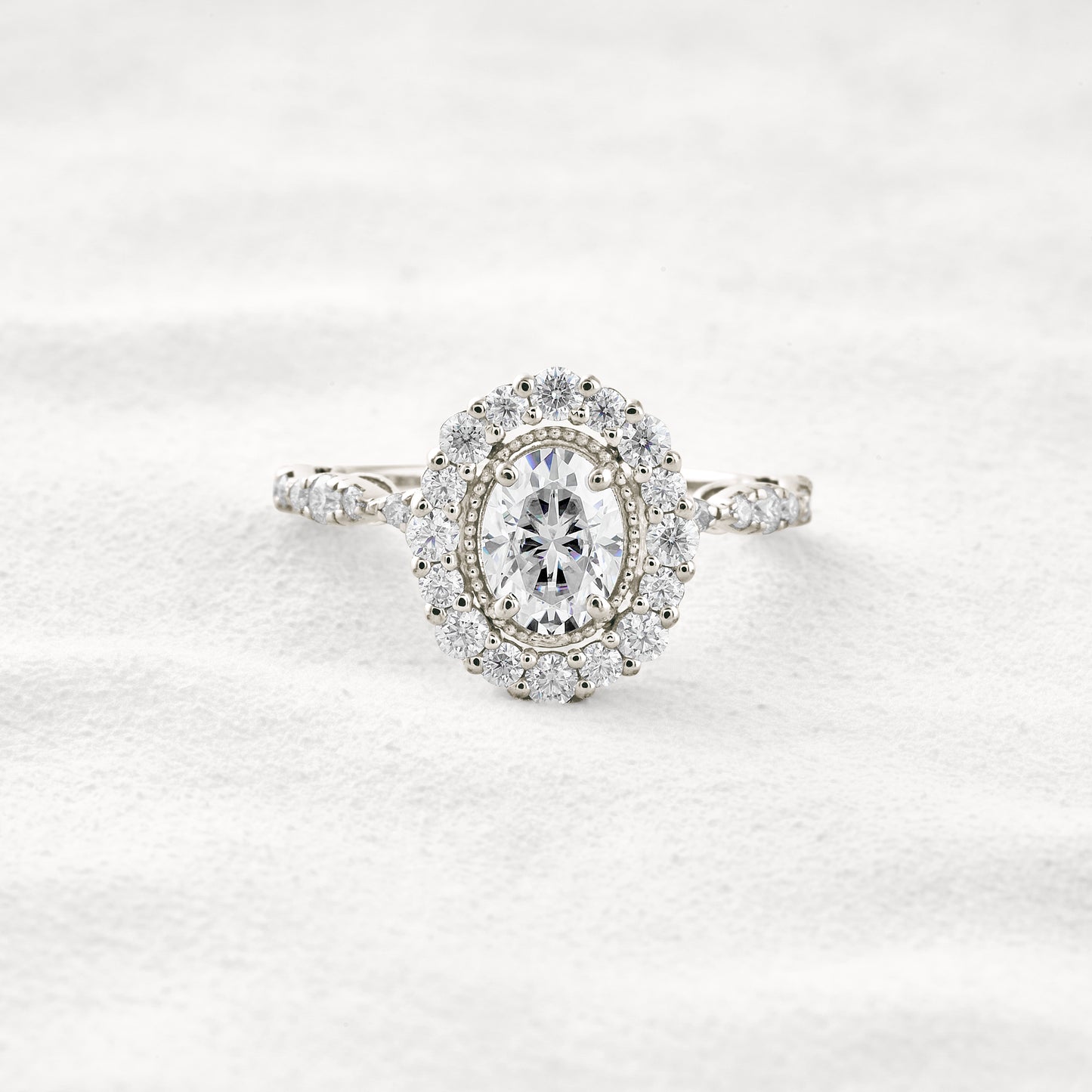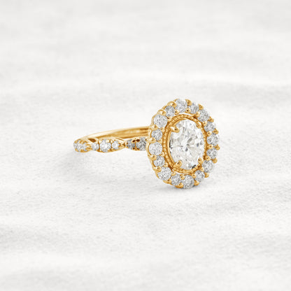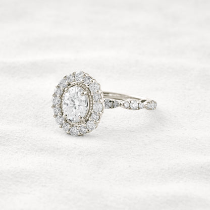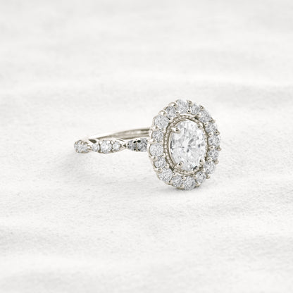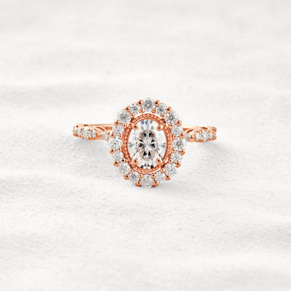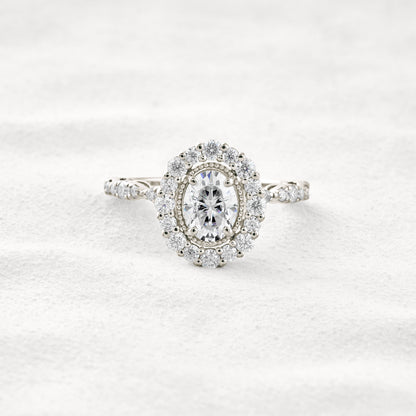 1.33 CT Oval Cut Halo & Pave Moissanite Diamond Engagement Ring