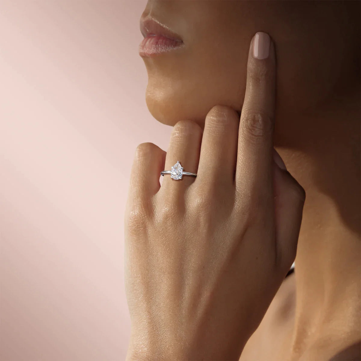 1.33 CT Pear Moissanite Diamond Hidden Halo Engagement Ring