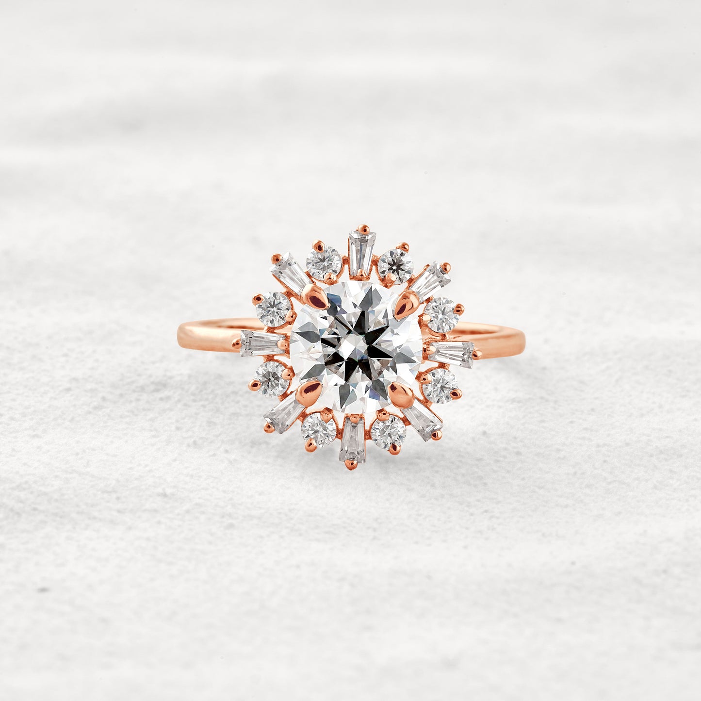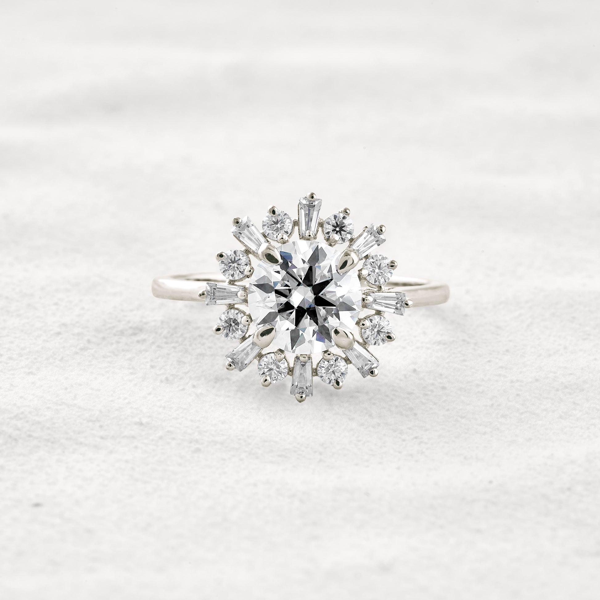 1.35 CT Round Cut Halo Moissanite Diamond Engagement Ring