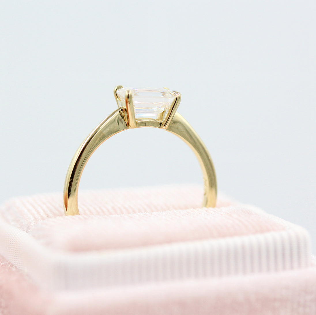 ✦ The Ring Shown in the Picture Holds a Beautiful 1.55 CT Emerald Cut Moissanite.