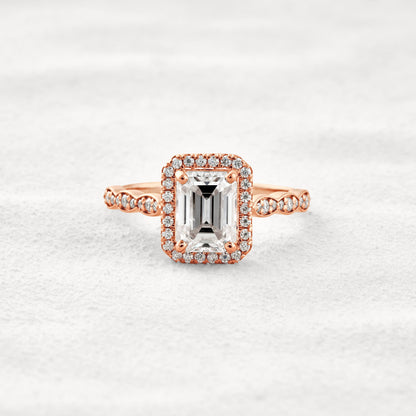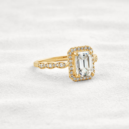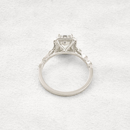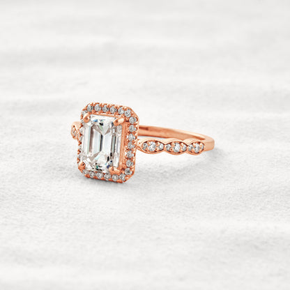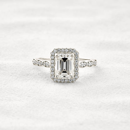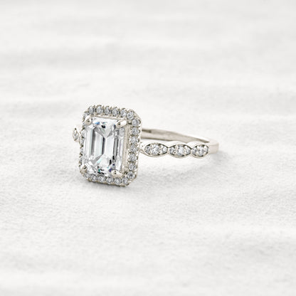 1.6 CT Emerald Cut Halo Pave Moissanite Diamond Engagement Ring In White Gold