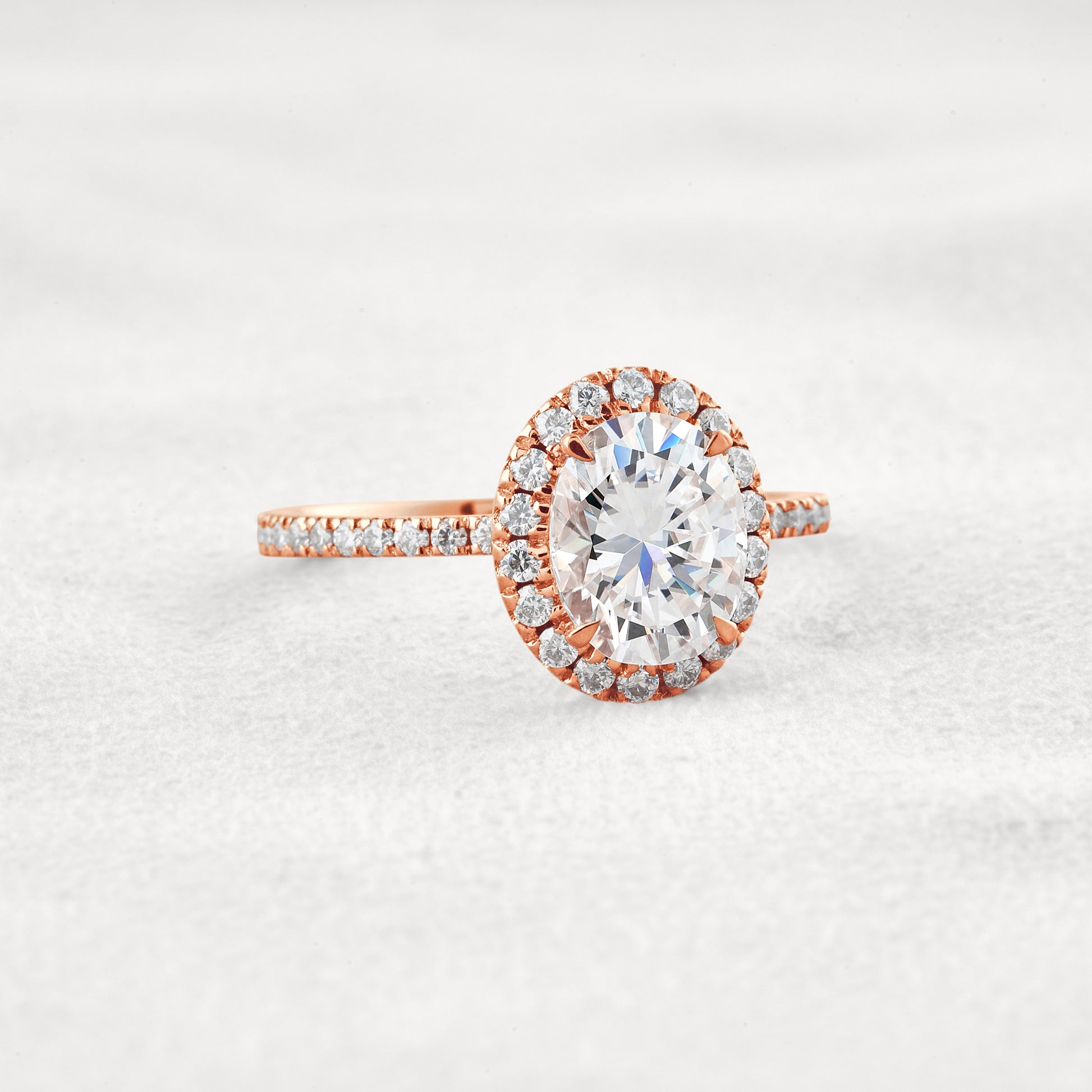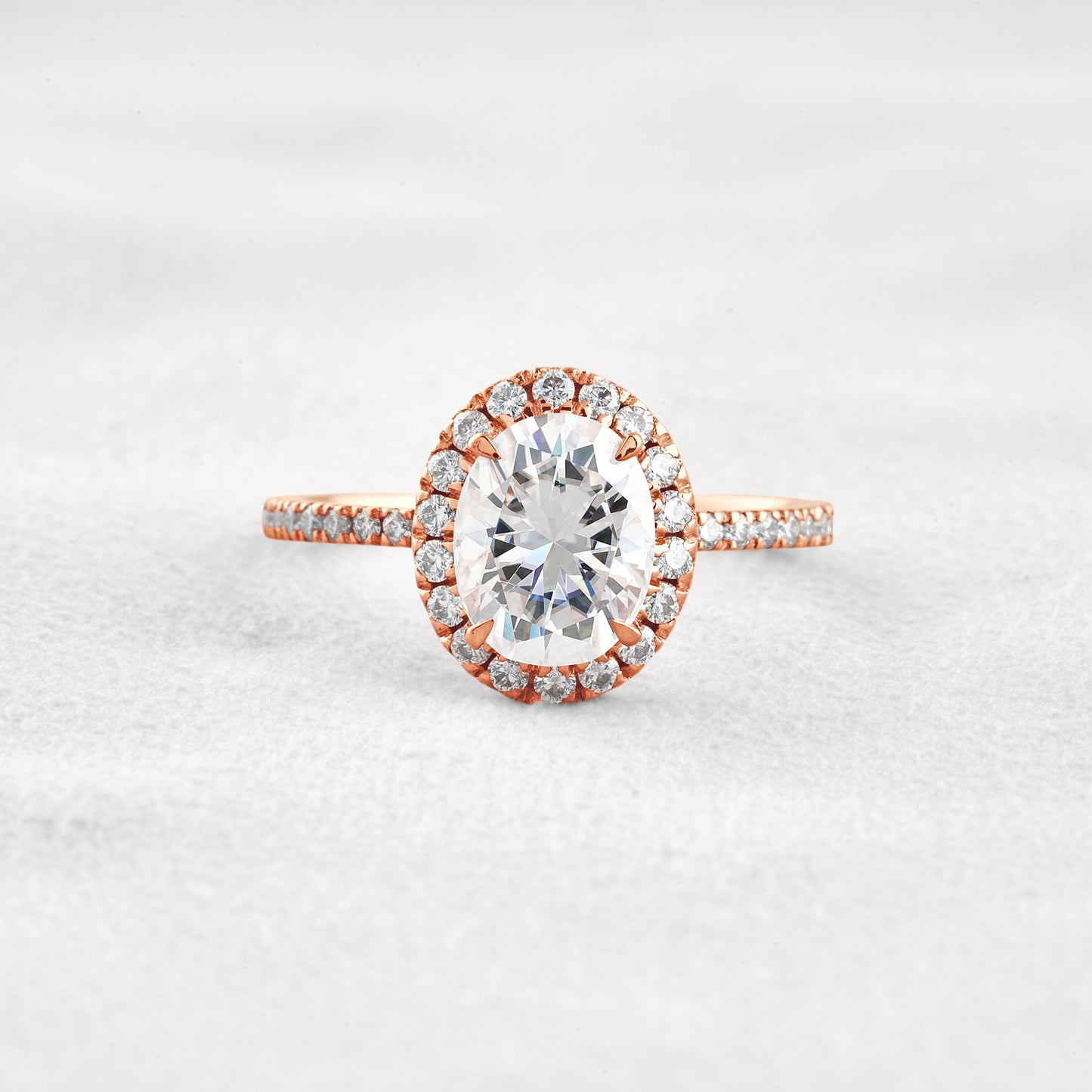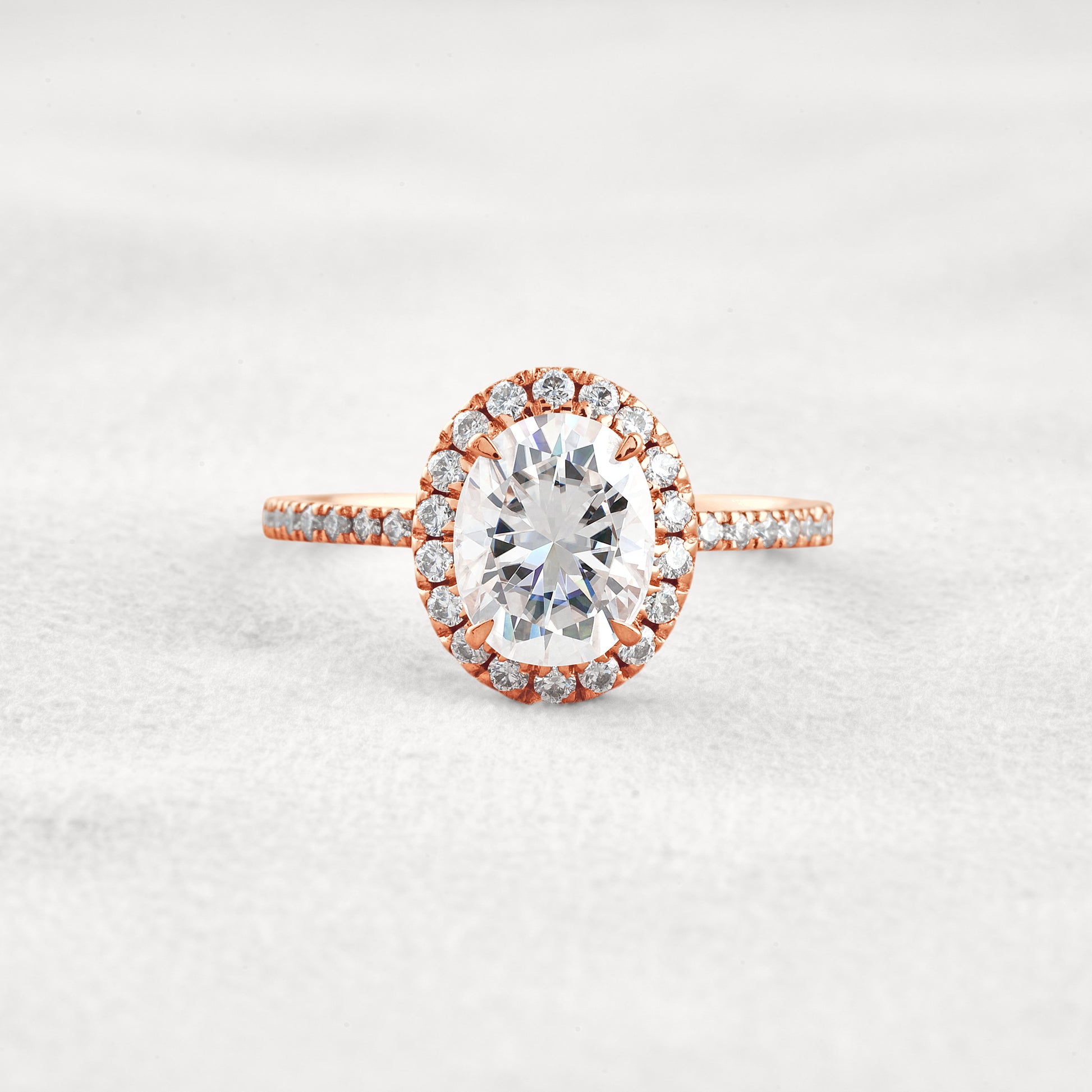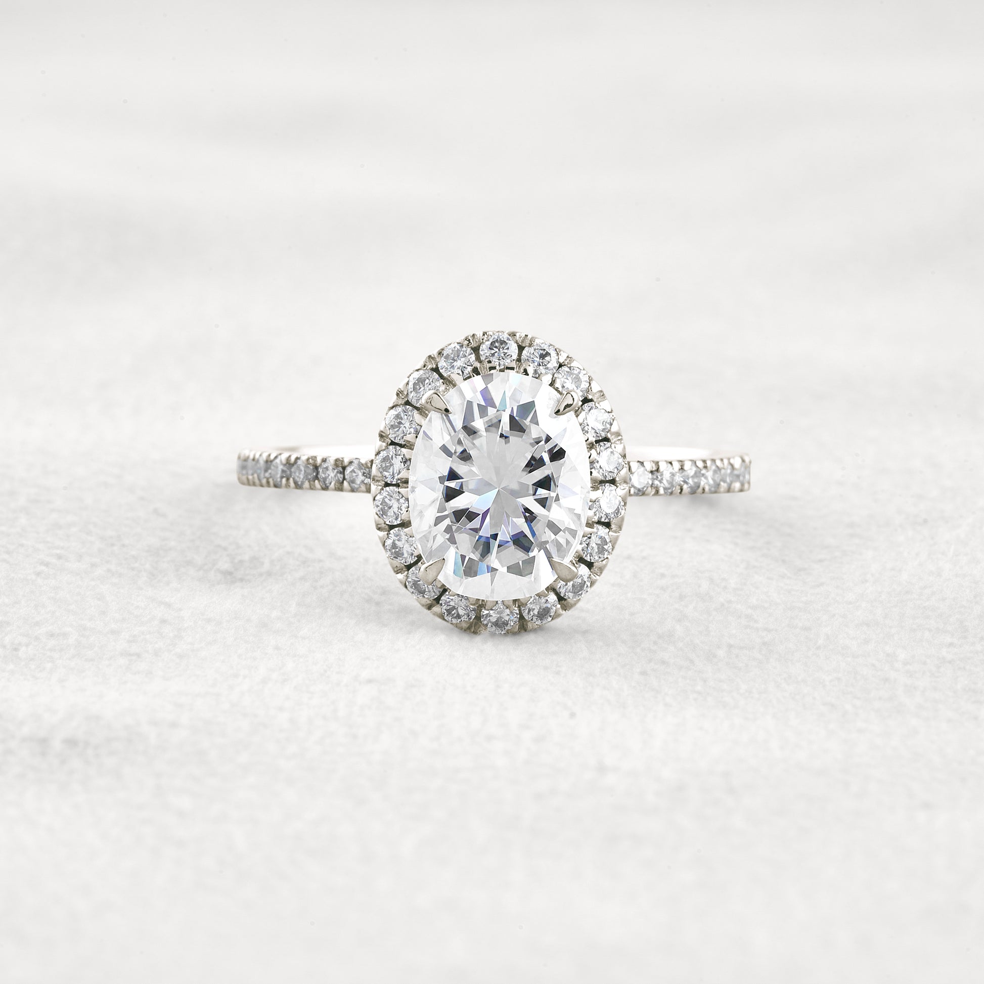 1.91 CT Oval Cut Halo & Pave Moissanite Diamond Engagement Ring