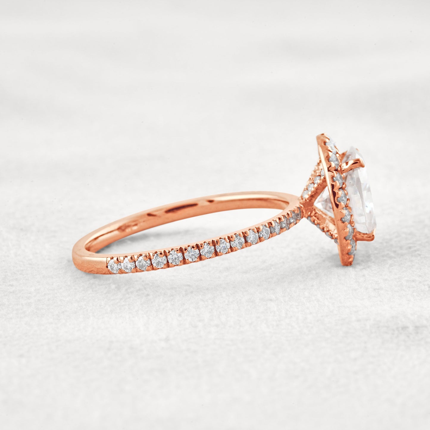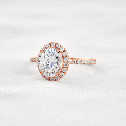 1.91 CT Oval Cut Halo & Pave Moissanite Diamond Engagement Ring In Rose Gold