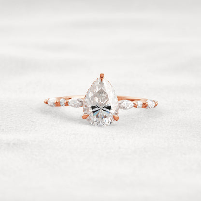1.93 CT Pear Cut Moissanite Diamond Engagement Ring & Wedding Ring In Rose Gold