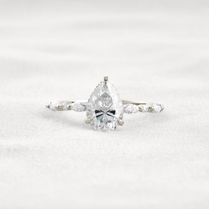 1.93 CT Pear Cut Moissanite Diamond Engagement Ring & Wedding Ring In White Gold