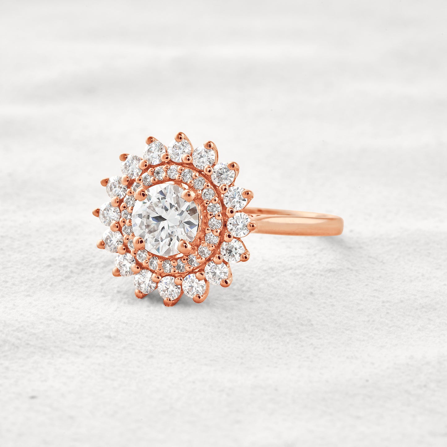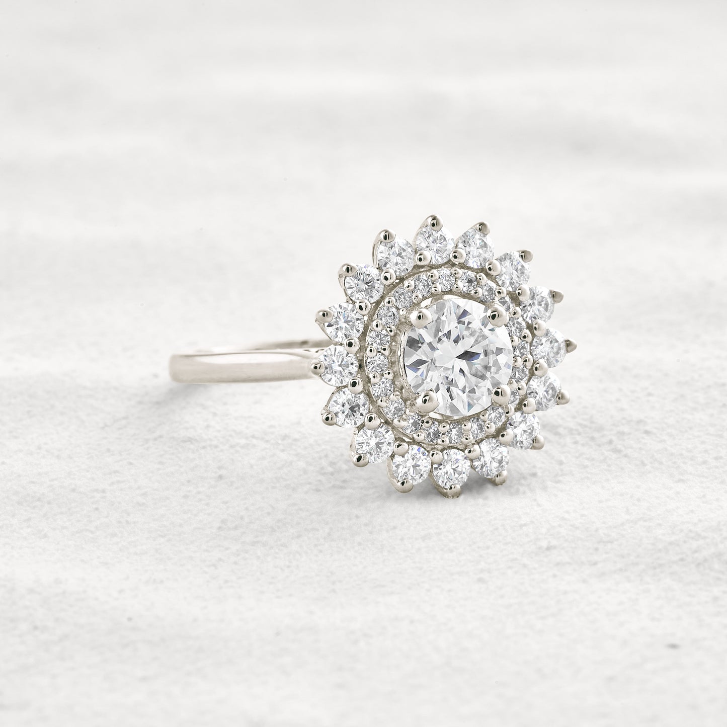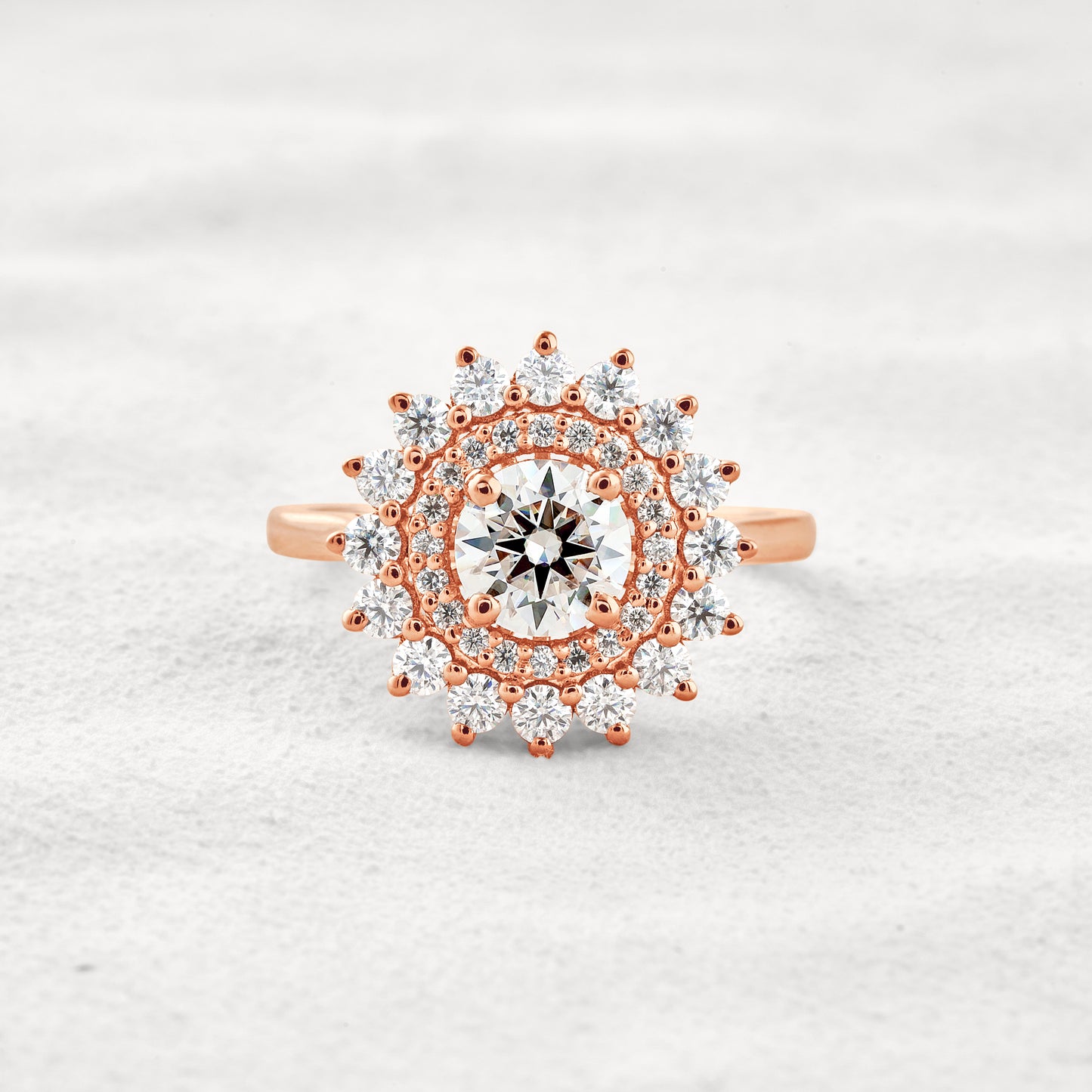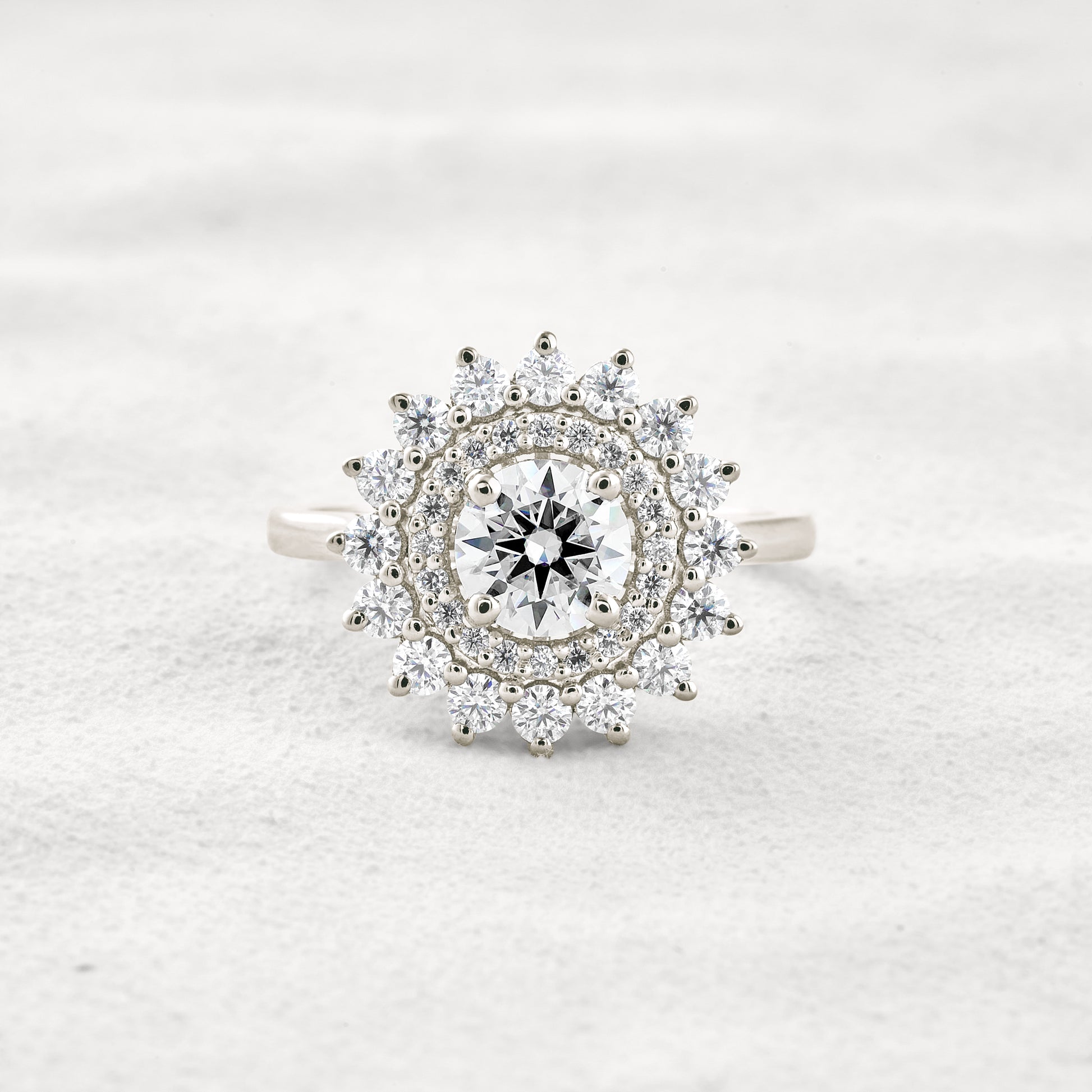 0.5 CT Round Cut Double Halo Moissanite Diamond Engagement Ring