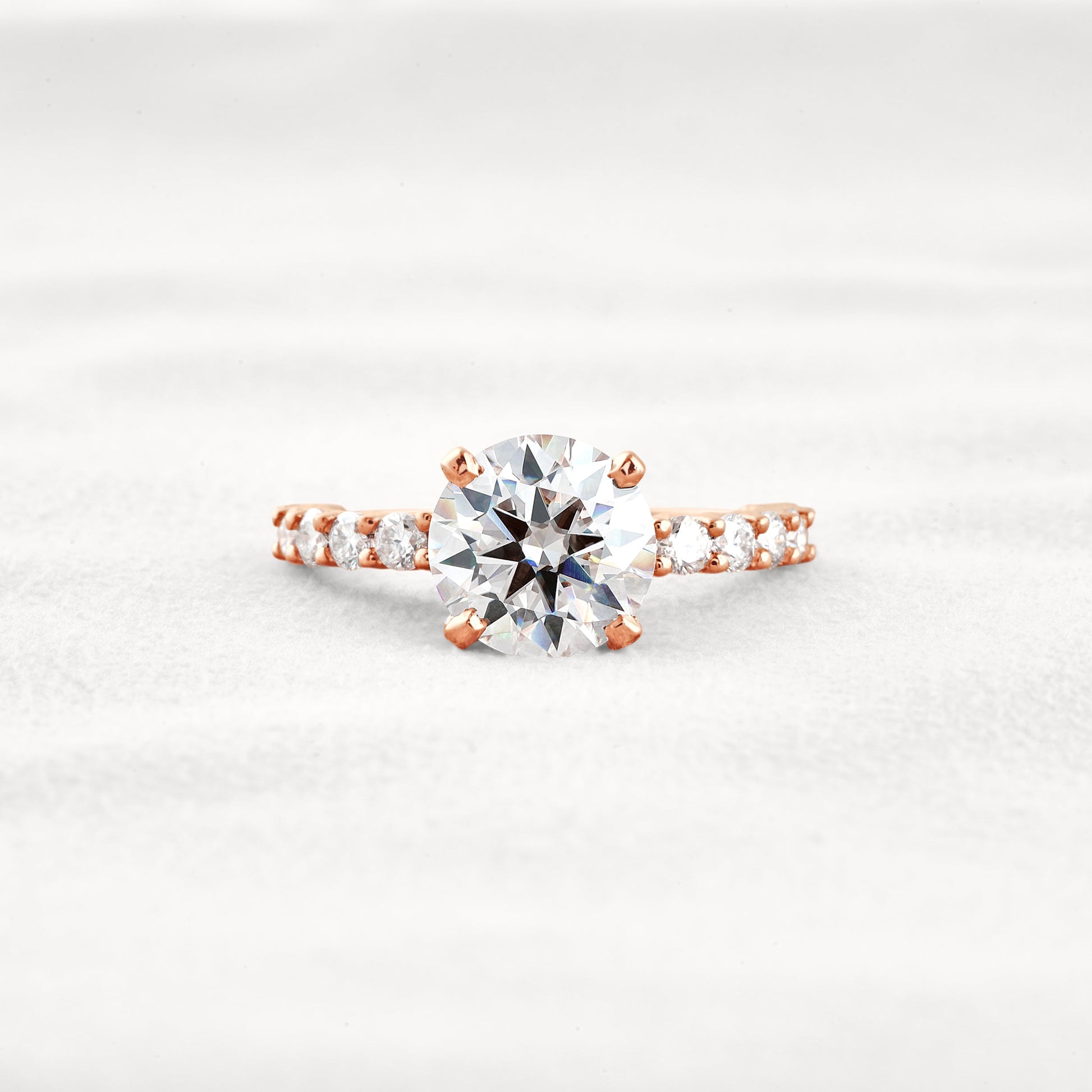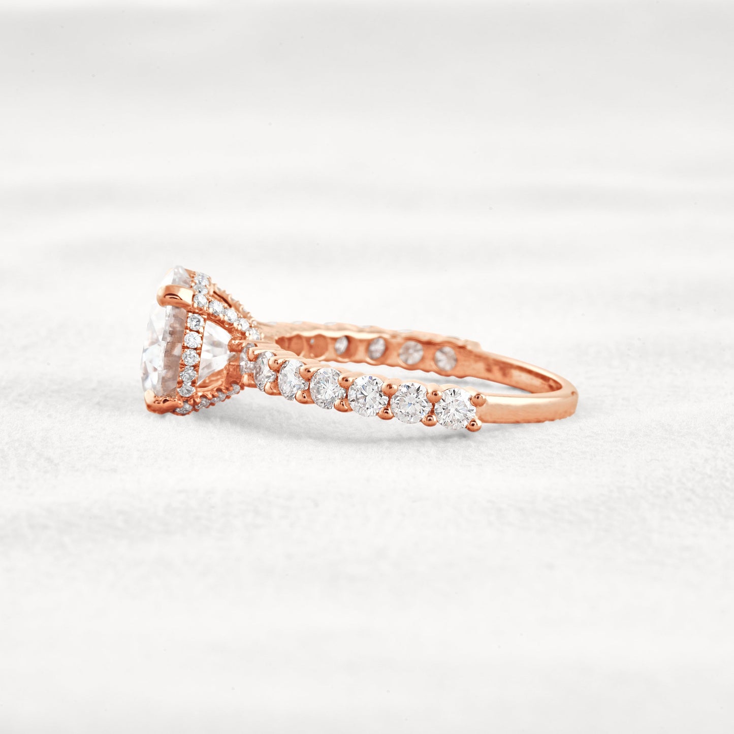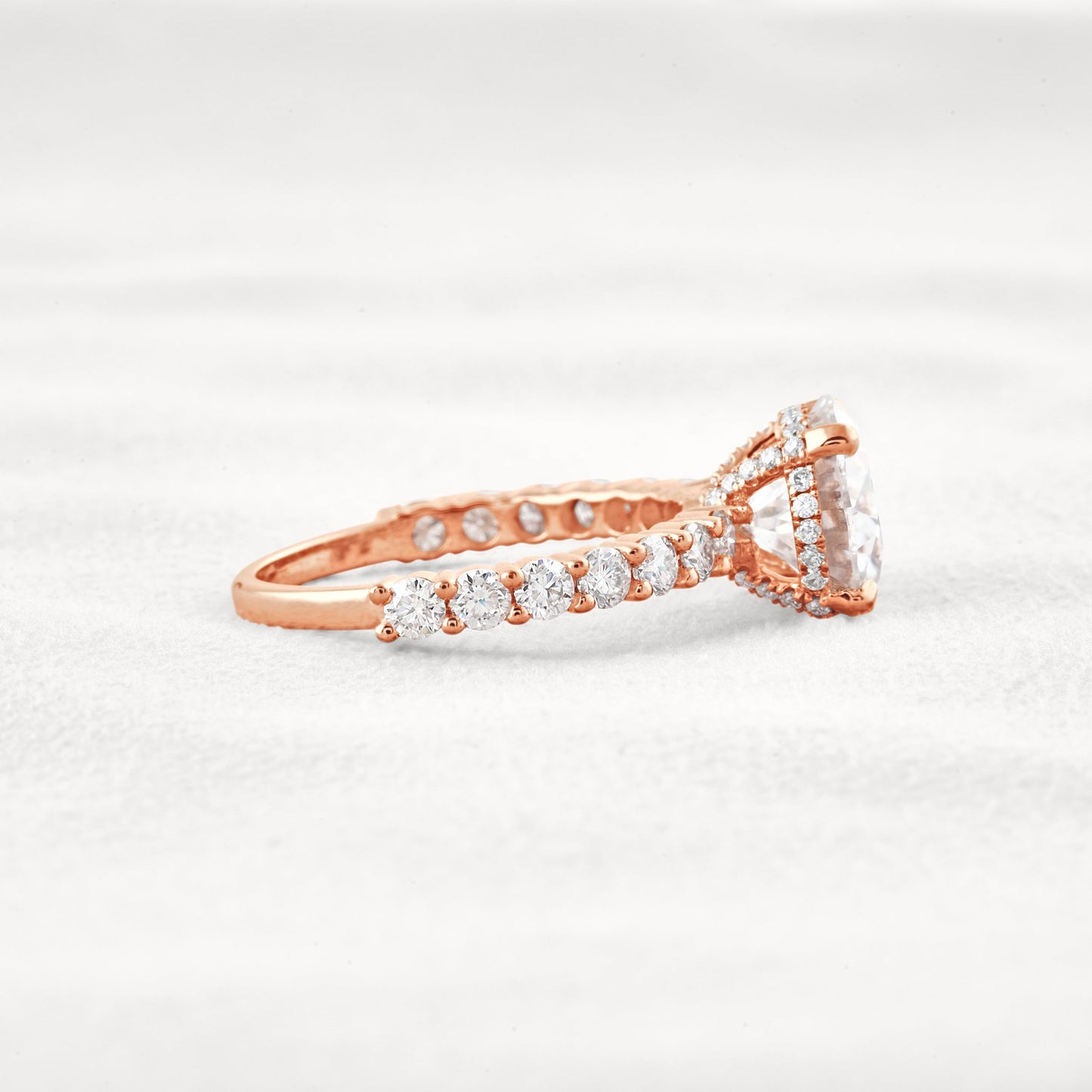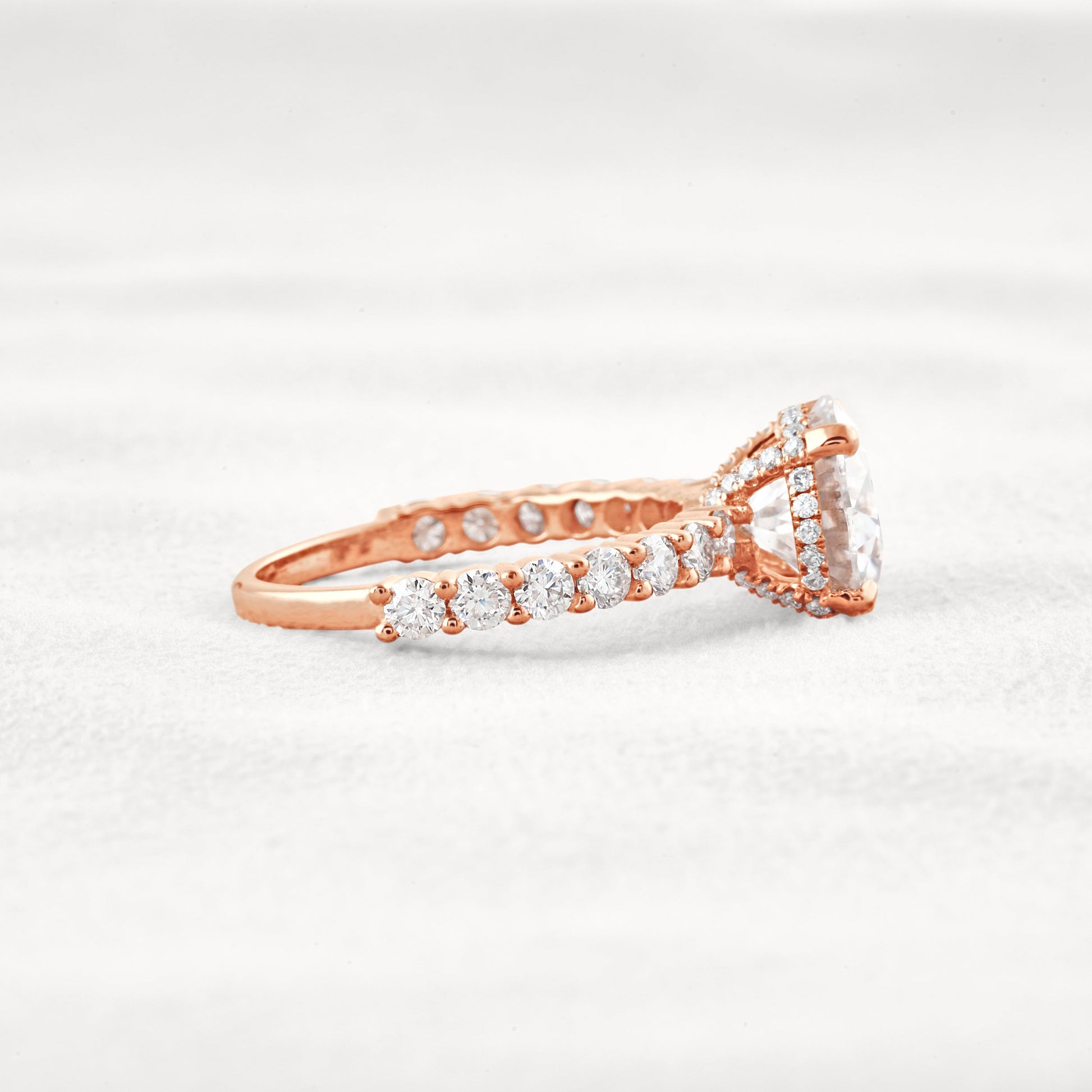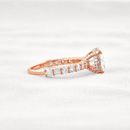 2.75 CT Round Cut Pave Hidden Halo Moissanite Diamond Engagement Ring In Rose Gold