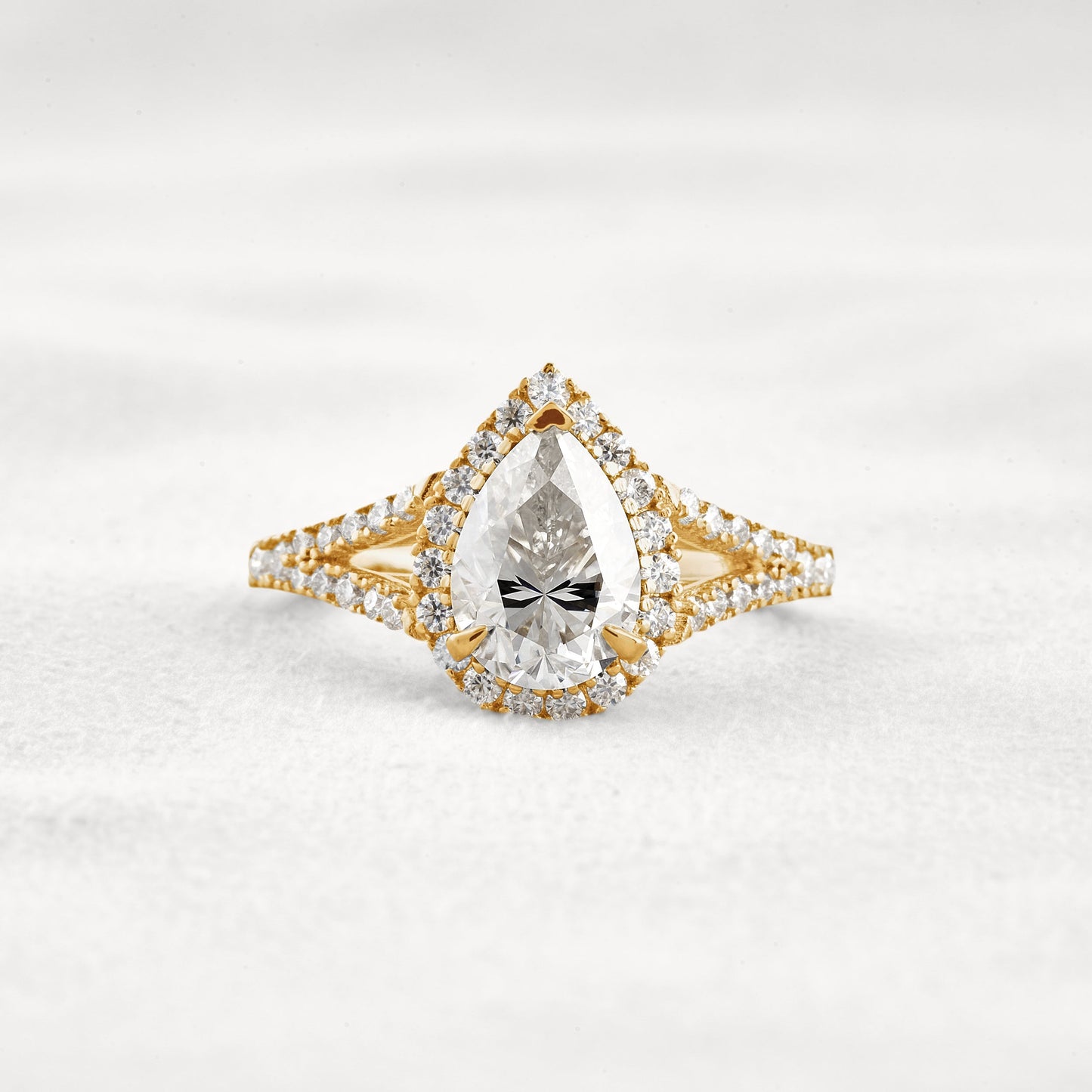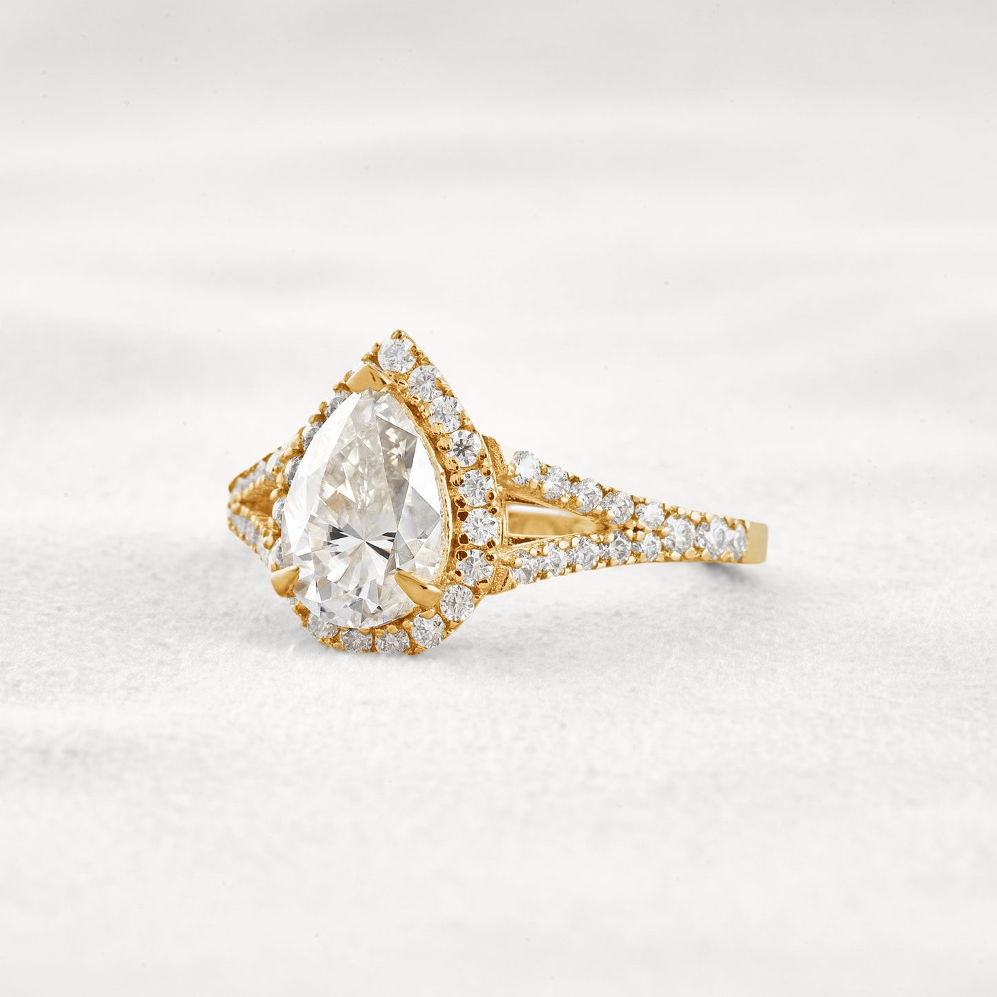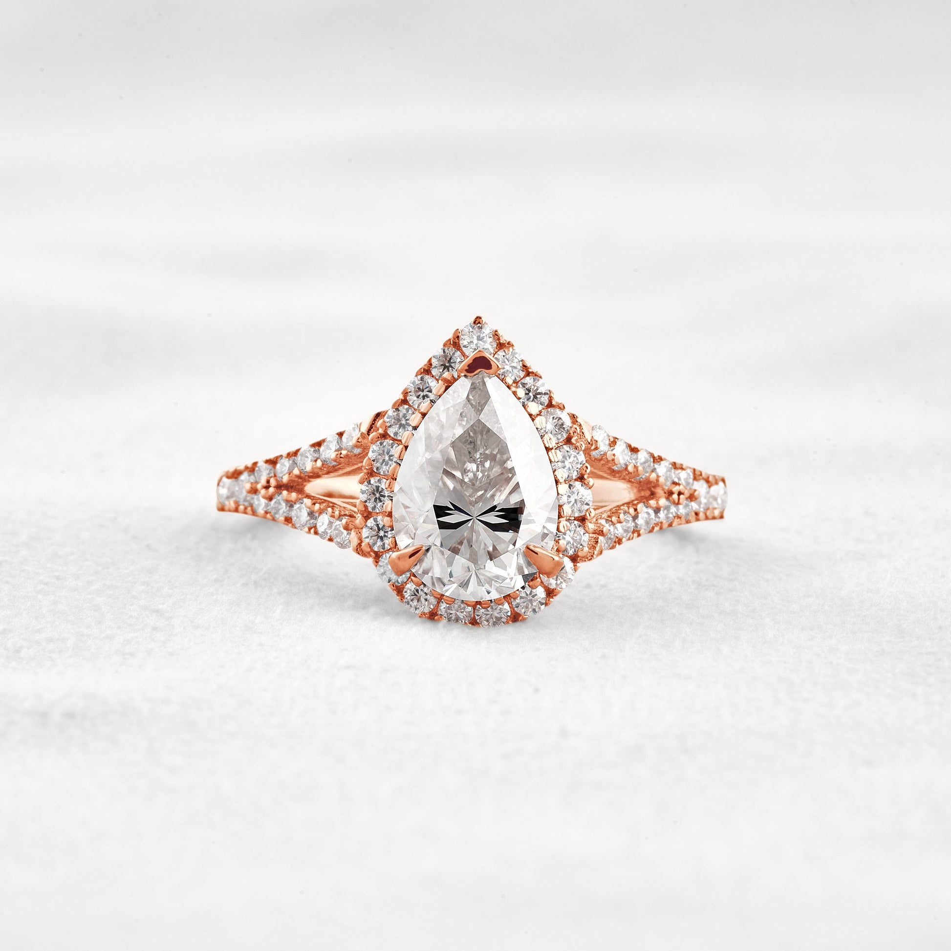 3.1 CT Pear Cut Halo & Pave Moissanite Diamond Engagement Ring In Rose Gold
