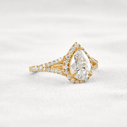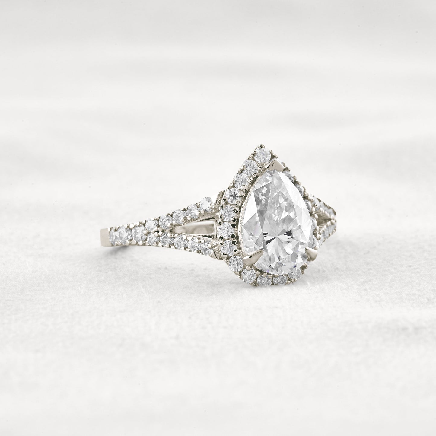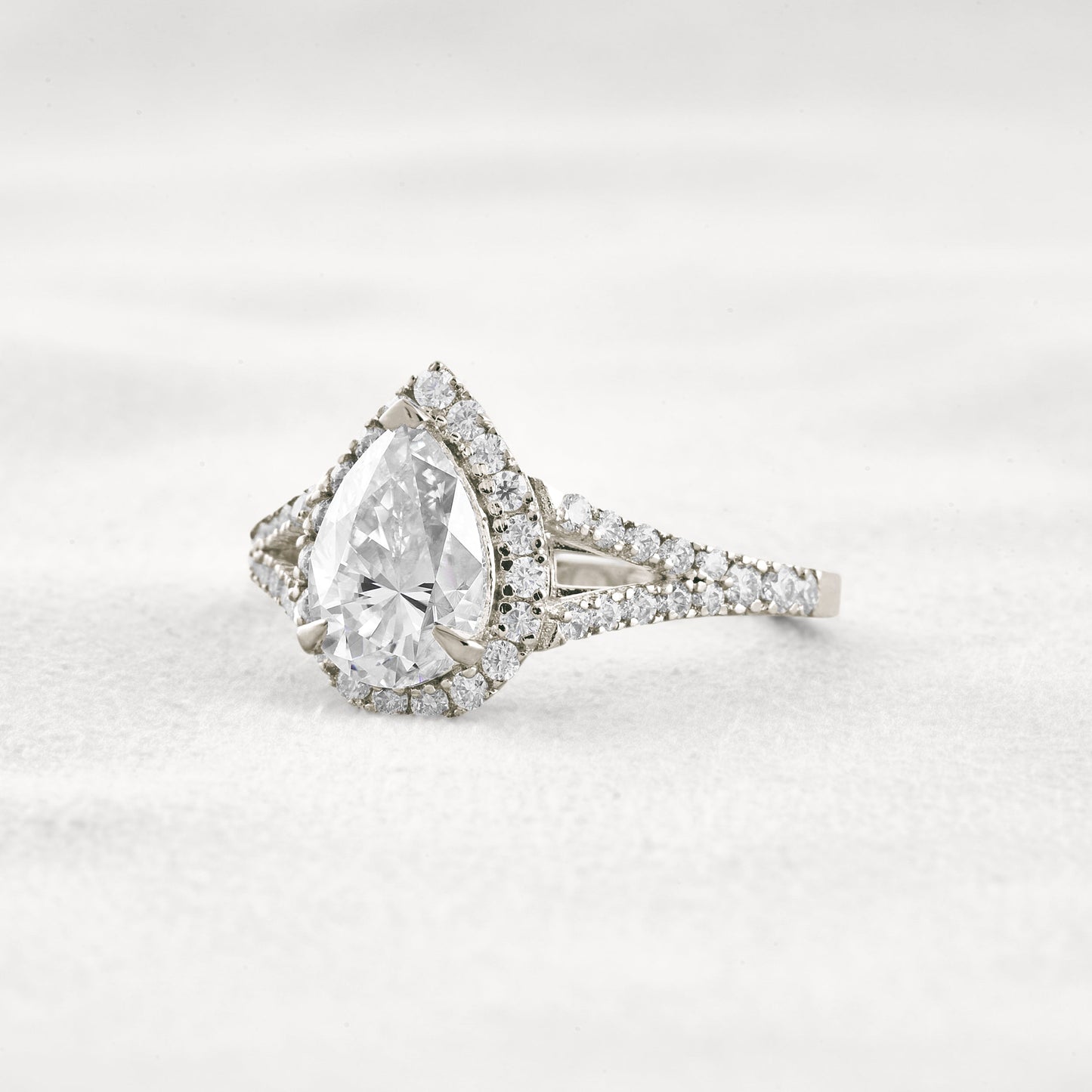 3.1 CT Pear Cut Halo & Pave Moissanite Diamond Engagement Ring In White Gold