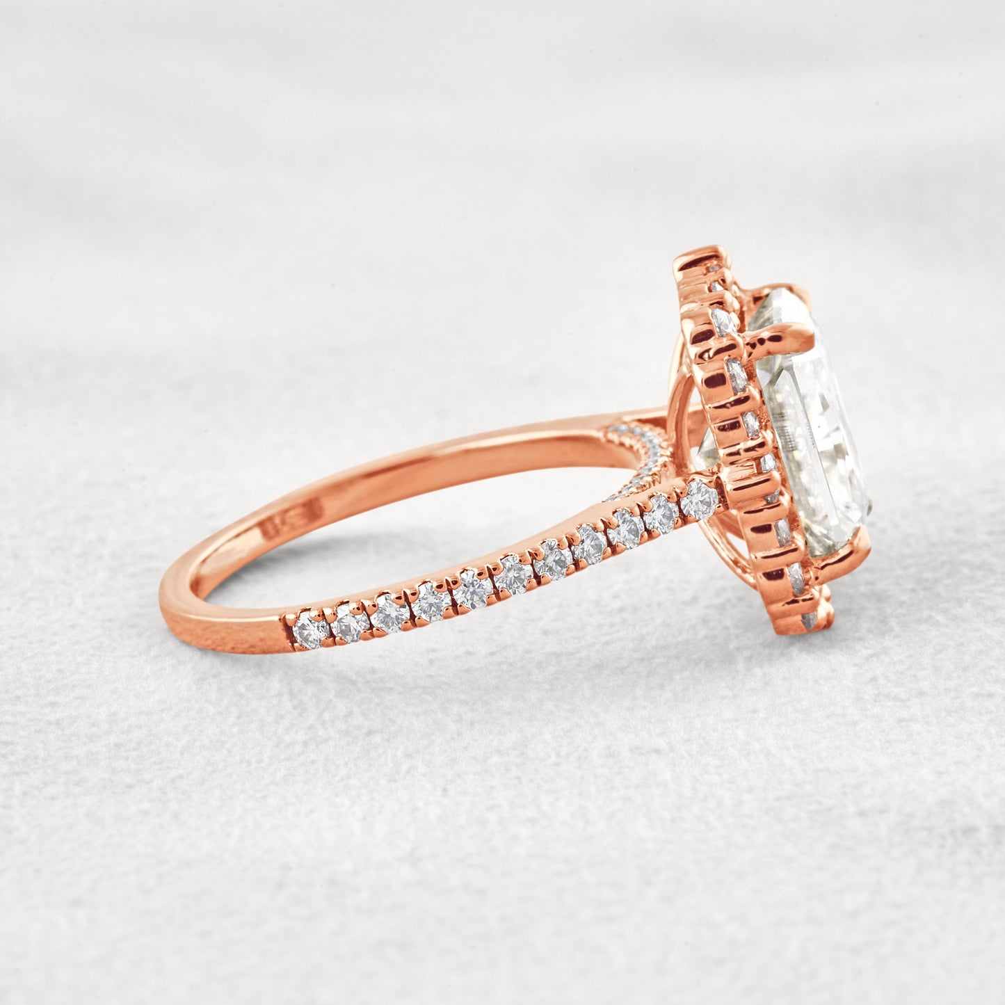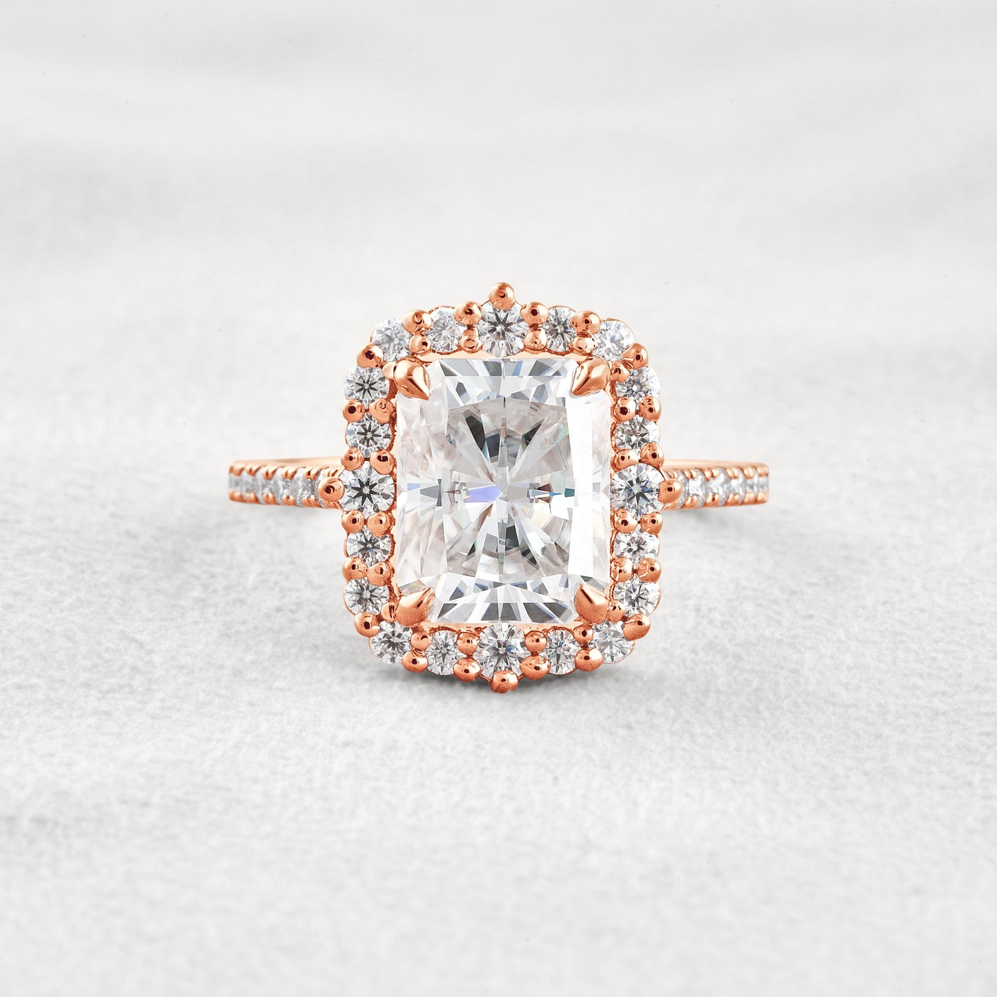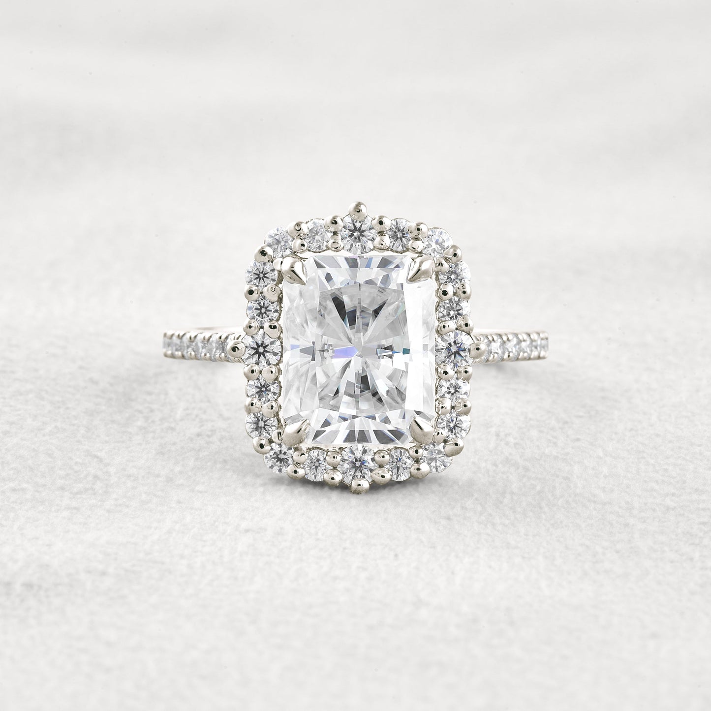 3.24 CT Radiant Cut Halo & Pave Moissanite Diamond Engagement Ring In White Gold