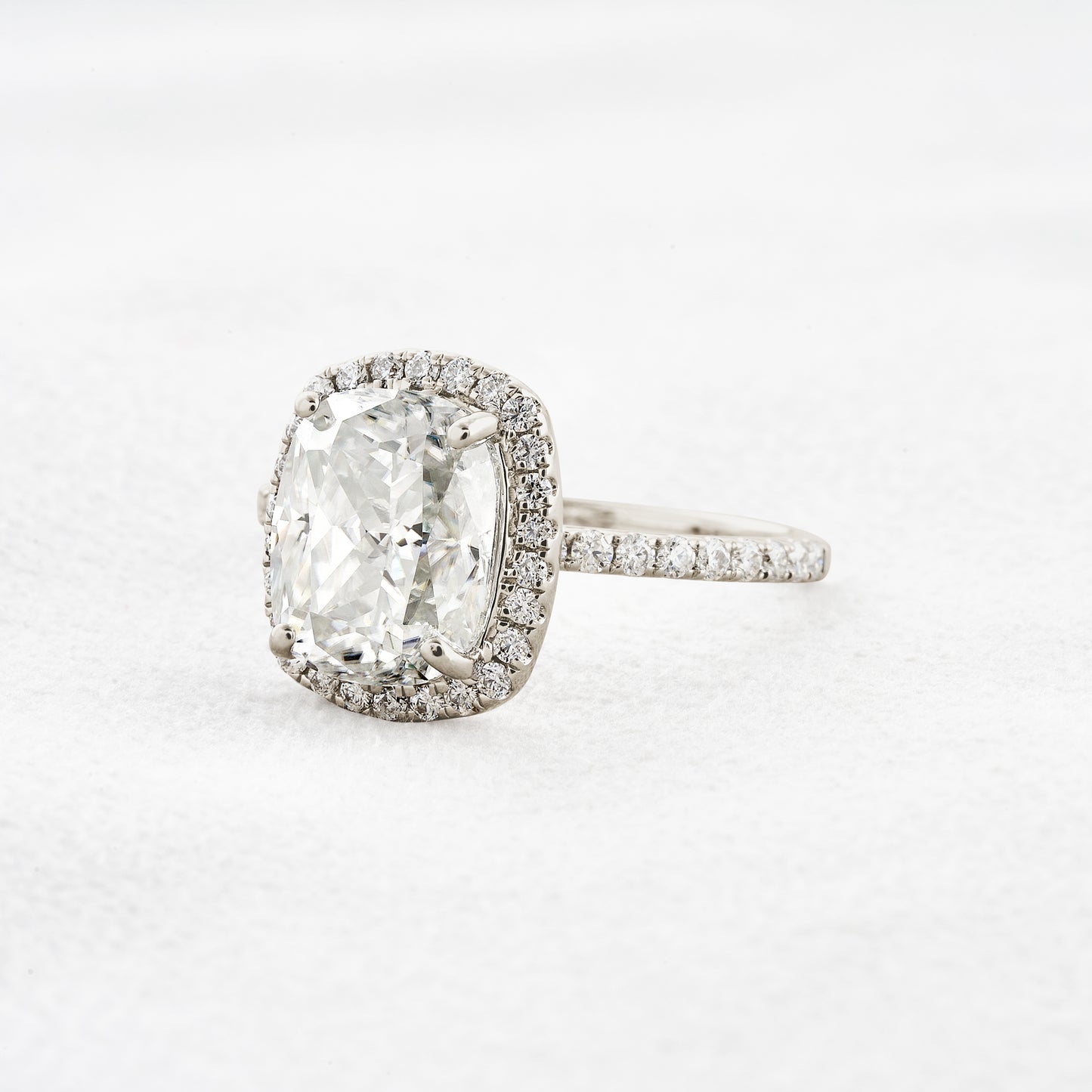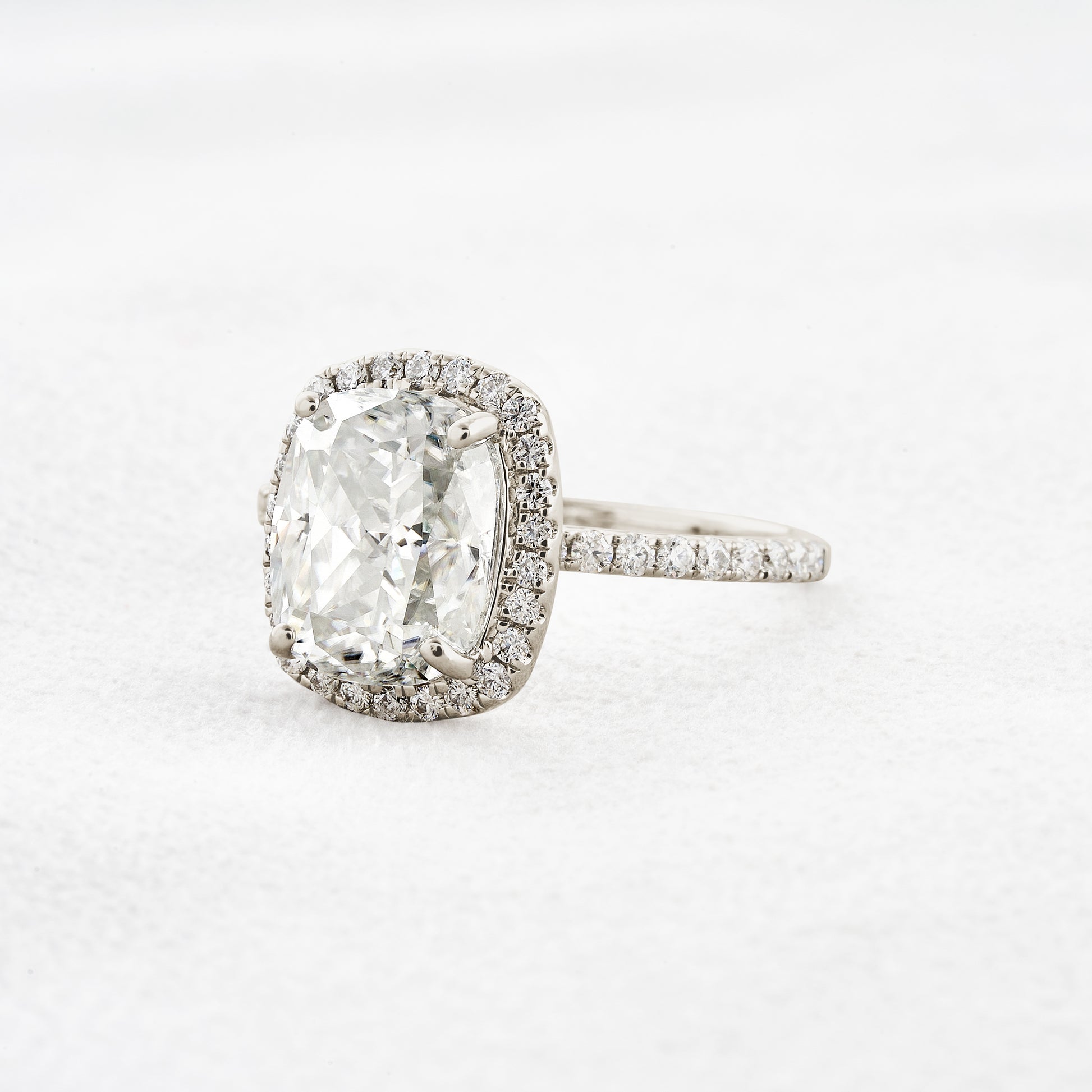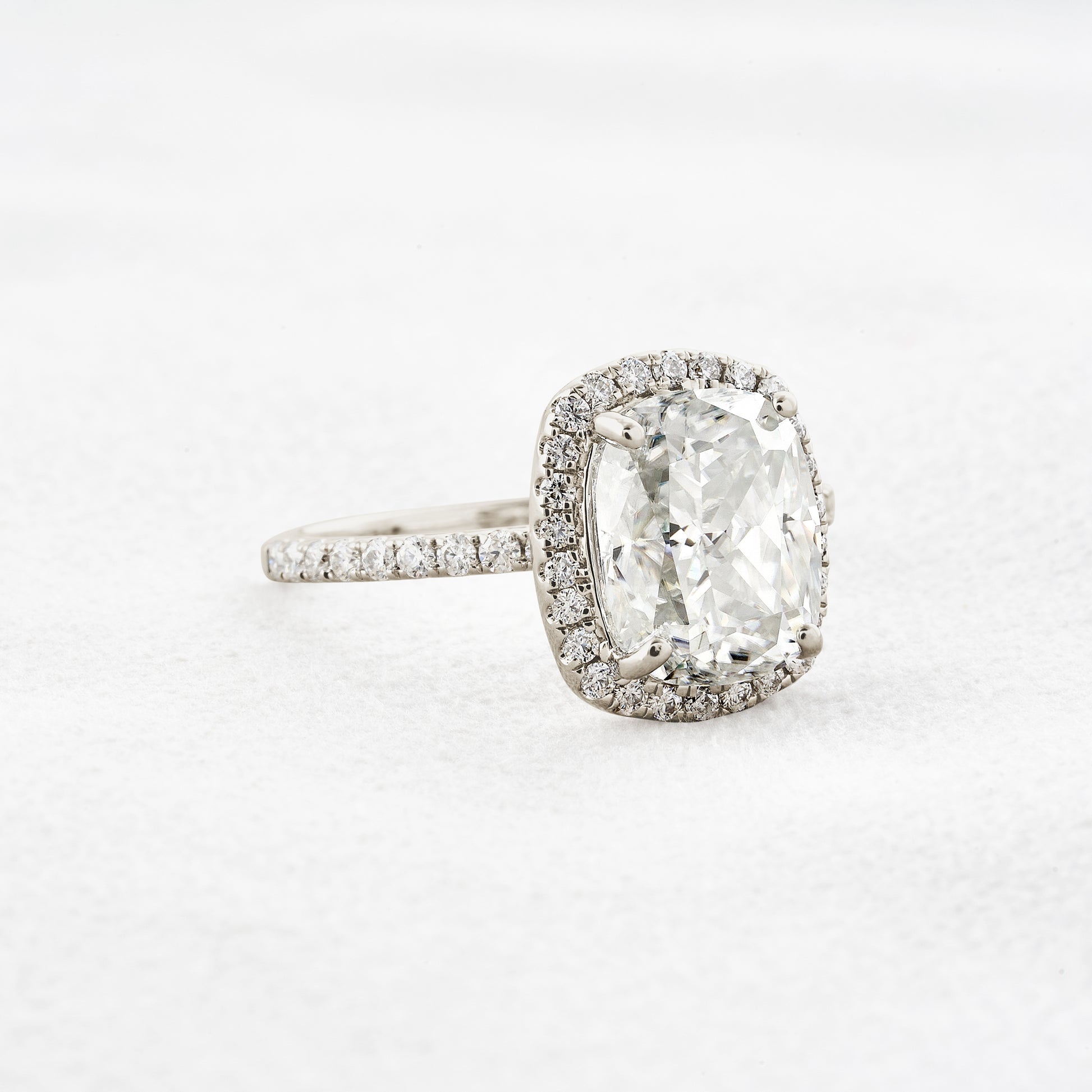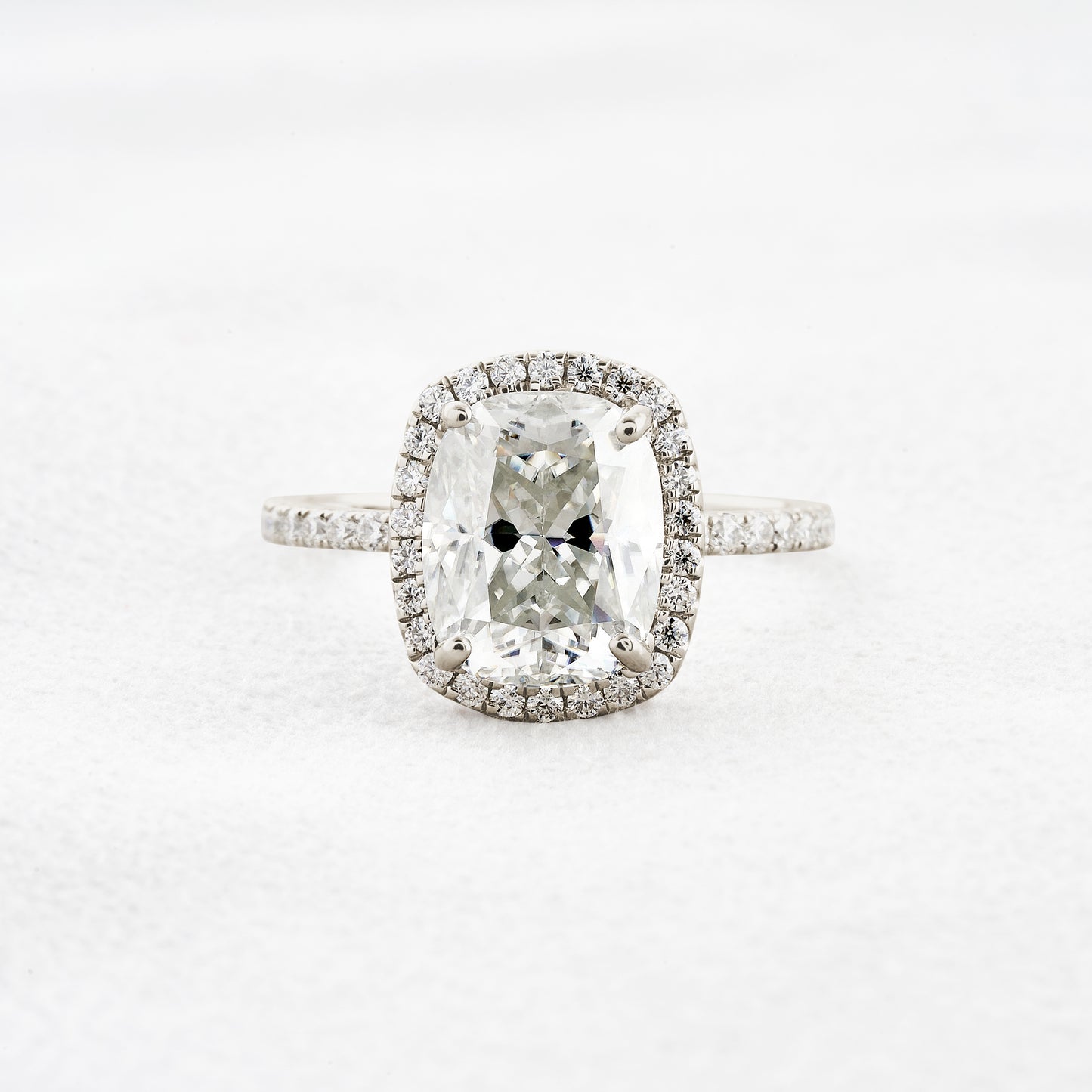 3.55 CT Cushion Cut Halo & Pave Moissanite Engagement Ring