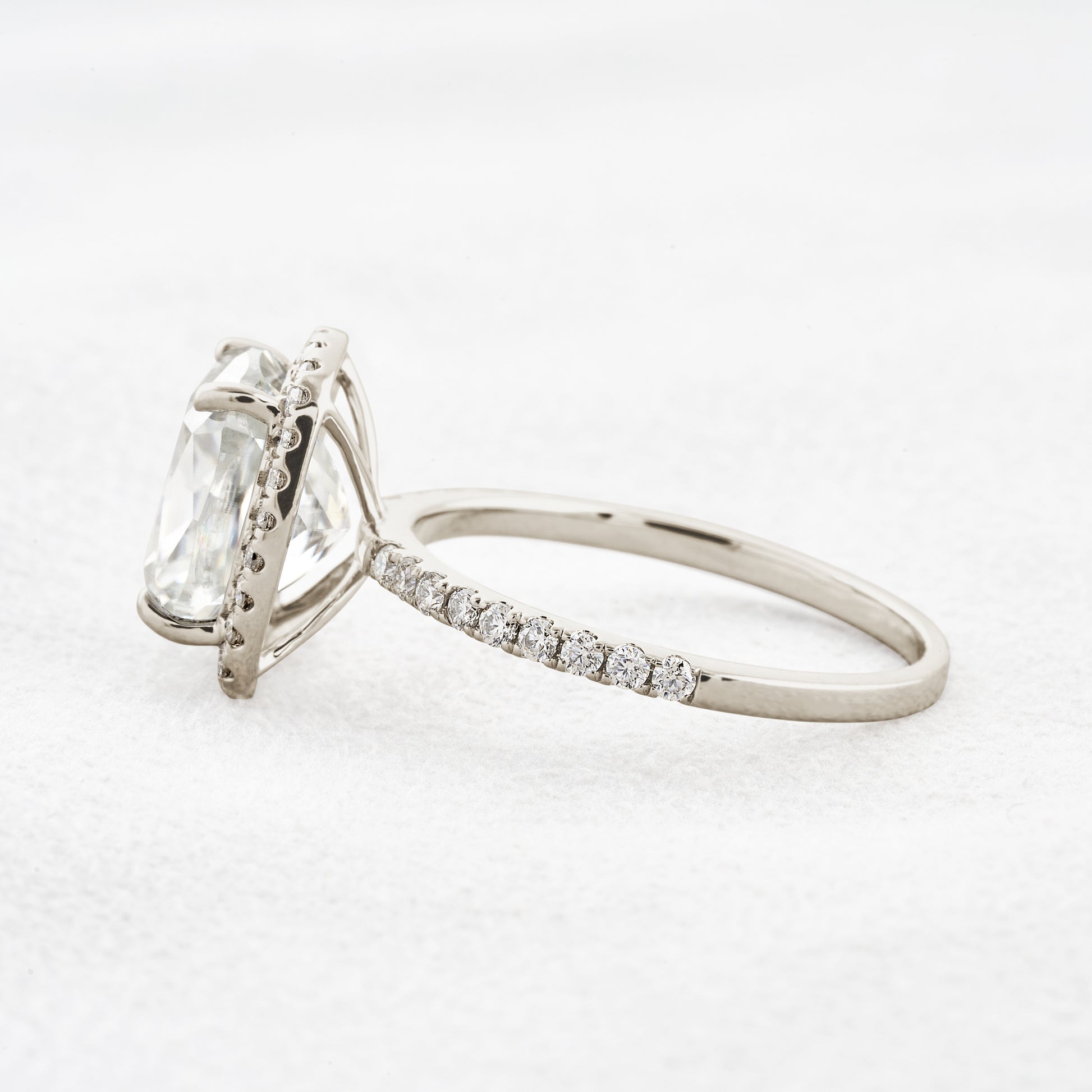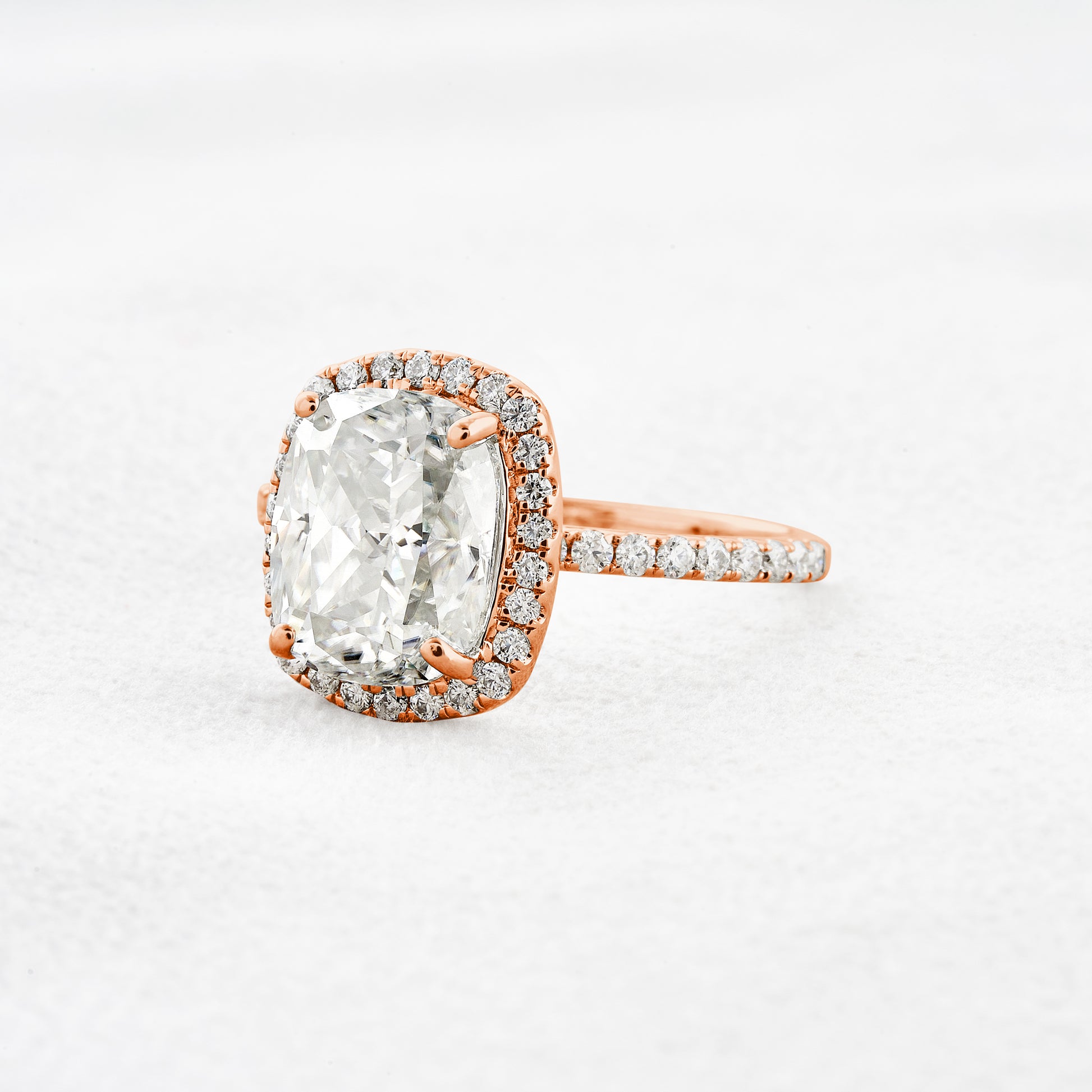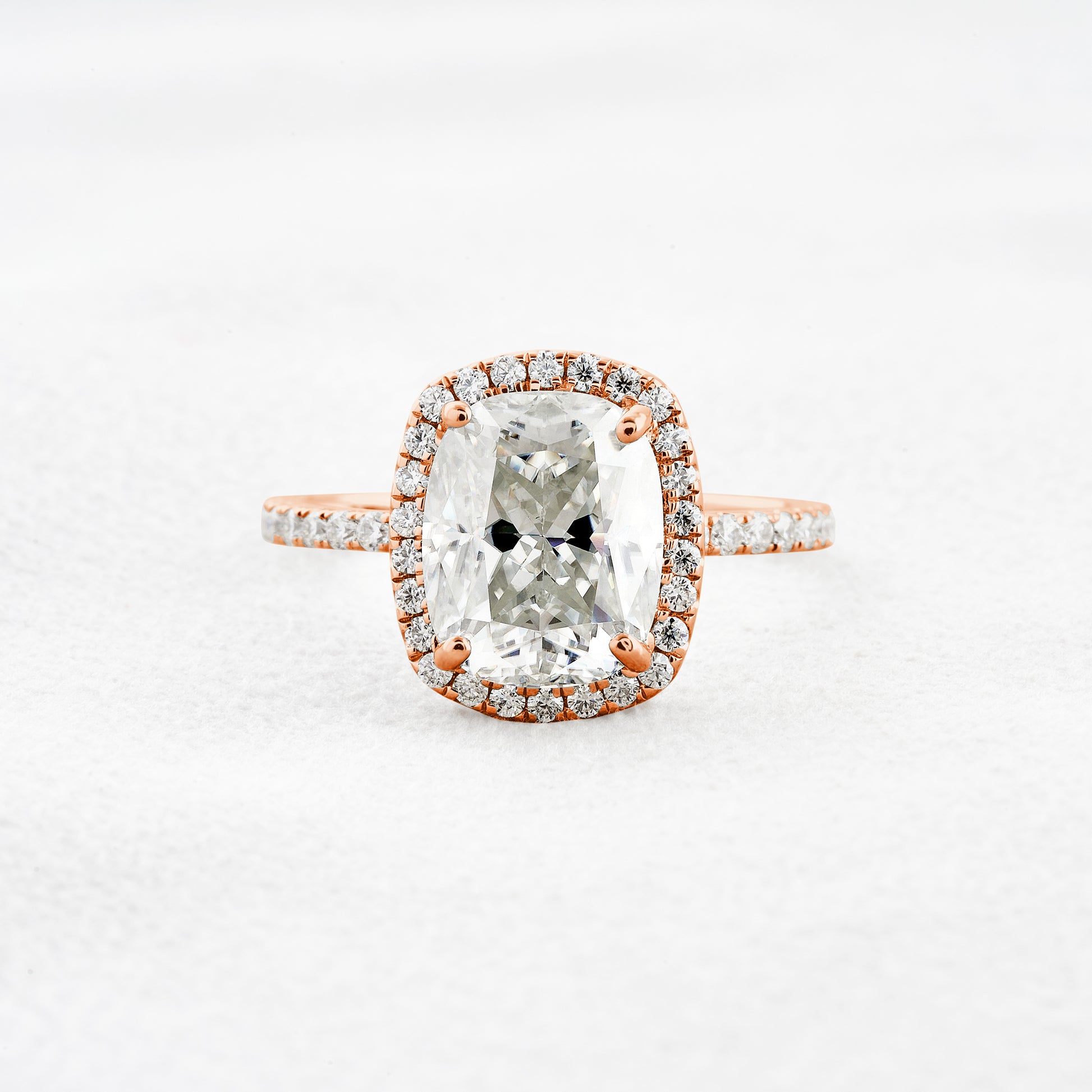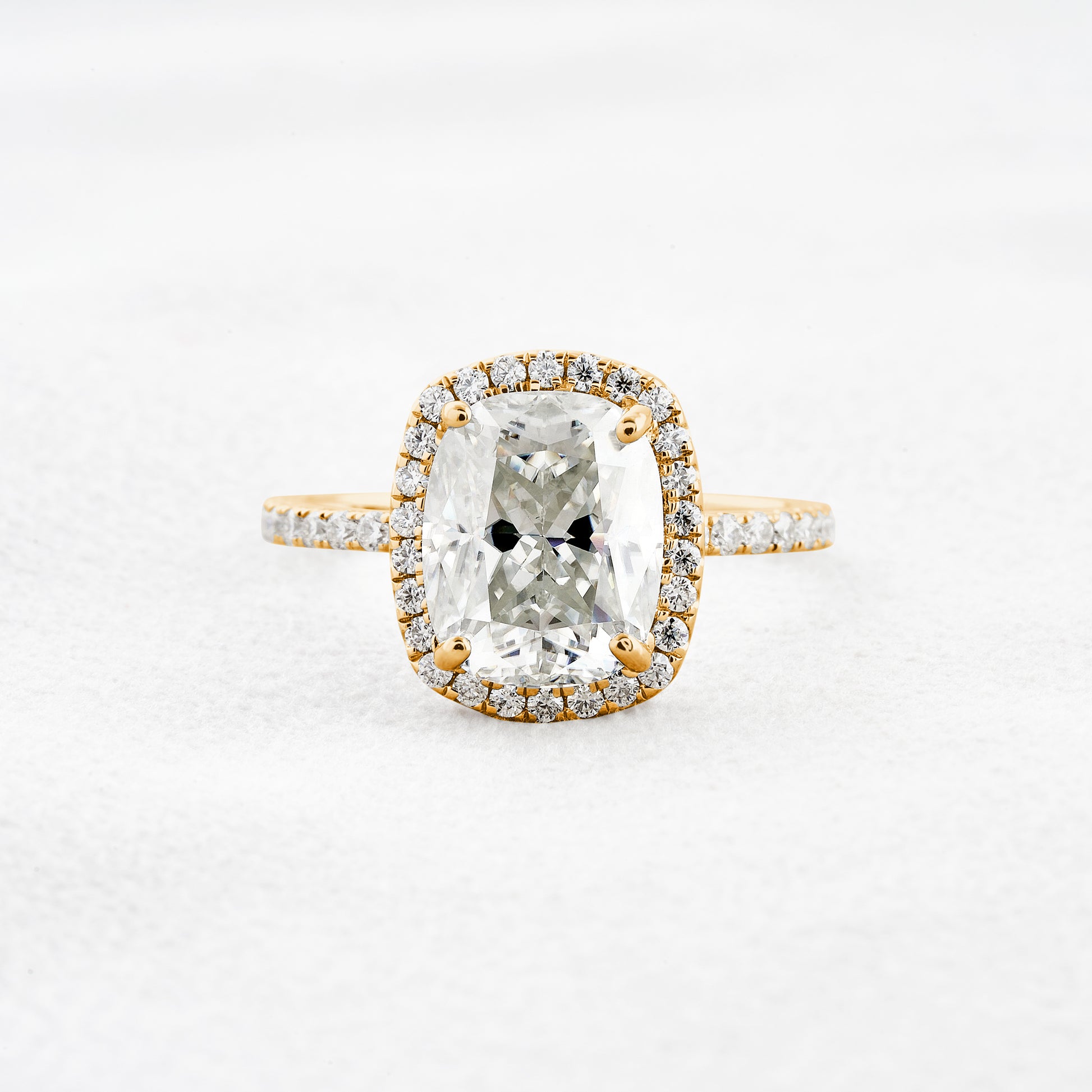 3.55 CT Cushion Cut Halo & Pave Moissanite Engagement Ring