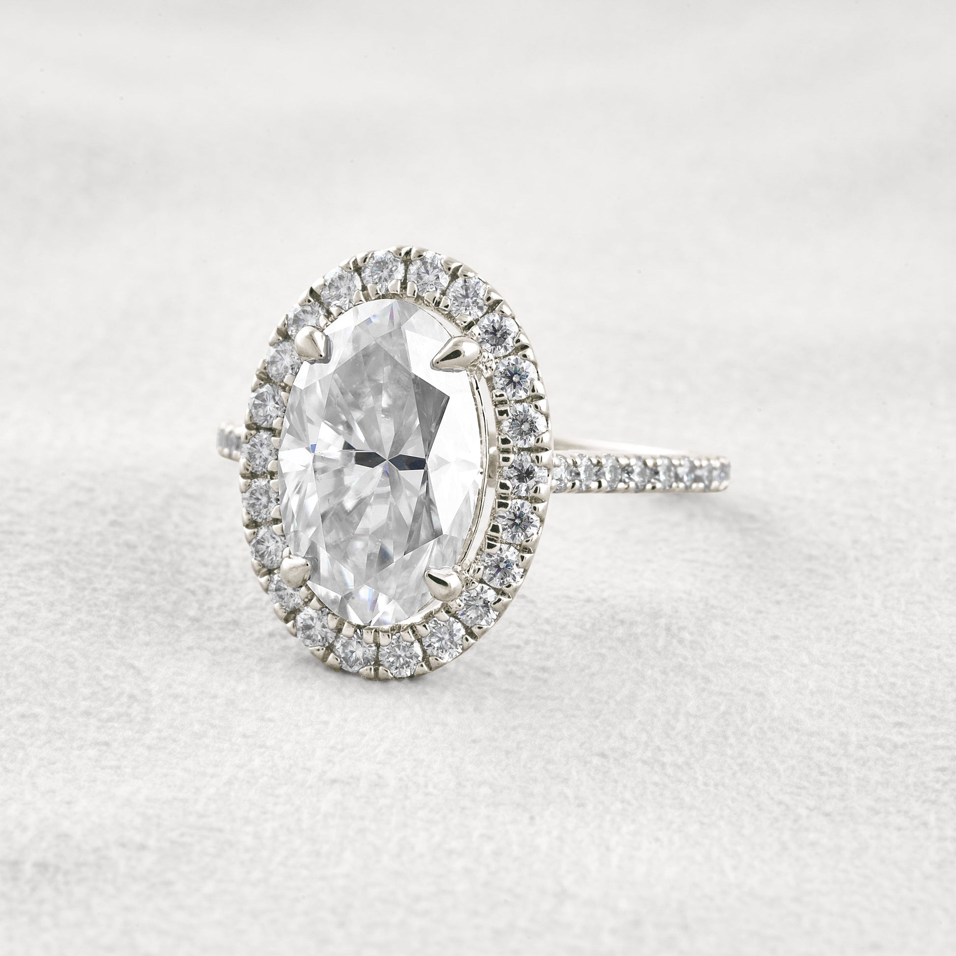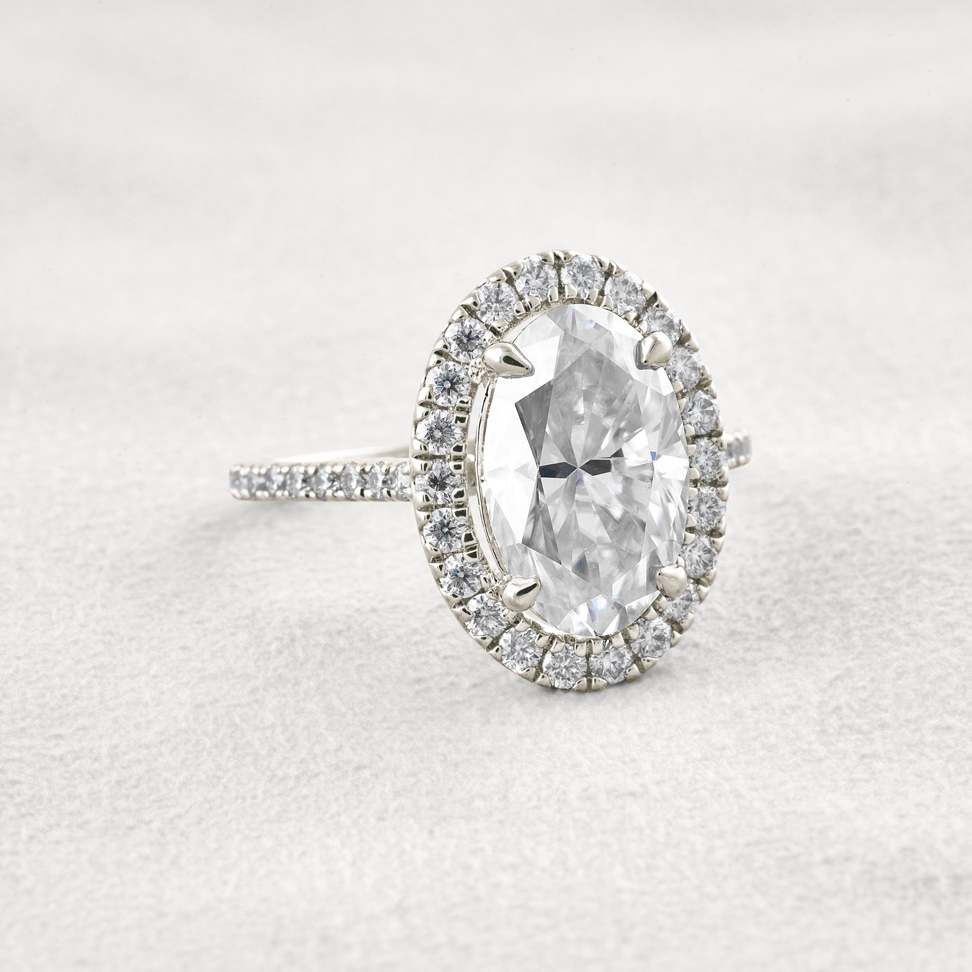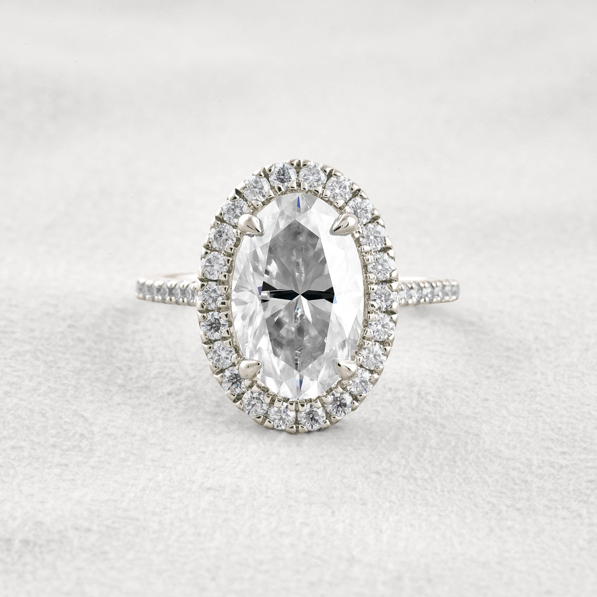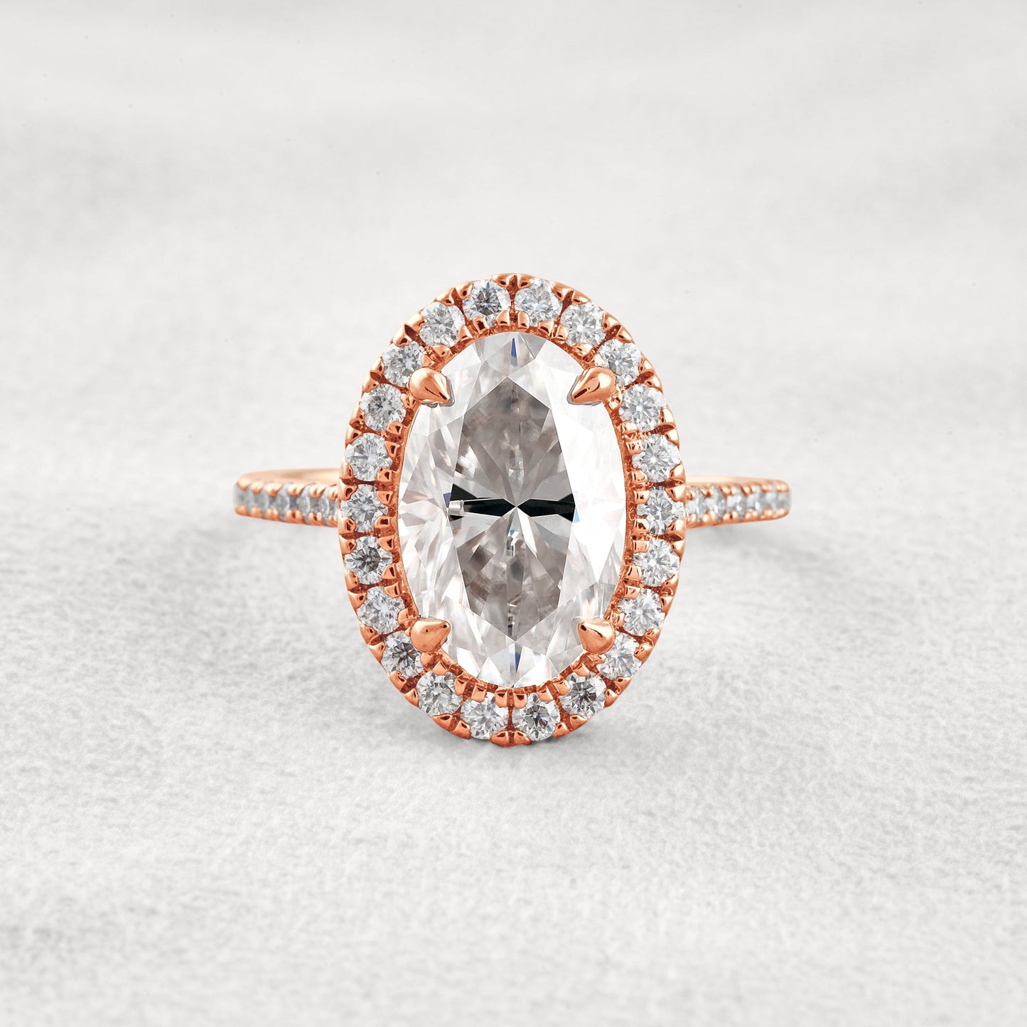 4.1 CT Oval Cut Halo & Pave Moissanite Diamond Engagement Ring In Rose Gold