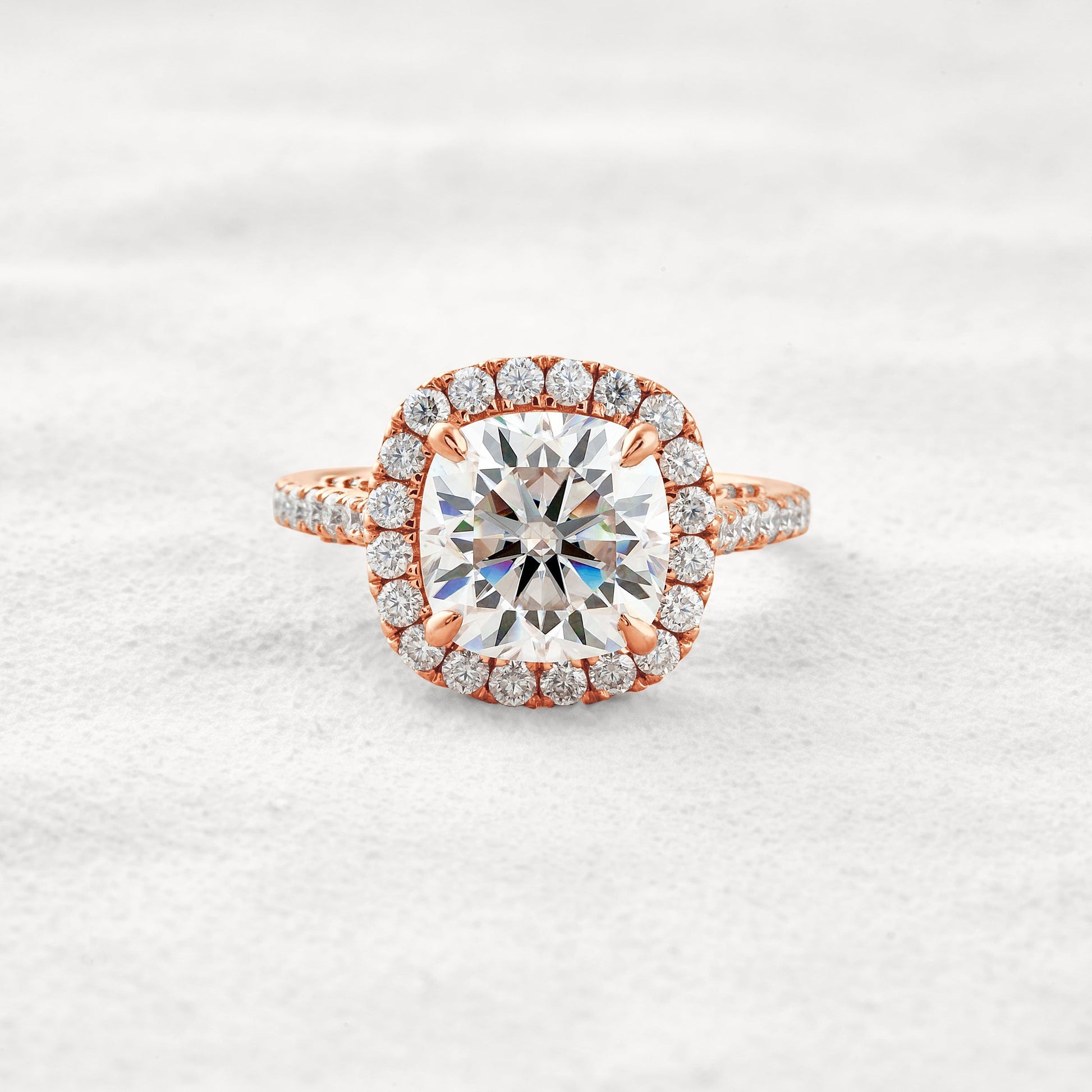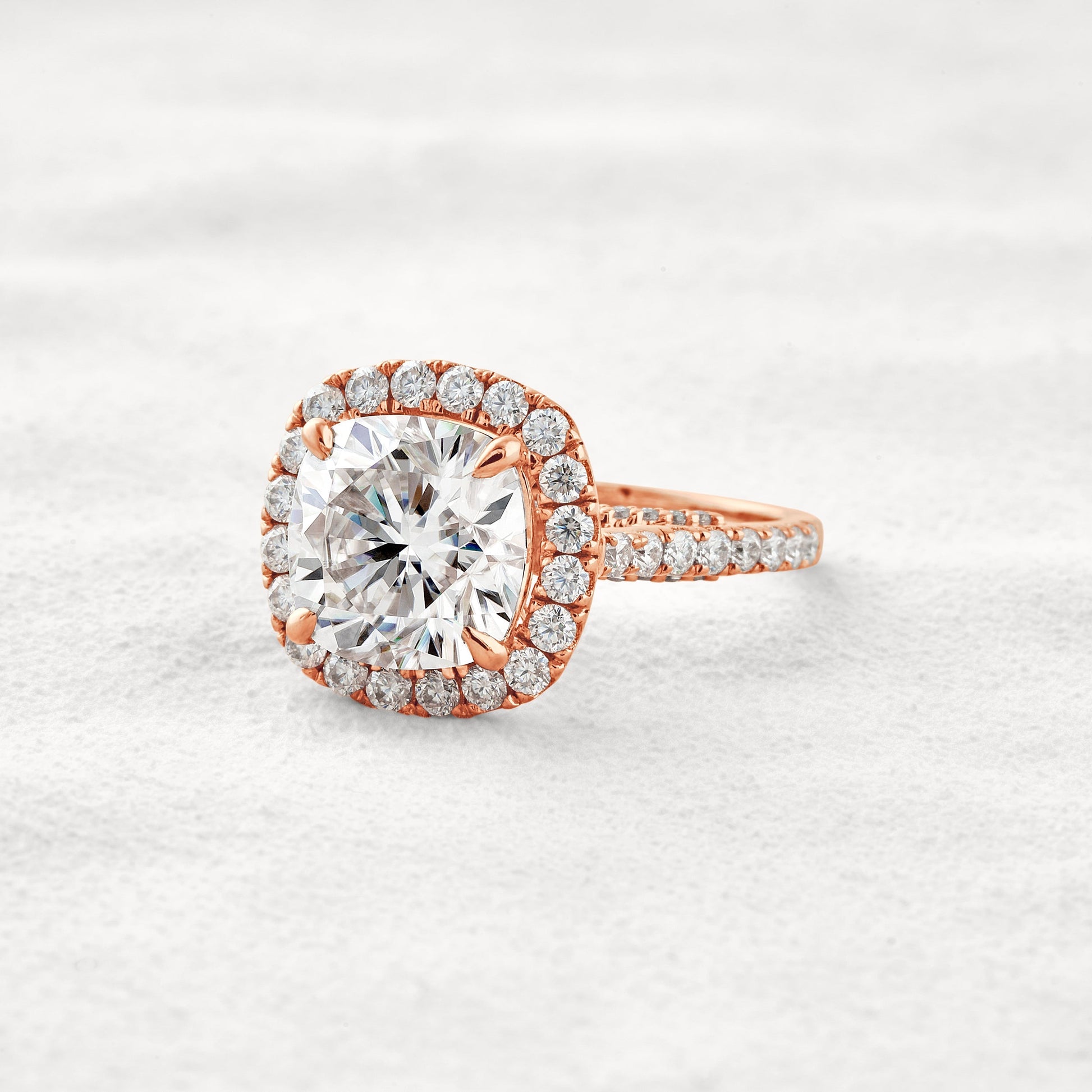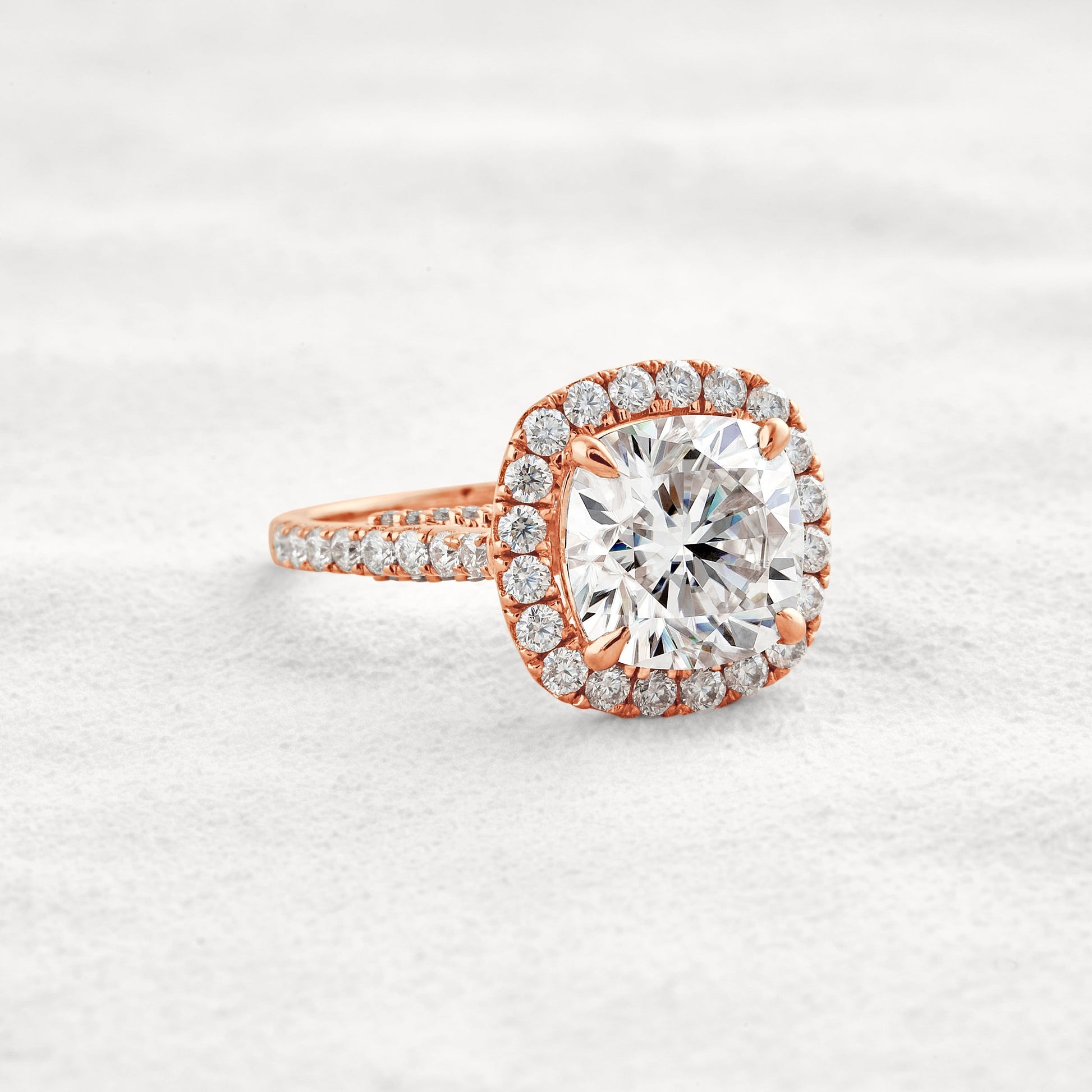 4 CT Cushion Cut Halo & Pave Moissanite Diamond Engagement Ring In Rose Gold