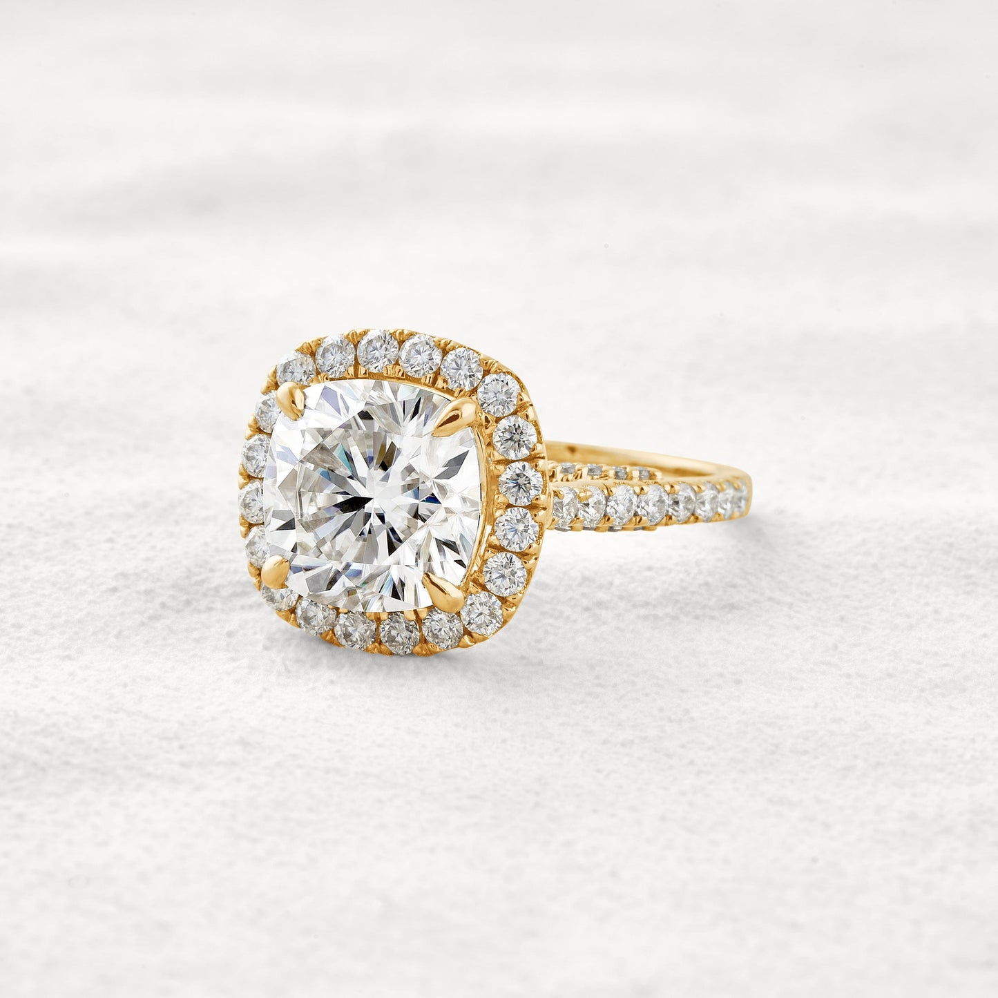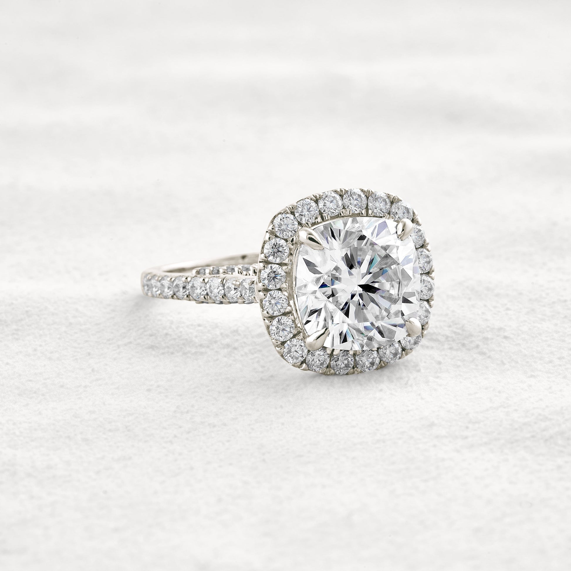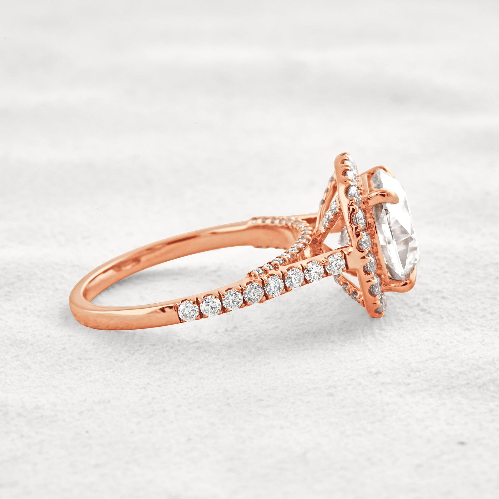 4 CT Cushion Cut Halo & Pave Moissanite Diamond Engagement Ring In Rose Gold