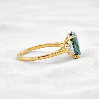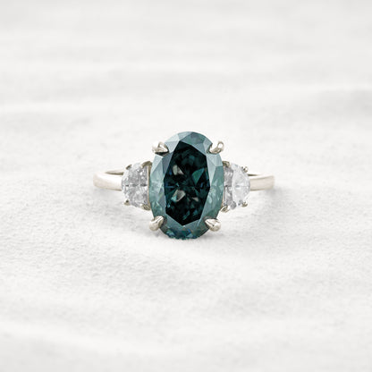 4 CT Dark Green Oval 3 Stones Cut Moissanite Diamond Engagement Ring