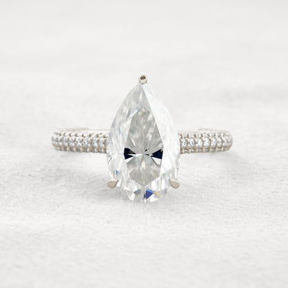 5.37 CT Pear Cut Pave Moissanite Engagement Ring