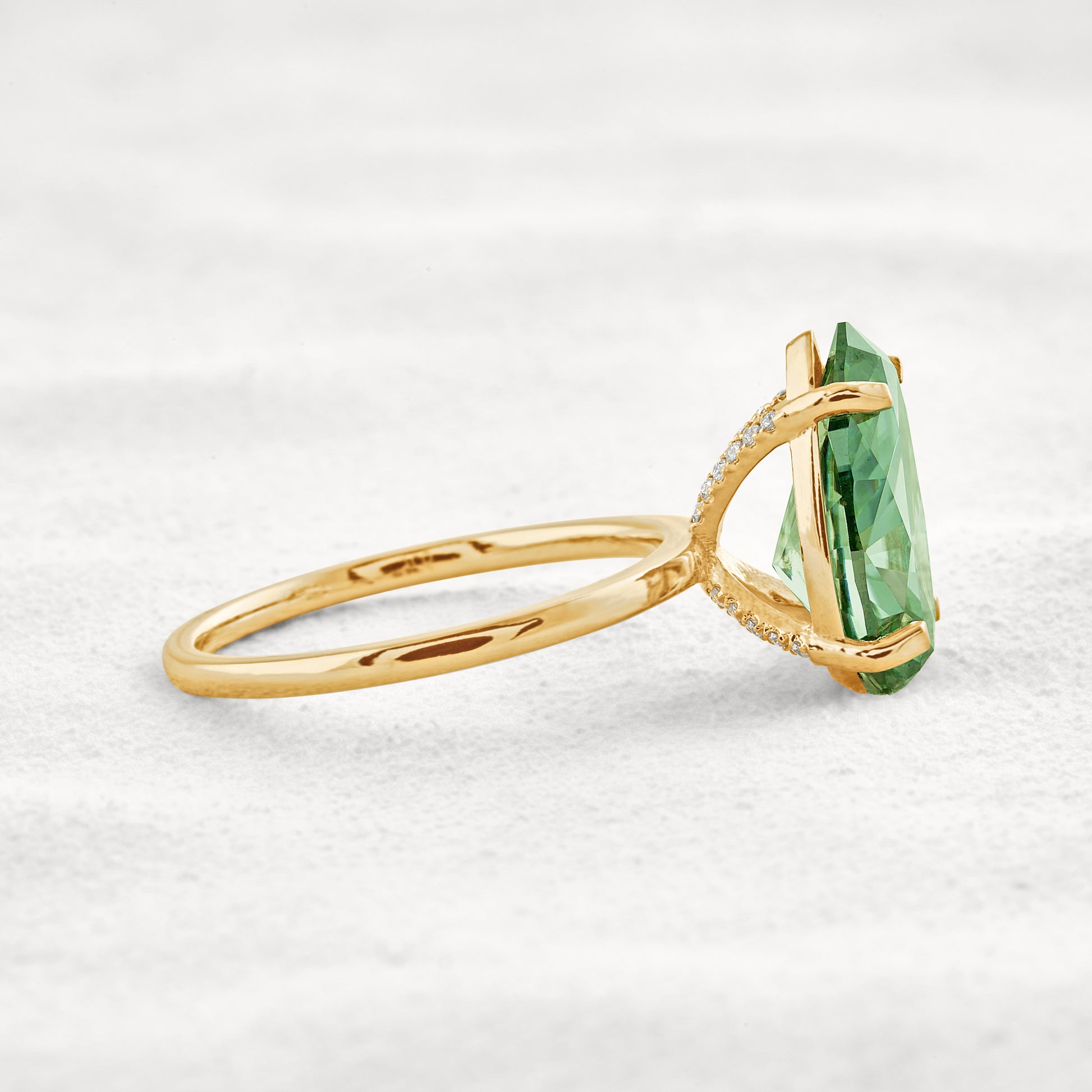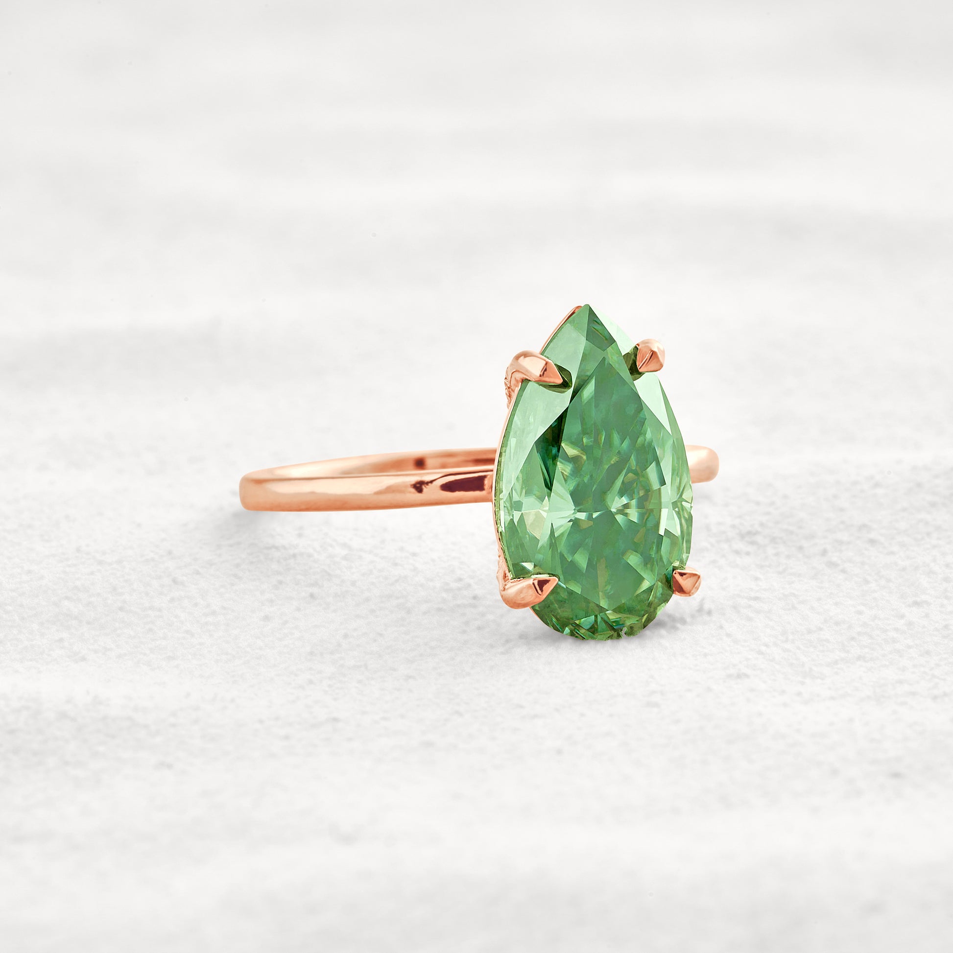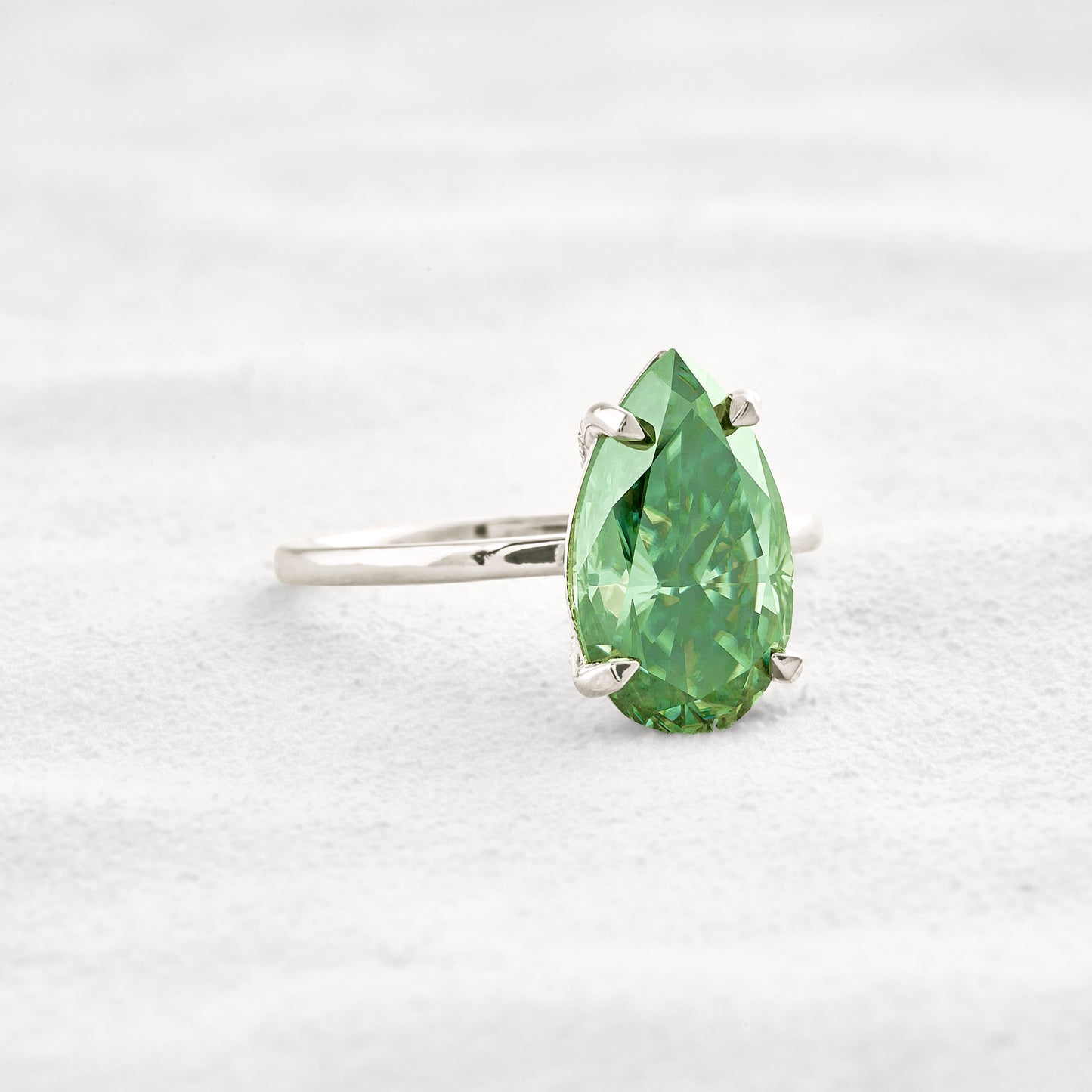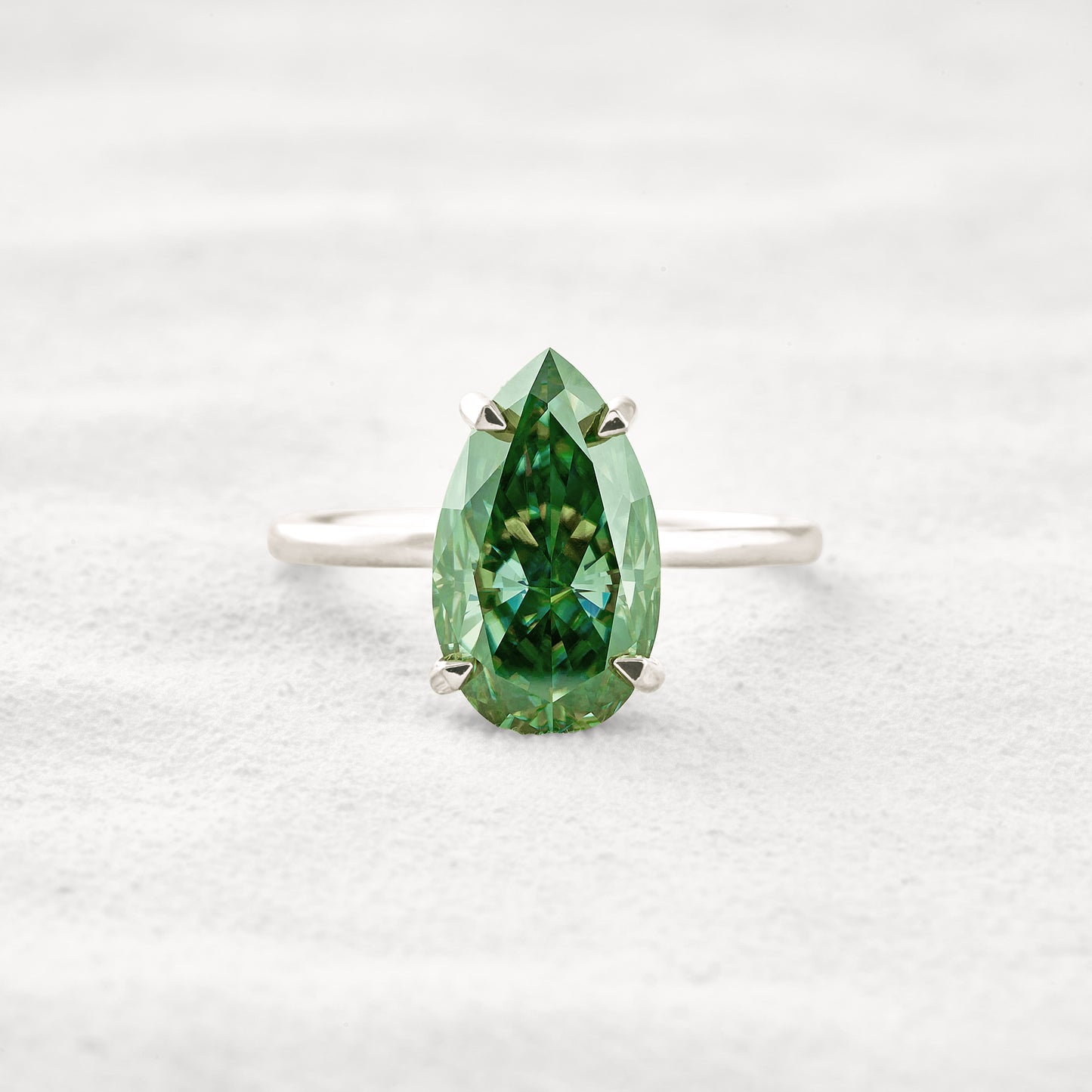 5.6 CT Blue Green Pear Solitaire Cut Moissanite Diamond Engagement Ring