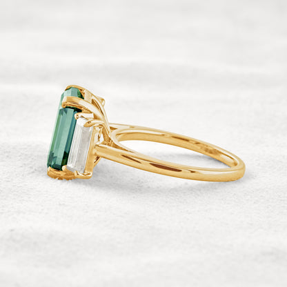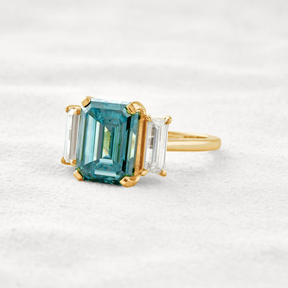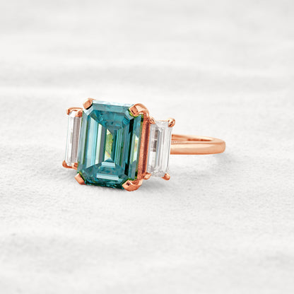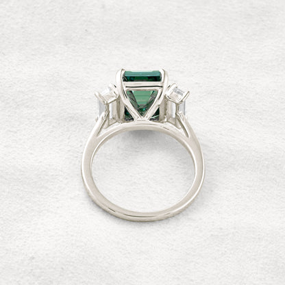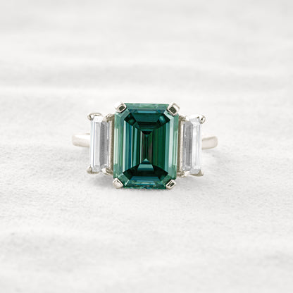 6.2 CT Dark Green Emerald Cut 3 Stones Moissanite Diamond Engagement Ring