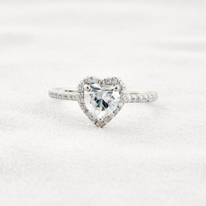 0.85 CT Heart Cut Halo & Pave Moissanite Engagement Ring