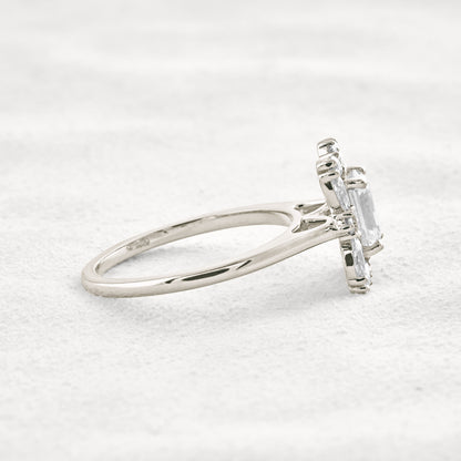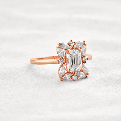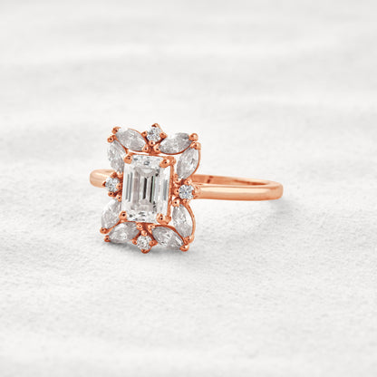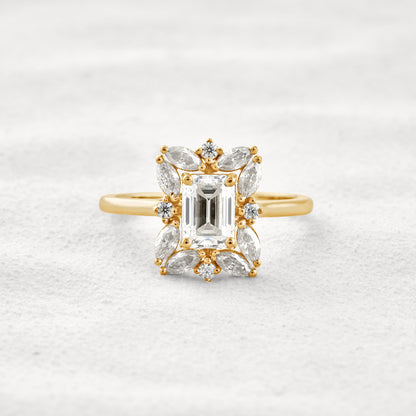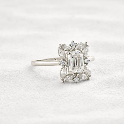 0.92 CT Emerald Cut Halo Moissanite Diamond Engagement Ring
