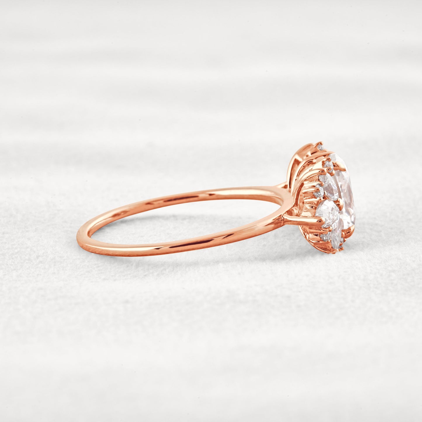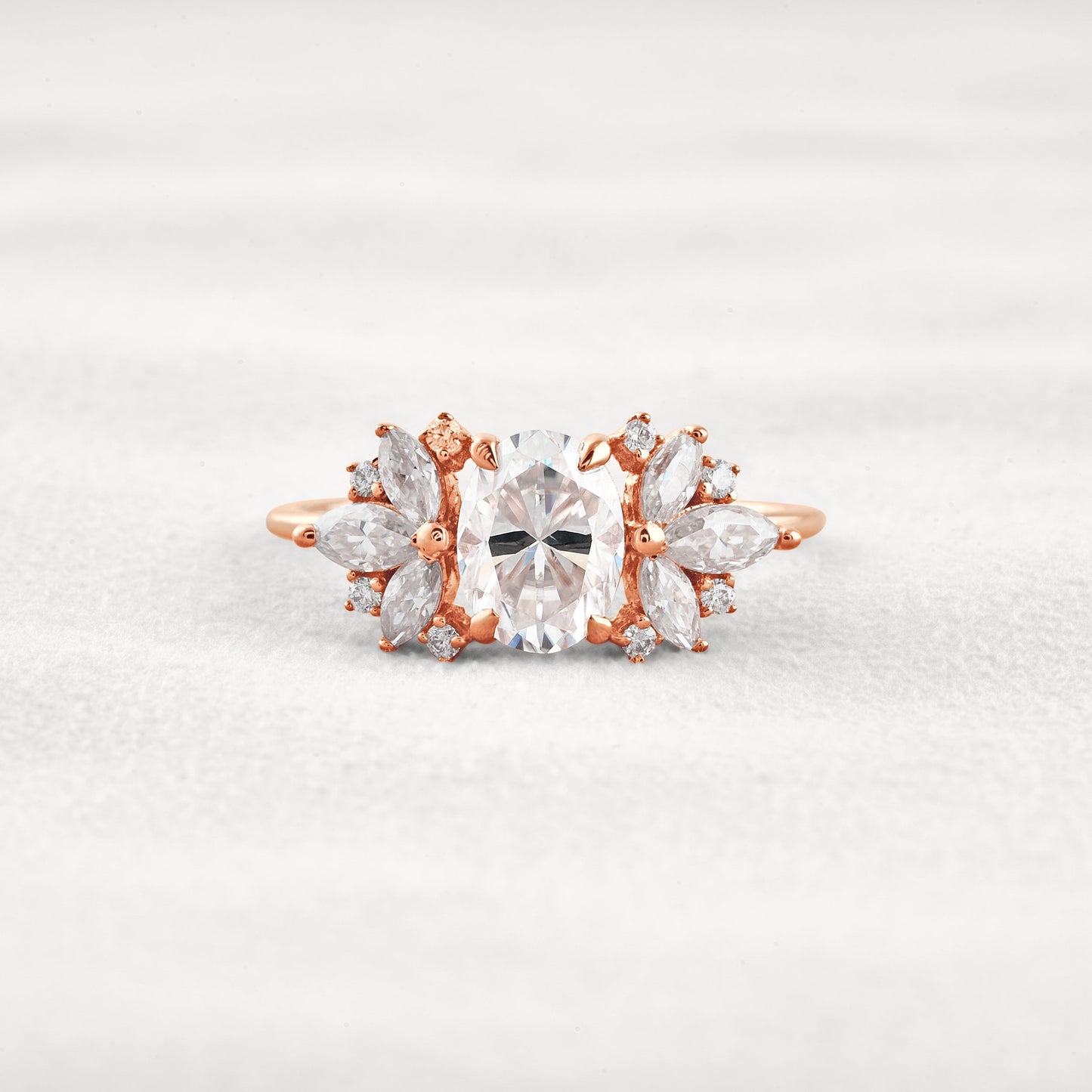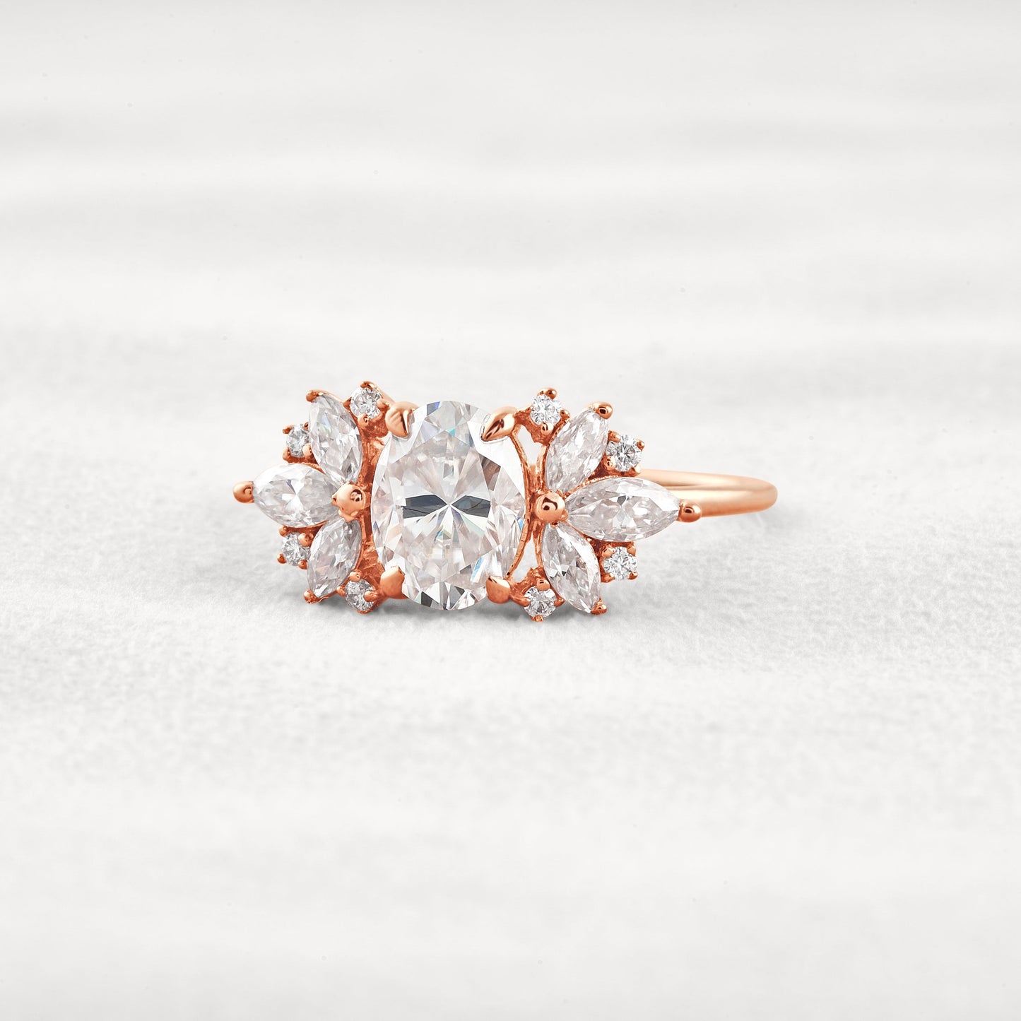 1.33 CT Oval Cut Cluster Moissanite Diamond Engagement Ring In Rose Gold