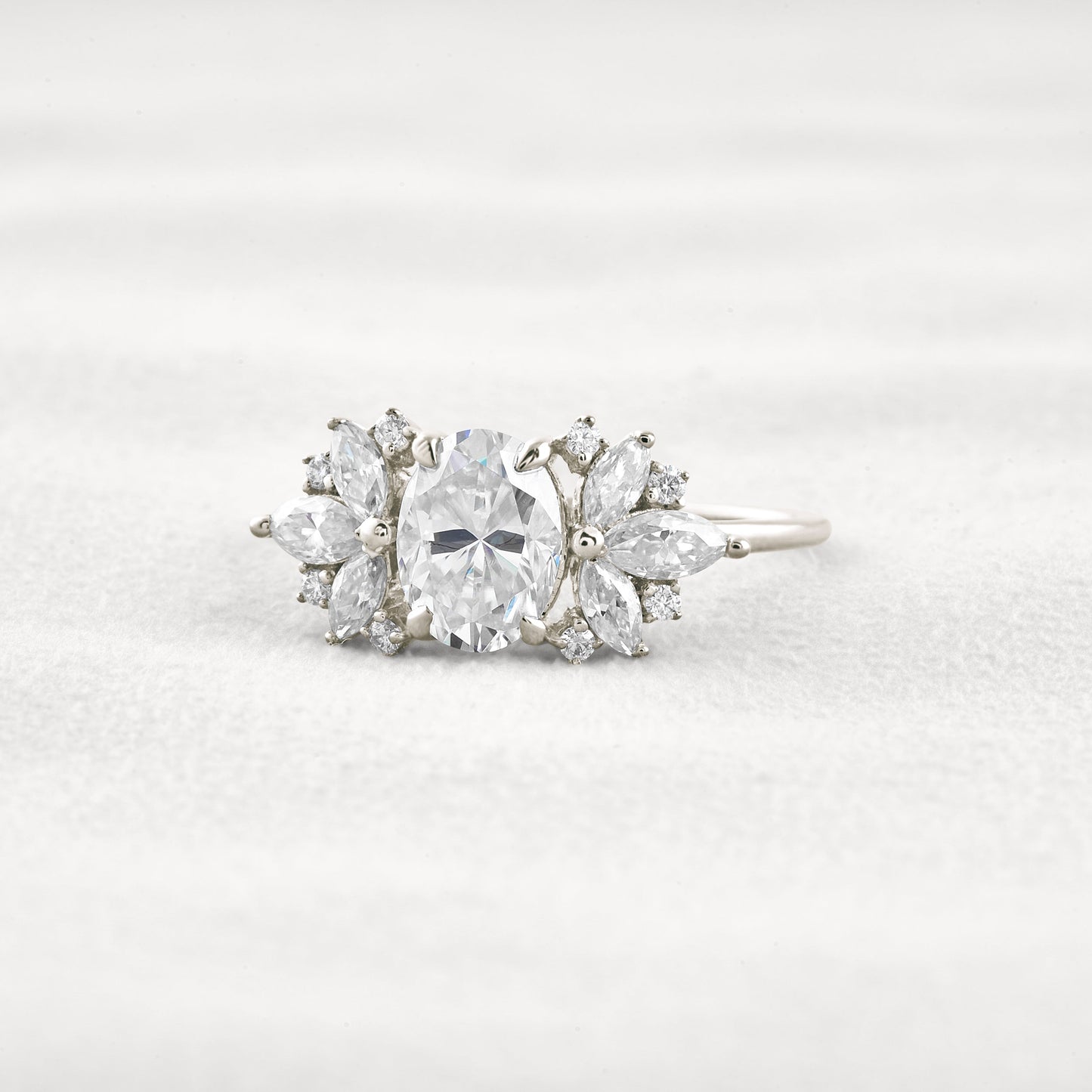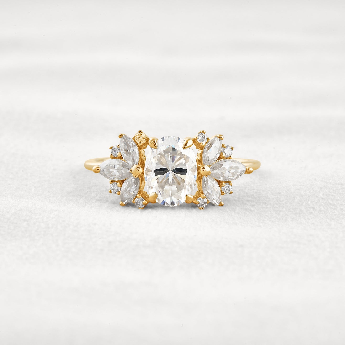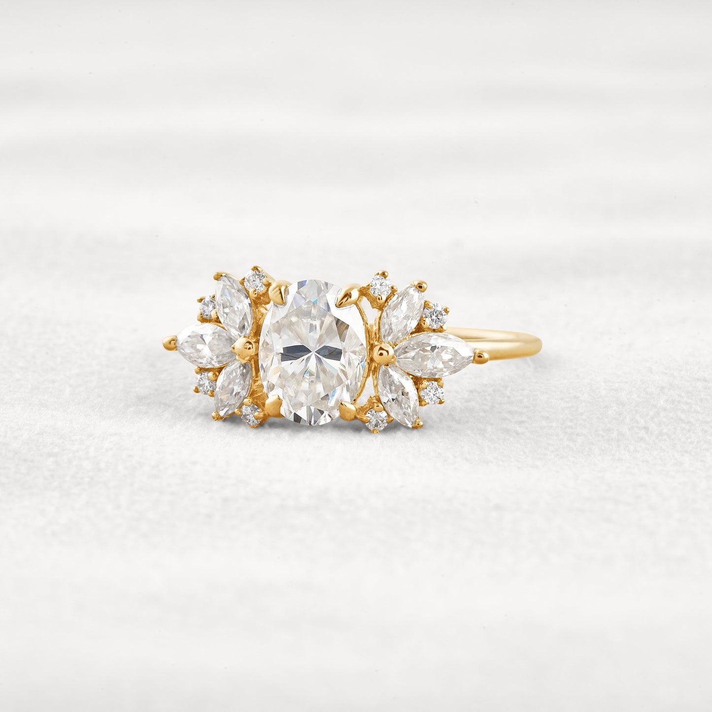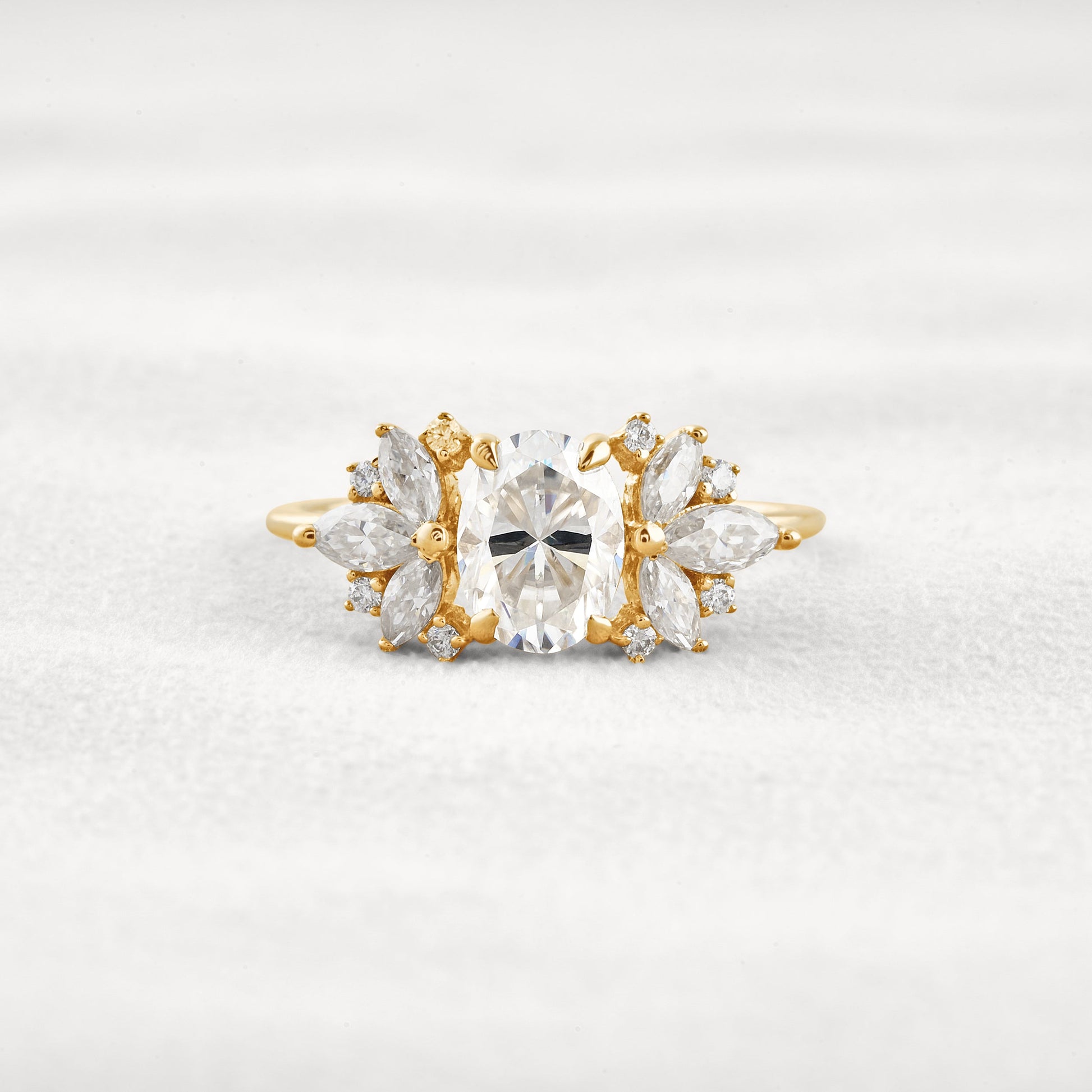 1.33 CT Oval Cut Cluster Moissanite Diamond Engagement Ring In Rose Gold