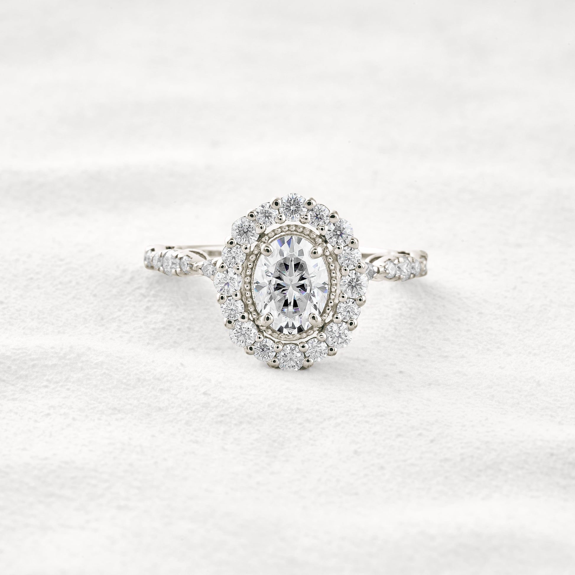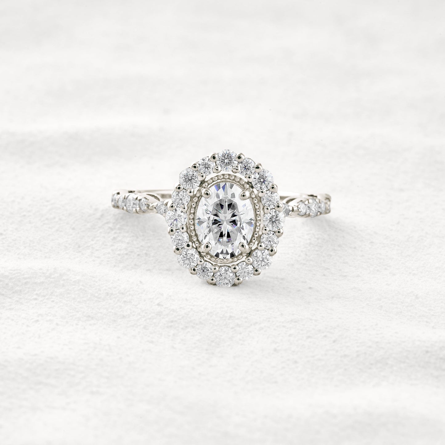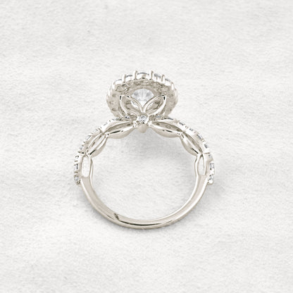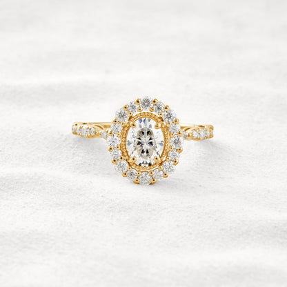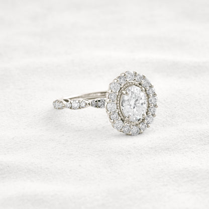 1.33 CT Oval Cut Halo & Pave Moissanite Diamond Engagement Ring In White Gold