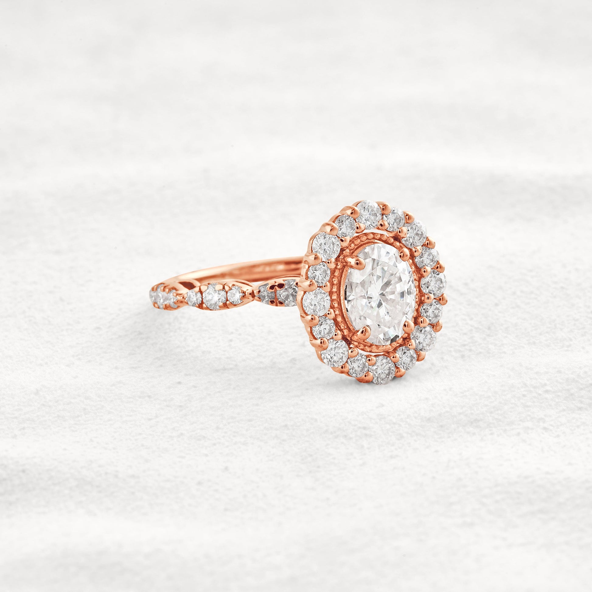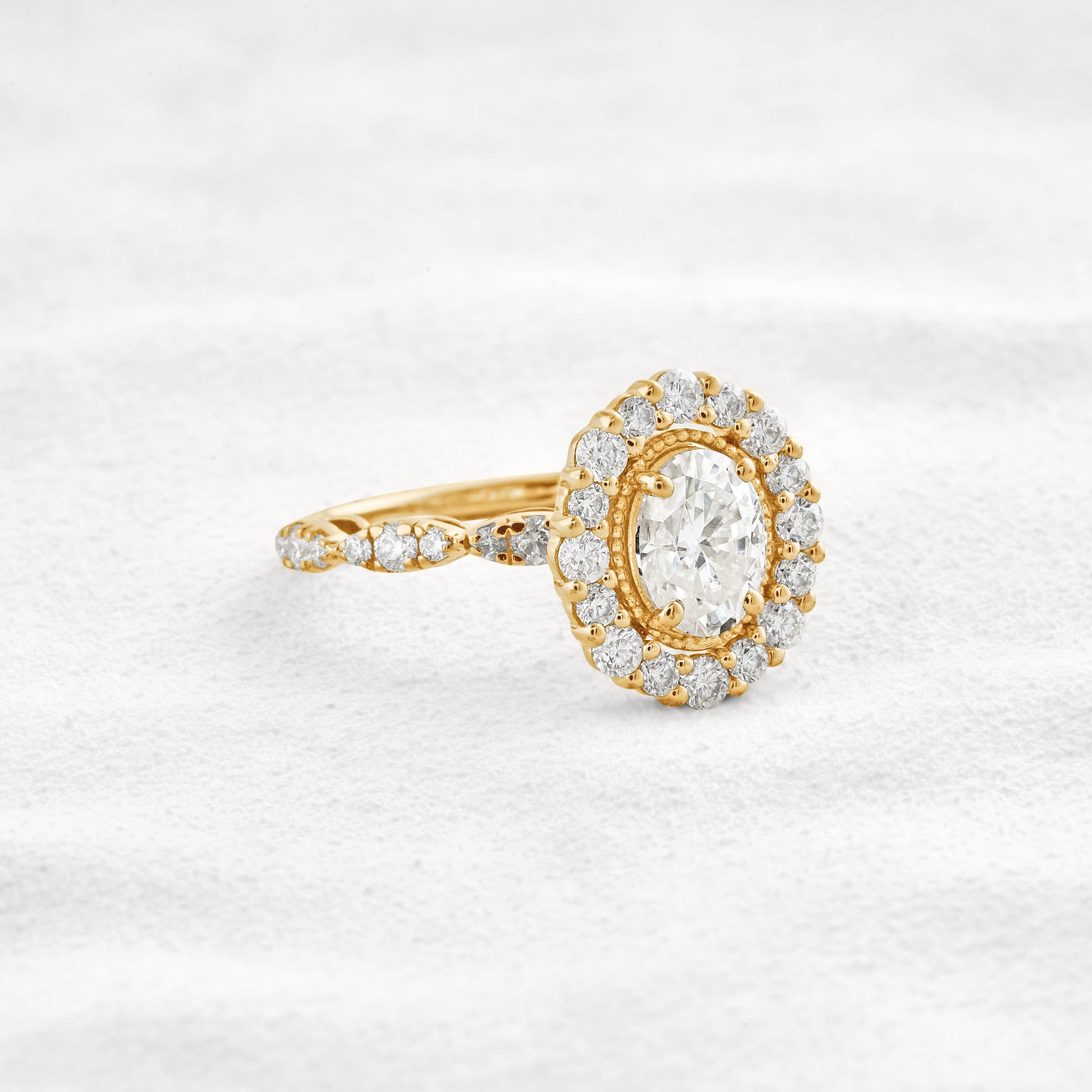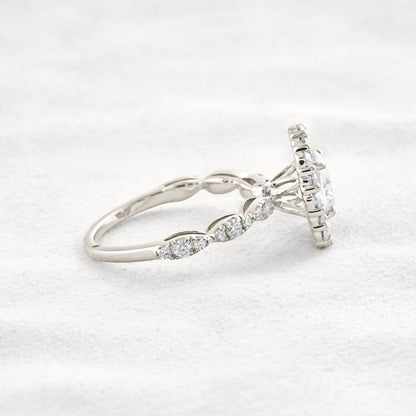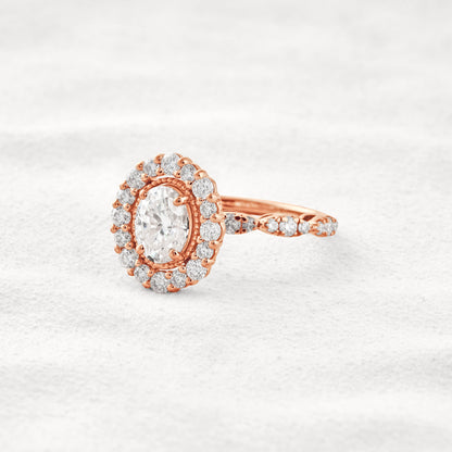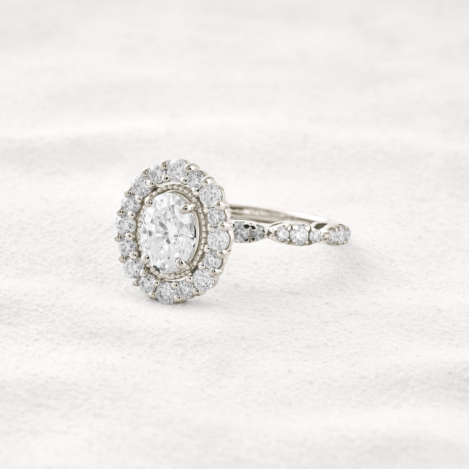 1.33 CT Oval Cut Halo & Pave Moissanite Diamond Engagement Ring In White Gold